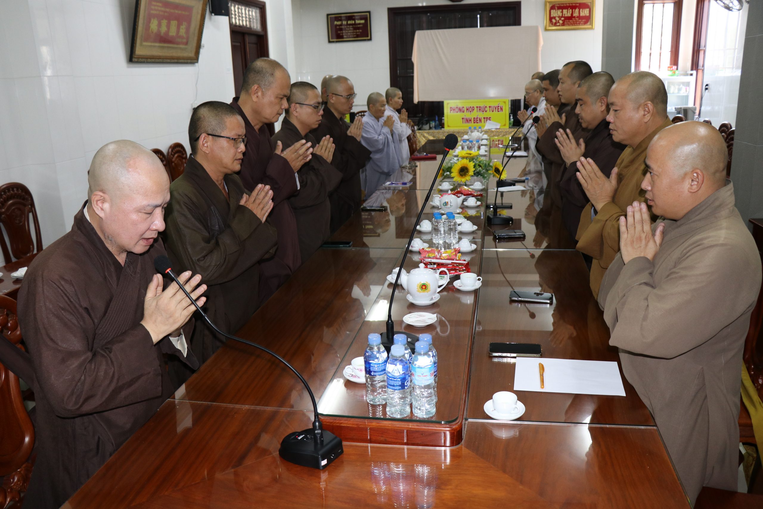 Tại phiên họp, ĐĐ. Thích Trí Thuận – Trưởng Ban TTXH GHPGVN tỉnh, có đôi lời khai mạc và chúc sức khỏe đến với chư Tôn đức tham dự phiên họp và chúc phiên họp diễn ra thành tựu viên mãn.