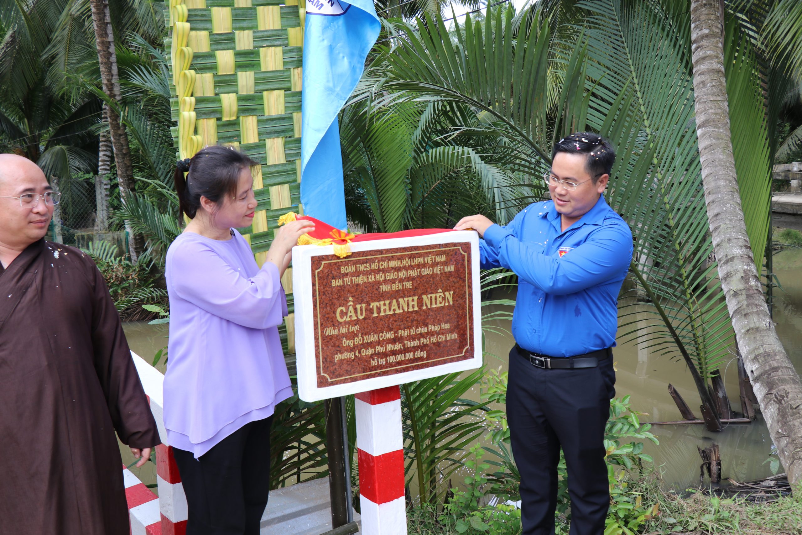 Được biết cây cầu Thanh Niên - ấp Hưng hòa Đông, xã Hưng Nhượng, huyện Giồng Trôm, tỉnh Bến Tre có chiều dài 22 mét, ngang 2,5 mét tổng kinh phí 120 triệu đồng, do gia đình ông Đỗ Xuân Công - tại quận Phú Nhuận tài trợ 100 triệu đồng, phần còn lại do bà con nhân dân đóng góp.