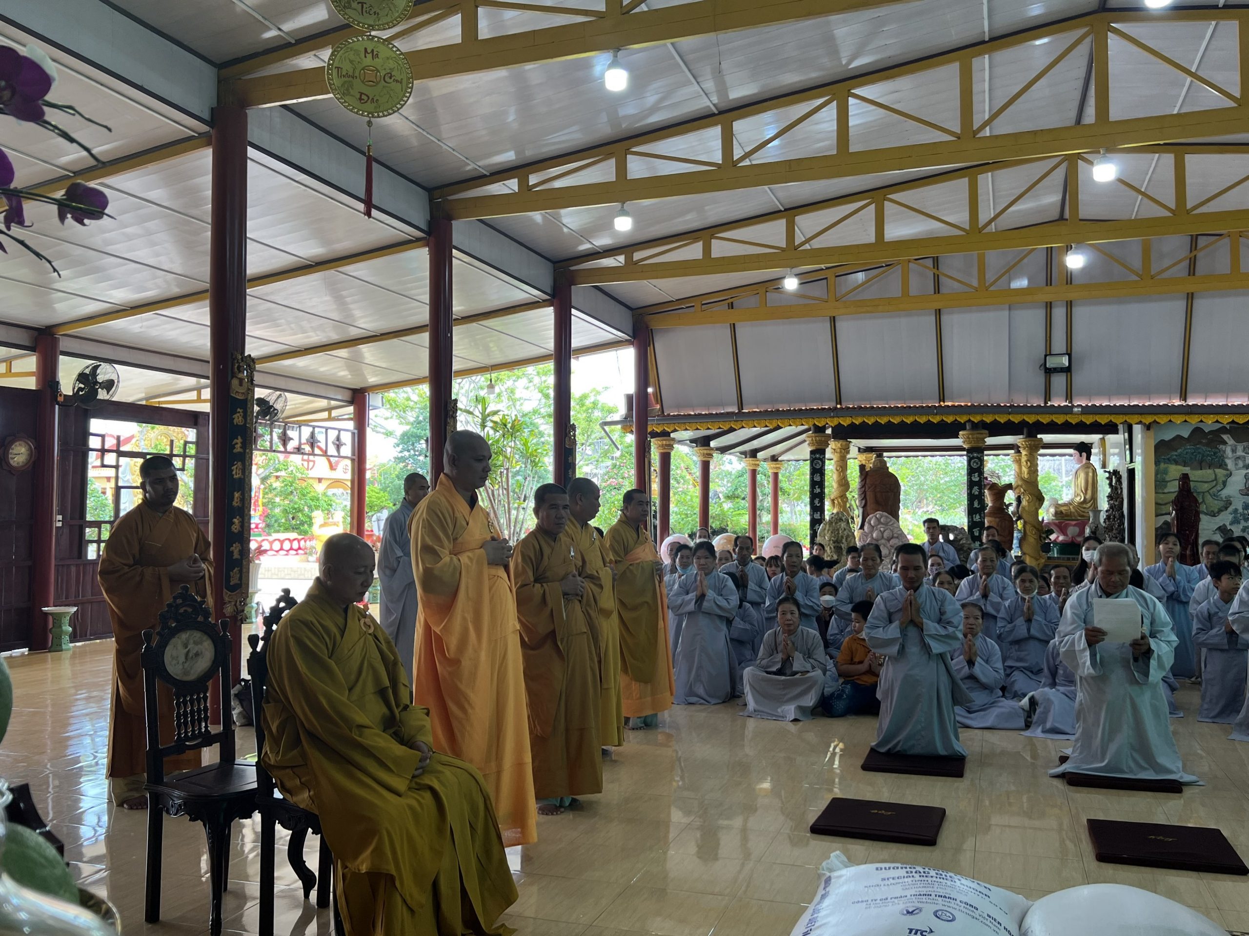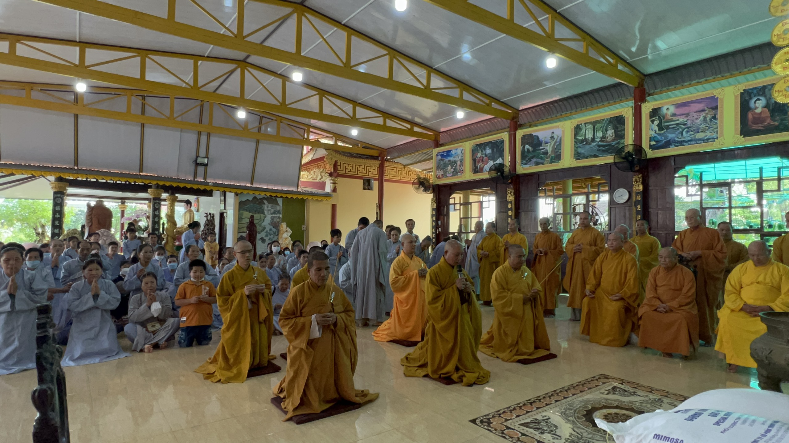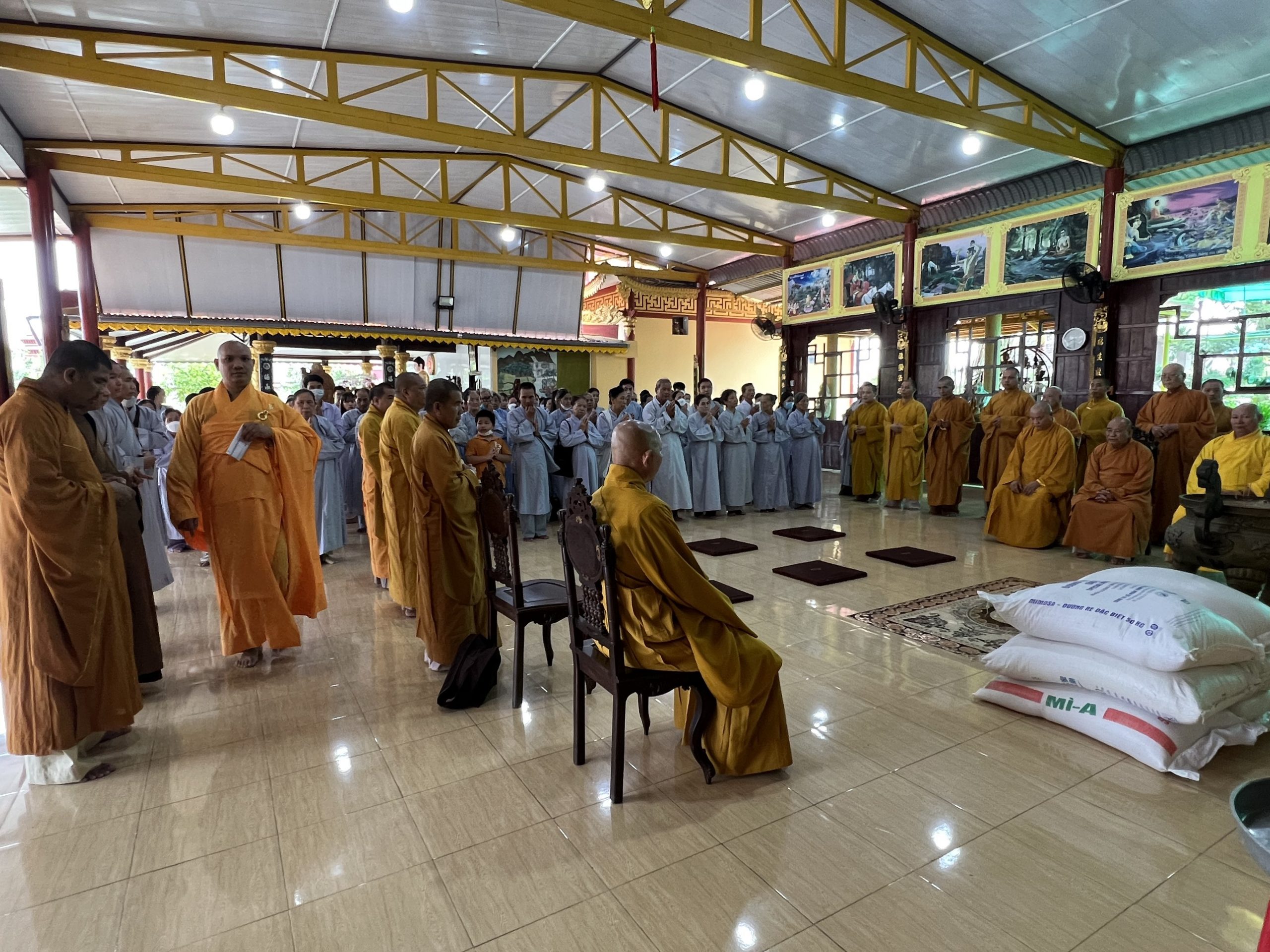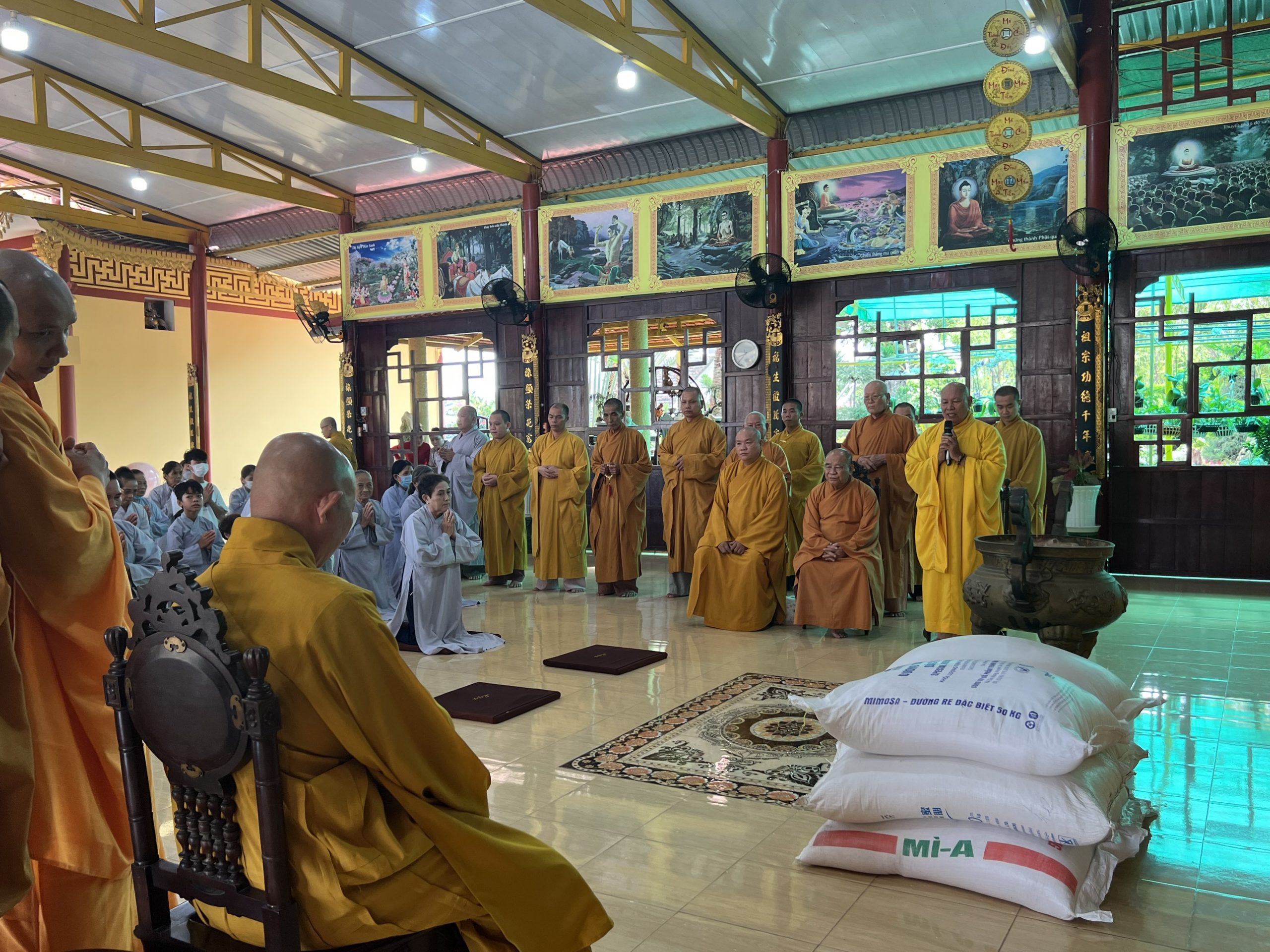 Nhân mùa an cư kiết hạ PL.2566, BTS GHPGVN huyện Ba Tri và chư Tôn đức trụ trì các tự viện đã hướng dẫn hơn 100 Phật tử từ đạo tràng trên địa bàn huyện Ba Tri, phát tâm đóng góp tịnh tài, tịnh vật để cúng dường 02 điểm an cư kiết hạ tại Bình Đại và Mỏ Cày Nam - Tỉnh Bến Tre. Nhằm hộ trì cho chư hành giả an tâm tu học trong ba tháng an cư, đồng thời tạo duyên lành cho hàng Phật tử tại gia thực hành tu tập hạnh bố thí, gieo tạo phước điền cho gia đình và hồi hướng công đức đến cửu huyền thất tổ.