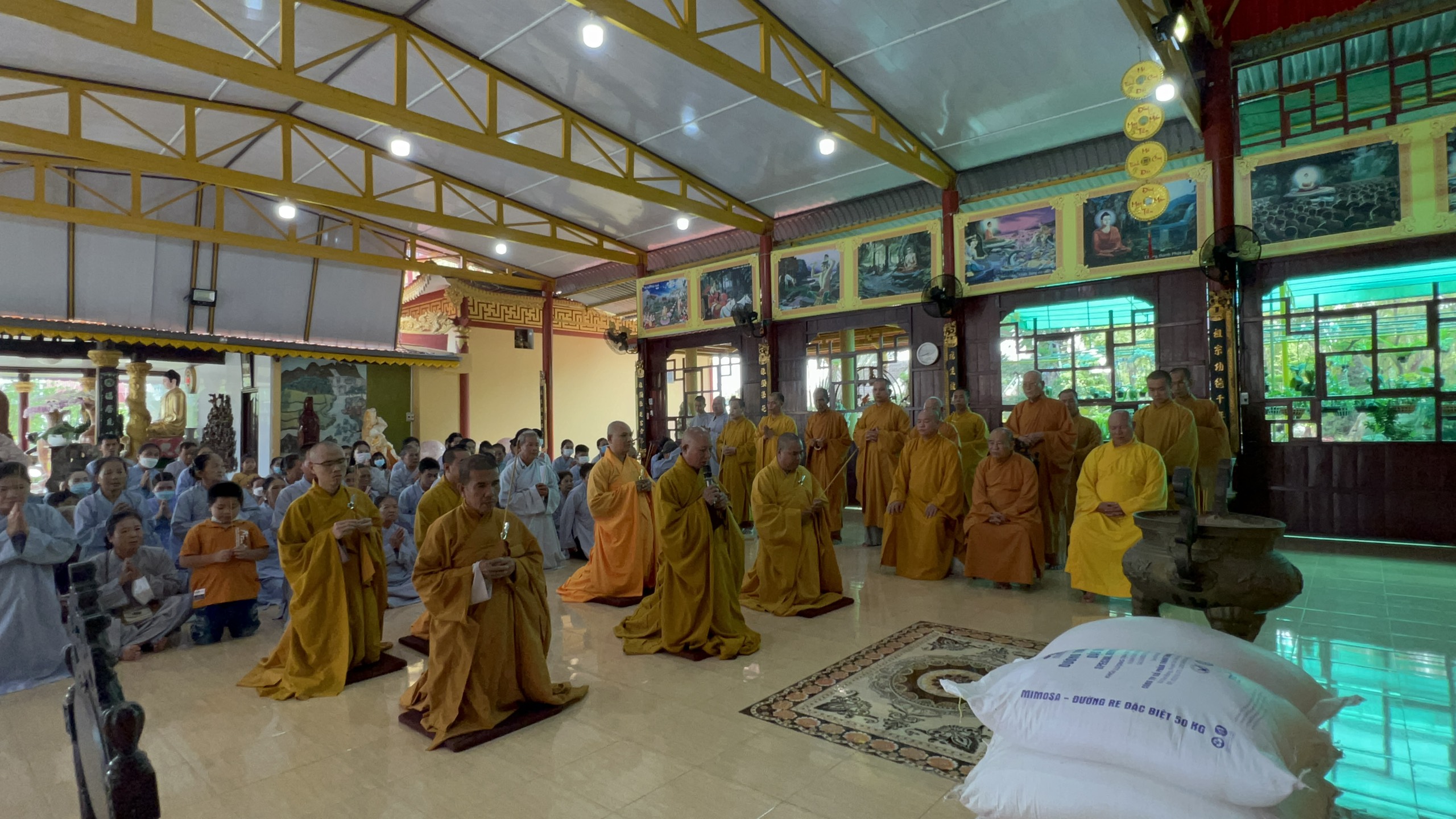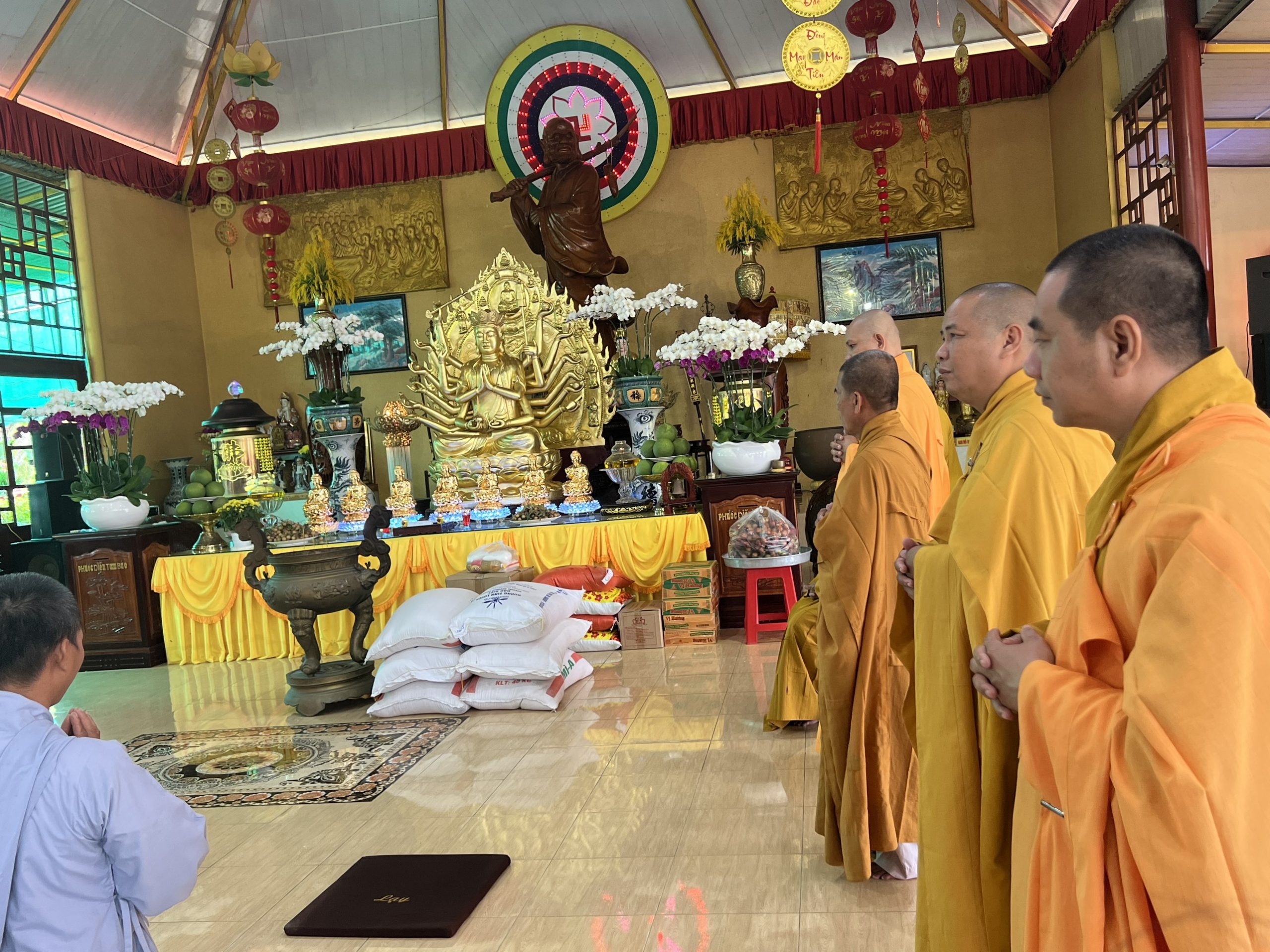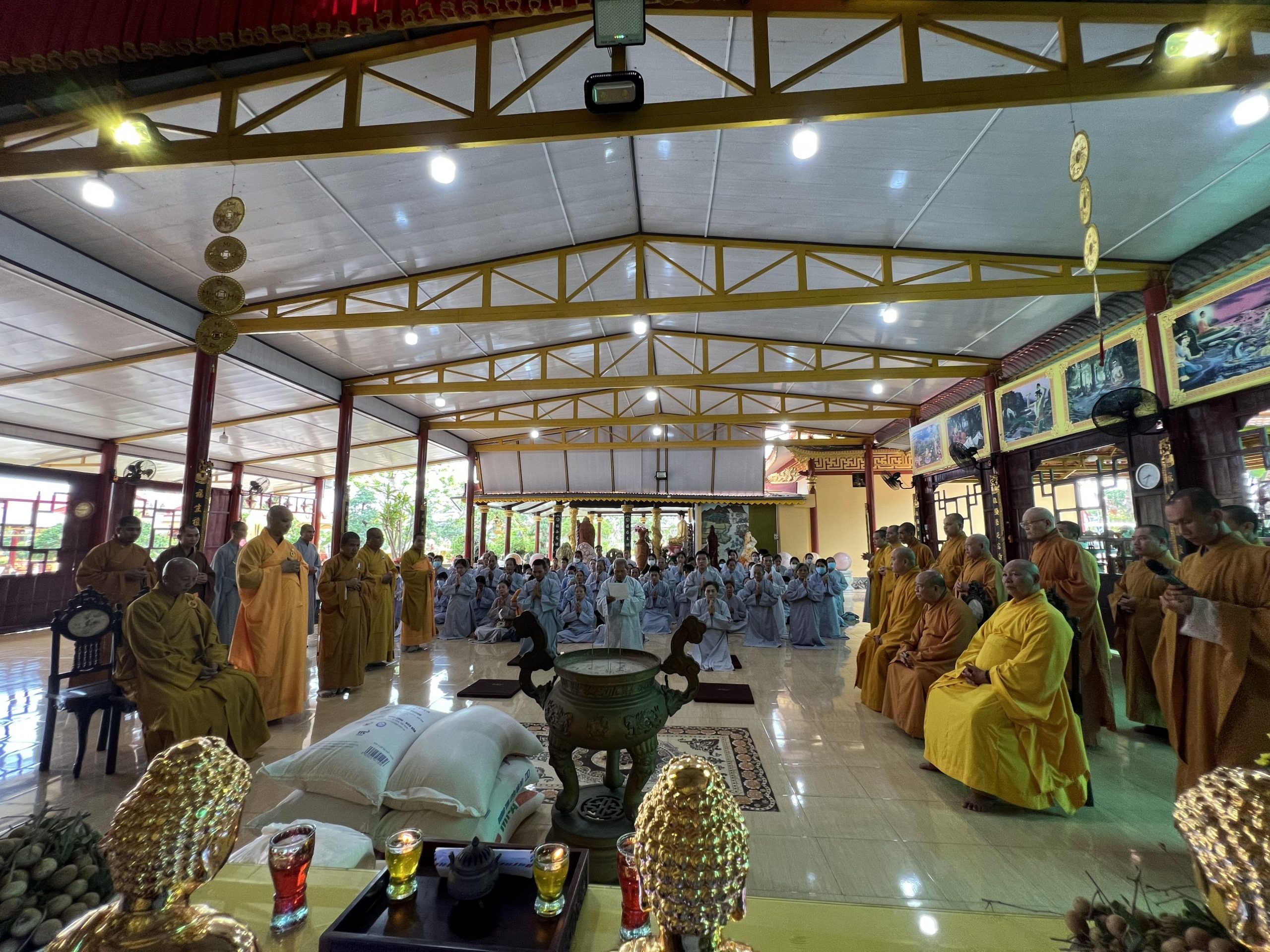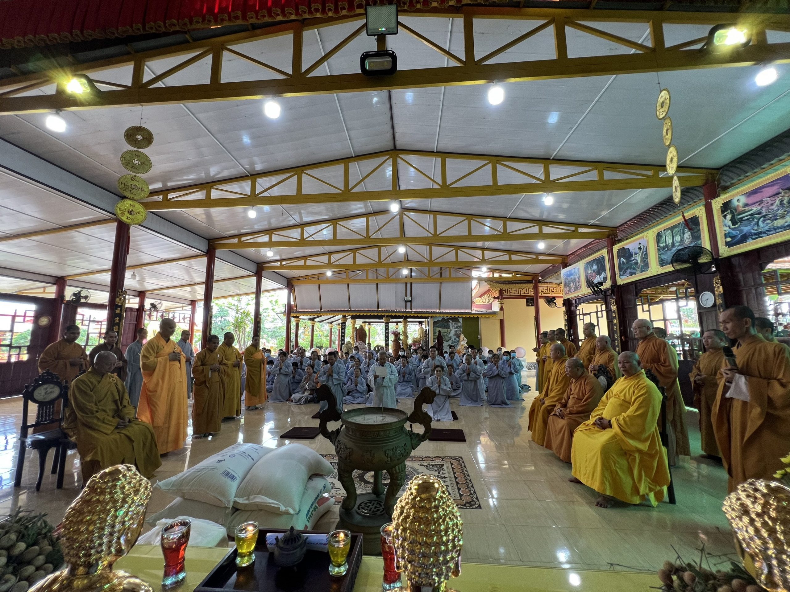 Nhân mùa an cư kiết hạ PL.2566, BTS GHPGVN huyện Ba Tri và chư Tôn đức trụ trì các tự viện đã hướng dẫn hơn 100 Phật tử từ đạo tràng trên địa bàn huyện Ba Tri, phát tâm đóng góp tịnh tài, tịnh vật để cúng dường 02 điểm an cư kiết hạ tại Bình Đại và Mỏ Cày Nam - Tỉnh Bến Tre. Nhằm hộ trì cho chư hành giả an tâm tu học trong ba tháng an cư, đồng thời tạo duyên lành cho hàng Phật tử tại gia thực hành tu tập hạnh bố thí, gieo tạo phước điền cho gia đình và hồi hướng công đức đến cửu huyền thất tổ.