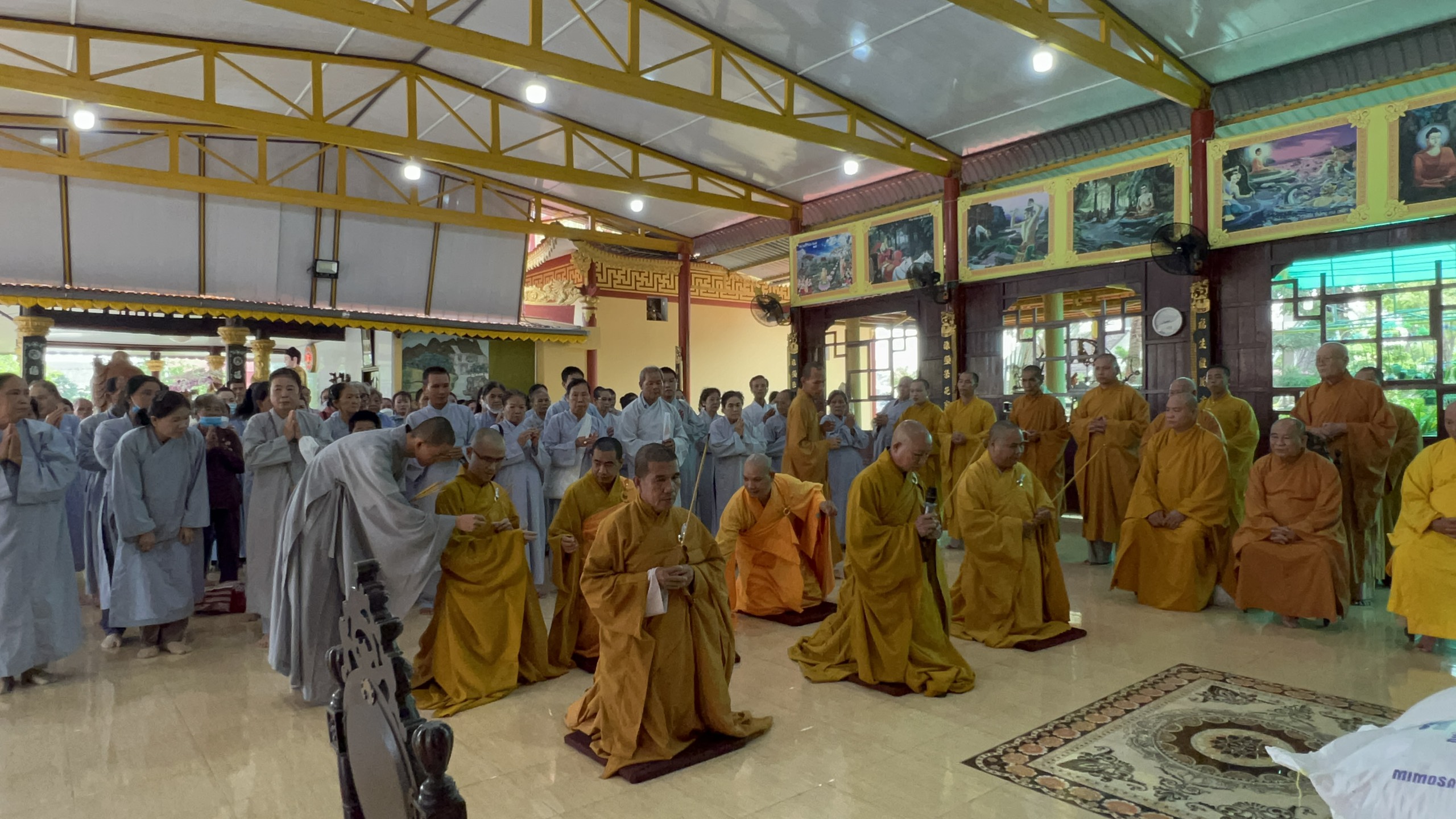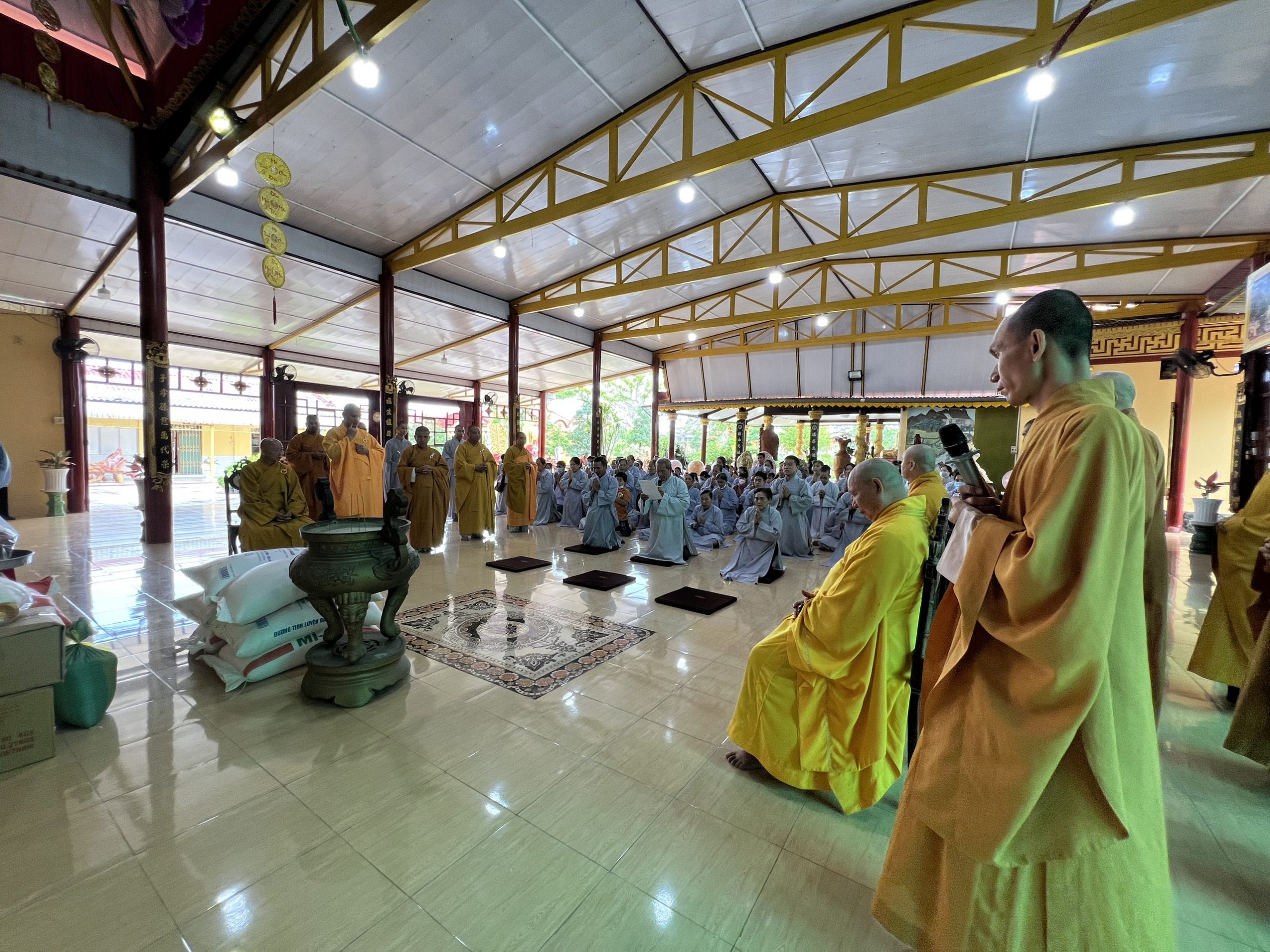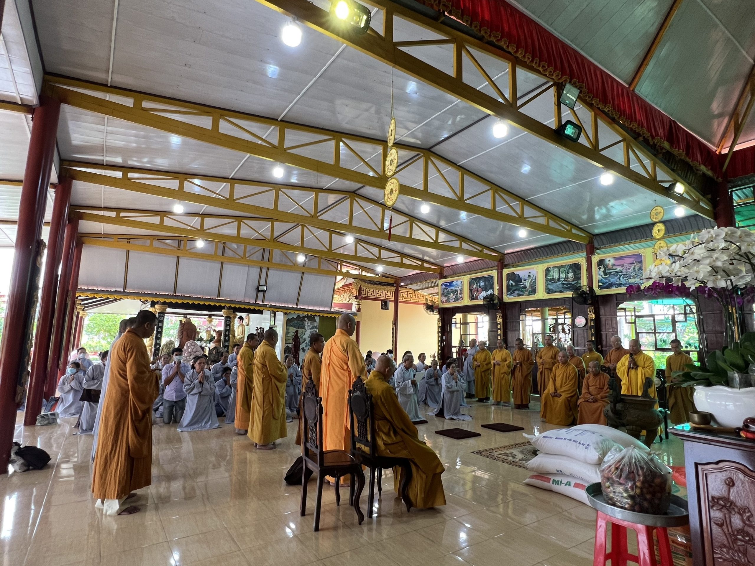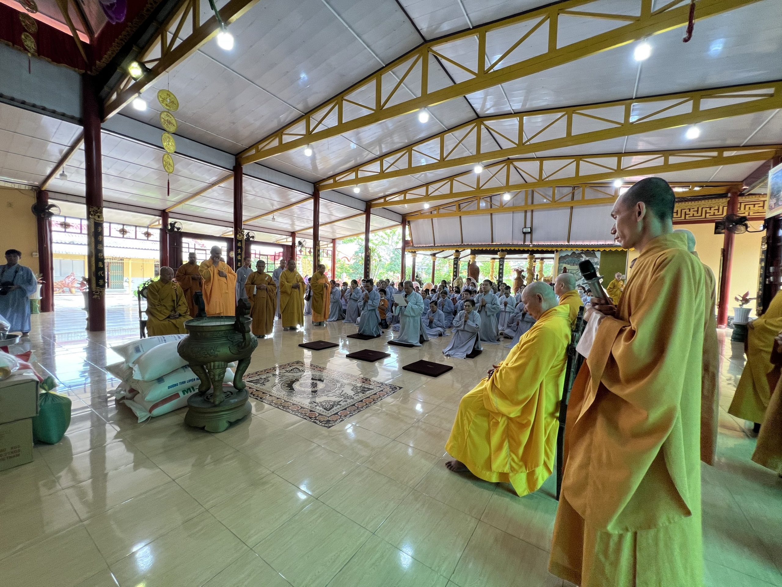Nhân mùa an cư kiết hạ PL.2566, BTS GHPGVN huyện Ba Tri và chư Tôn đức trụ trì các tự viện đã hướng dẫn hơn 100 Phật tử từ đạo tràng trên địa bàn huyện Ba Tri, phát tâm đóng góp tịnh tài, tịnh vật để cúng dường 02 điểm an cư kiết hạ tại Bình Đại và Mỏ Cày Nam - Tỉnh Bến Tre. Nhằm hộ trì cho chư hành giả an tâm tu học trong ba tháng an cư, đồng thời tạo duyên lành cho hàng Phật tử tại gia thực hành tu tập hạnh bố thí, gieo tạo phước điền cho gia đình và hồi hướng công đức đến cửu huyền thất tổ.