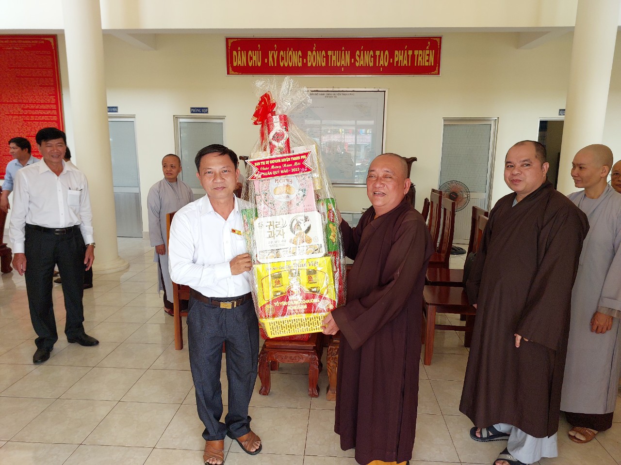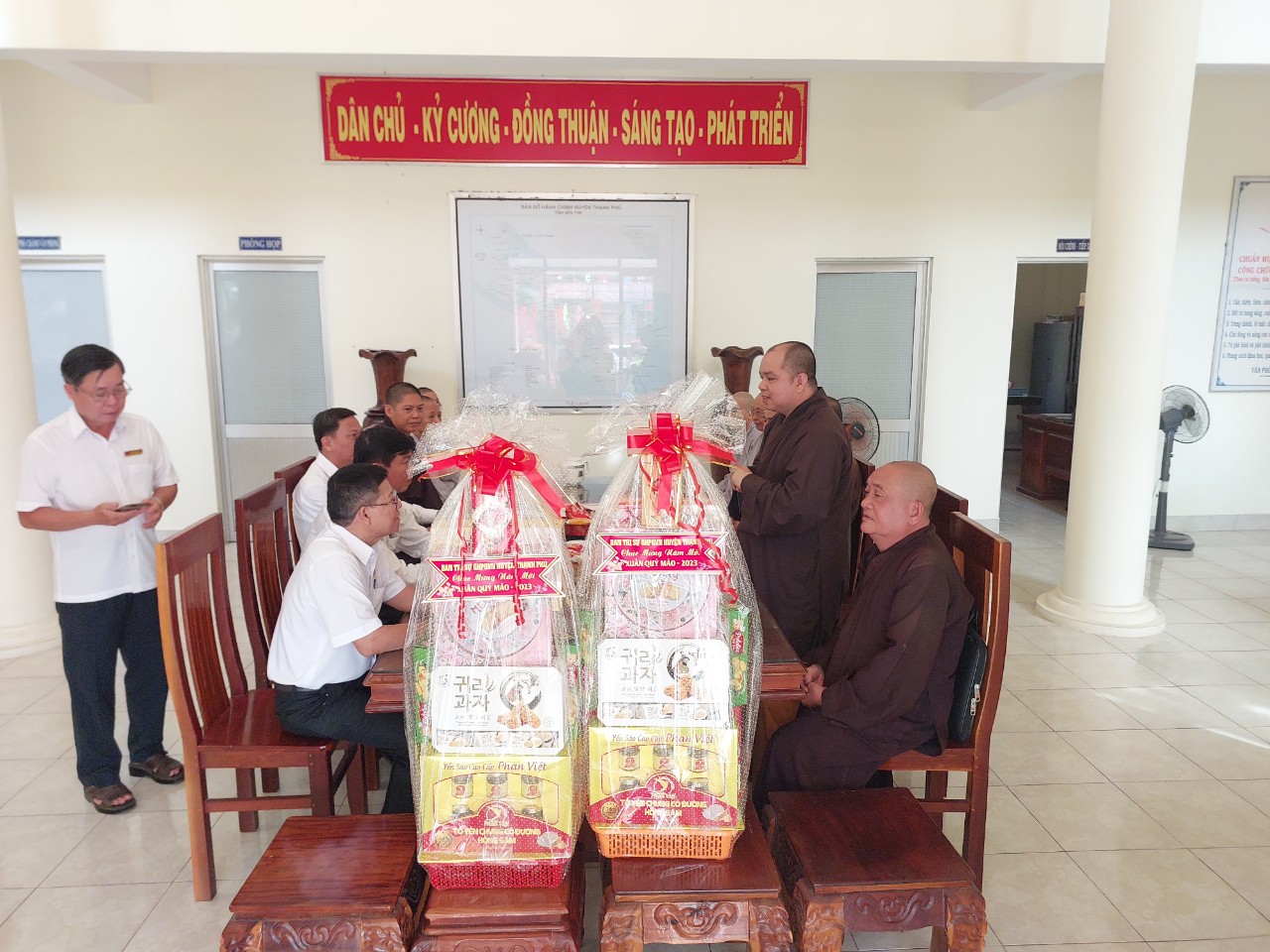 PSO-Sáng ngày 17/01/2023, Phái đoàn BTS PG huyện Thạnh Phú thăm và chúc tết Huyện ủy – HĐND – UBND – UBMTTQVN huyện Thạnh Phú nhân mùa xuân Quý Mão – 2023 do Thượng tọa Thích Thiện Hạnh – UV BTS PG tỉnh, Trưởng BTS PG huyện Thạnh Phú làm trưởng đoàn.