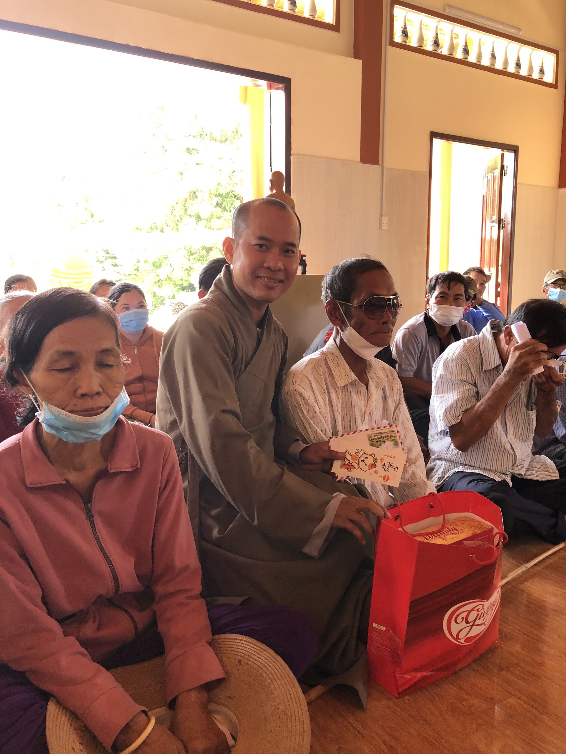 PSO-ngày 18/01/2023 ĐĐ. Thích Quảng Thanh - Trụ trì chùa Vạn Đức - ấp Phú Hòa, xã Hưng Khánh Trung B, huyện Chợ Lách, tỉnh Bến Tre được sự trợ duyên của nhóm phật tử Quận Bình Thạnh và quý MTQ TP. HCM cùng chung tay chia sẽ tết Trao Yêu Thương cho bà con. 100 phần quà đã đến tay cho hội người mù và người nghèo địa bàn huyện Chợ Lách. Mỗi phần quà trị giá 550.000đ. Đến tham dự có Bà Đoàn Thị Điệp - Phó tịch UBND xã Hưng Khánh Trung B; Ông Nguyễn Minh Tuấn - Bí thư ấp Phú Hoà.