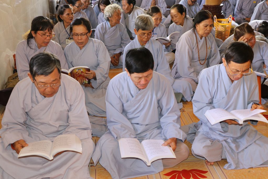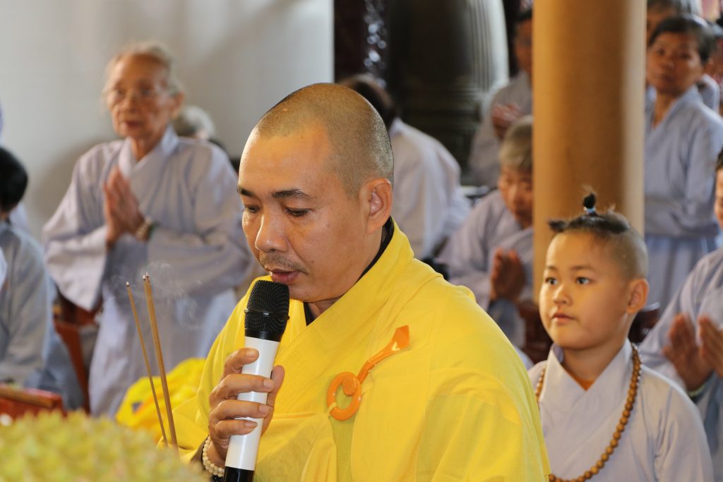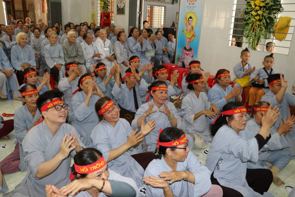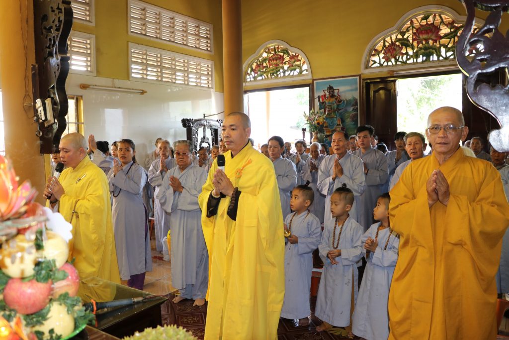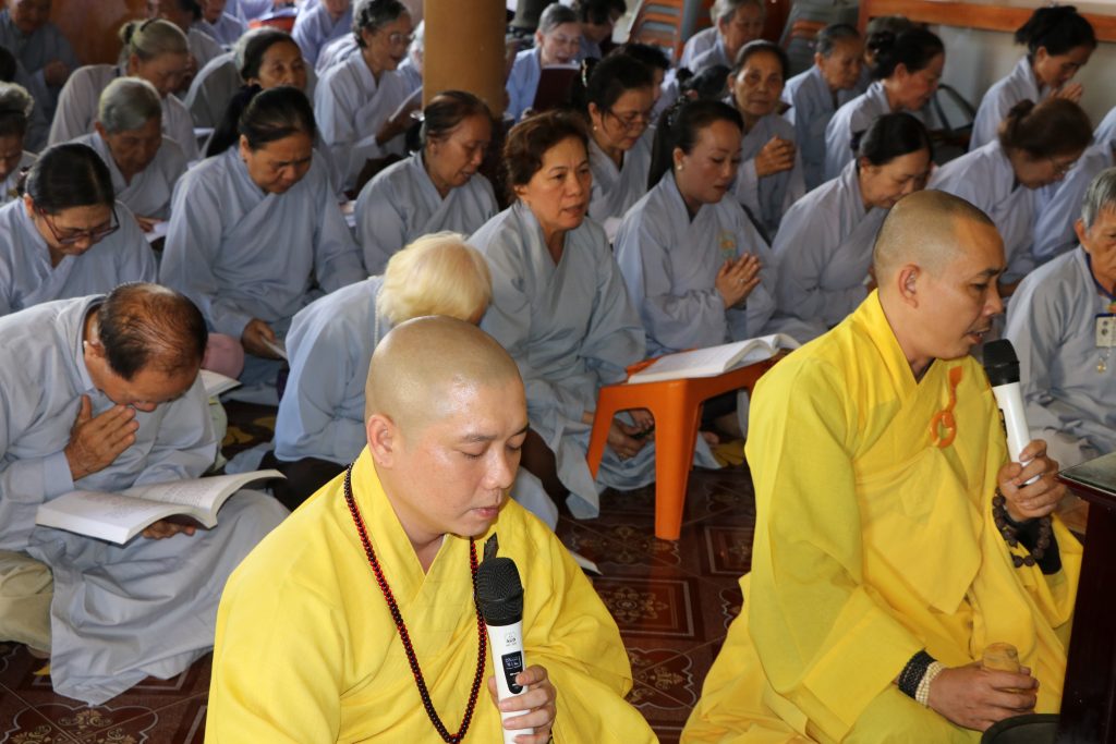 Sau buổi khai mạc, ĐĐ.Thích Lệ Quang – Phó Ban Nghi lễ tỉnh, Trưởng Ban Kiểm soát kiêm trưởng ban nghi lễ huyện; ĐĐ.Thích Đức Niệm – Trụ trì chùa Bửu Quang, đồng hướng dẫn hơn 200 Phật tử đồng vân tập tại đại hùng bửu điện chùa Linh Quang, thực hành nghi thức khóa lễ Sám hối.