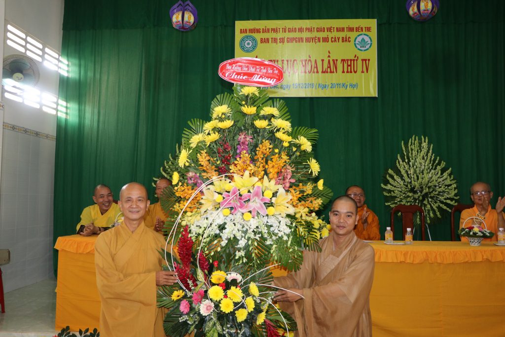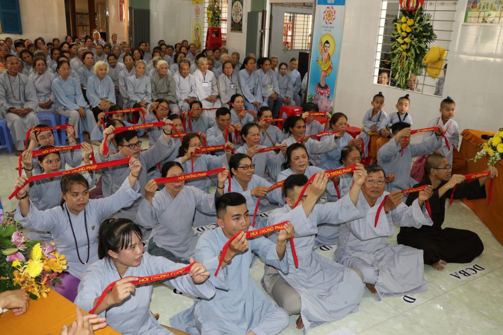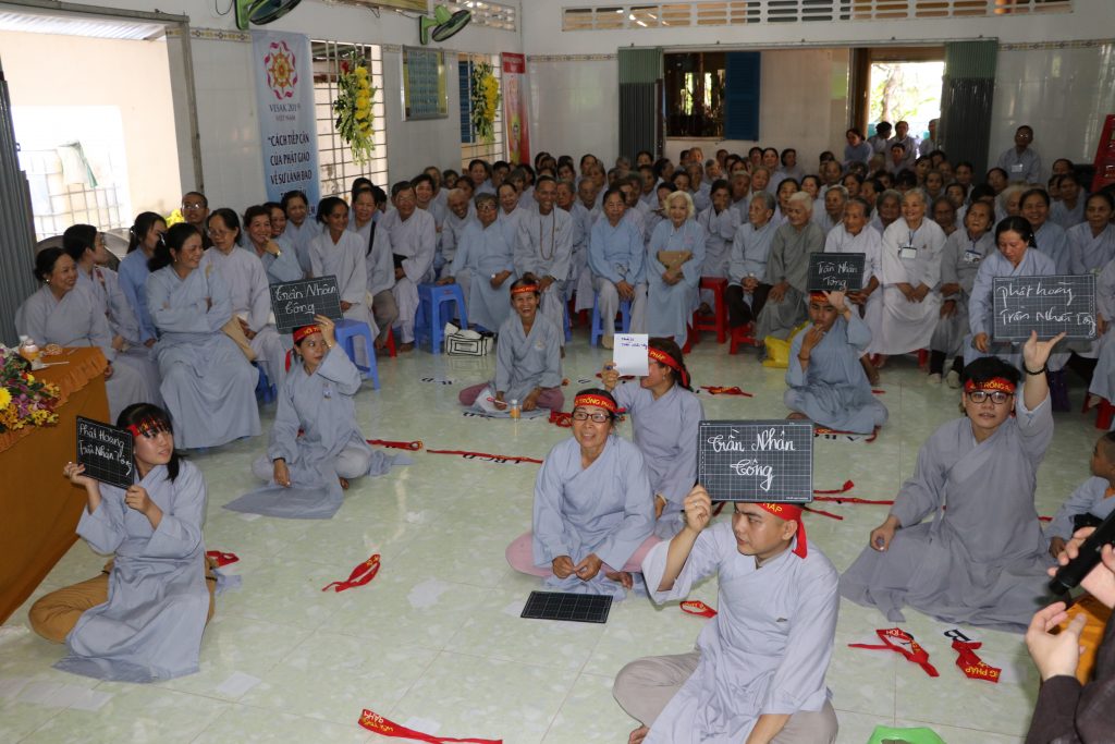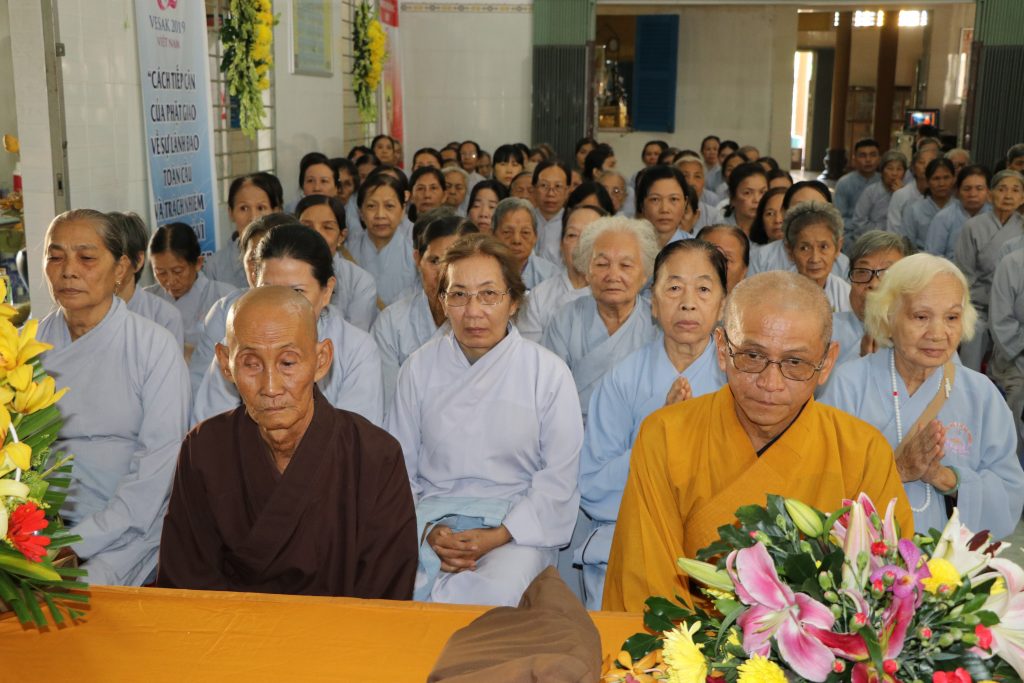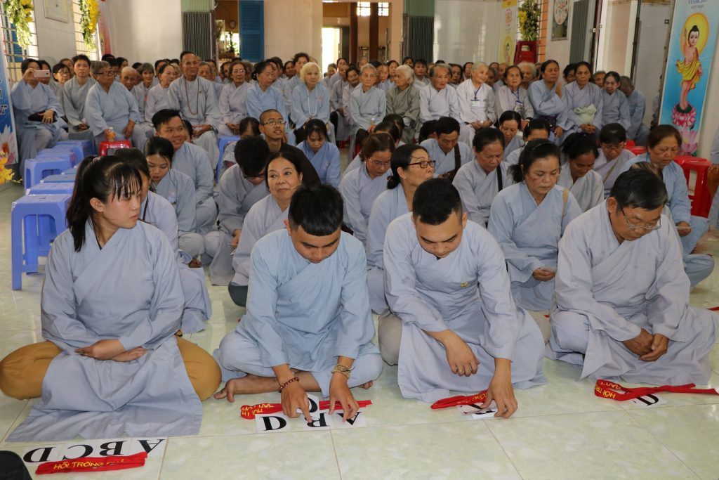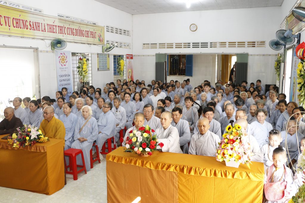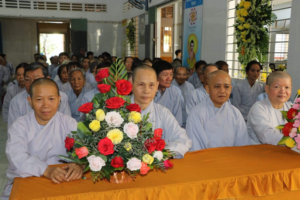 Quang lâm Chứng minh buổi lễ có: ĐĐ. Thích Pháp Thông – Ủy viên Ban Hướng Dẫn Phật tử (HDPT) TƯ, Trưởng Ban HDPT PG tỉnh Bến Tre; ĐĐ. Thích Tâm Hùng – Phó Ban HDPT, kiêm Trưởng Phân Ban Gia đình Phật tử BTS PG tỉnh; TT. Thích Minh Phong – Ủy viên BTS tỉnh, Trưởng Ban Trị sự GHPGVN huyện Mỏ Cày Bắc (Trưởng ban tổ chức); ĐĐ. Thích Lệ Quang – Phó Ban Nghi lễ PG tỉnh, Trưởng Ban Kiểm soát kiêm trưởng ban nghi lễ huyện; ĐĐ. Thích Huệ Nghiêm – Ủy viên BTS tỉnh, Phó thường trực BTS PG huyện (Phó ban tổ chức); TT. Thích Từ Quang – Ủy viên BTS tỉnh, Phó BTS PG huyện (Phó ban tổ chức); ĐĐ. Thích Giác Độ – Ủy viên BTS tỉnh, Trưởng Ban Giáo dục Phật giáo PG huyện Chợ Lách; ĐĐ. Thích Phước Minh – Ủy viên BTS tỉnh, Chánh Thư Ký Ban HDPT PG tỉnh; ĐĐ. Thích Tánh Nhàn – Ủy viên BTS tỉnh, Chánh Thư Ký BTS PG huyện; NS. TN Như Phước – Ủy viên BTS tỉnh, Phó BTS PG huyện Chợ Lách; SC. TN Như Thiện – Trưởng Ban HDPT PG huyện; cùng chư Tôn đức Tăng ni Ủy viên Ban HDPT PG tỉnh, huyện; cùng hơn 200 Phật tử các Đạo tràng trên địa bàn huyện về tham dự đông đủ.