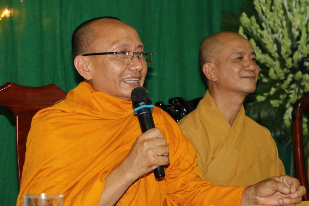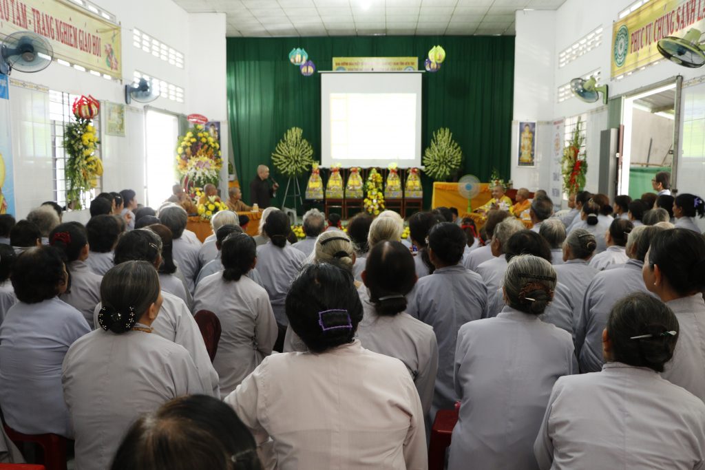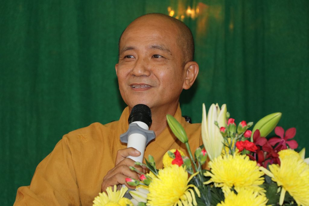 Tiếp theo, ĐĐ. Thích Pháp Thông – Ủy viên Ban Hướng Dẫn Phật tử (HDPT) TƯ, Trưởng Ban HDPT PG tỉnh Bến Tre có vài lời sách tấn các khóa sinh và chúc khóa tu thành công viên mãn.