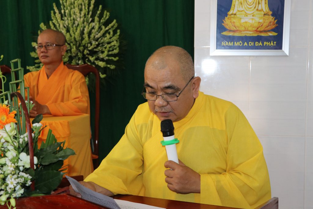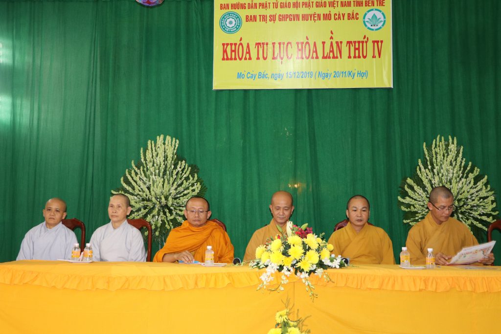 Thay mặt Ban tổ chức, TT. Thích Minh Phong – Trưởng Ban Trị sự PG huyện Mỏ Cày Bắc (Trưởng ban tổ chức) tuyên bố khai mạc buổi lễ “Khóa tu Lục hòa lần thứ IV” và giao lưu các đạo tràng Phật tử huyện Mỏ Cày Bắc.