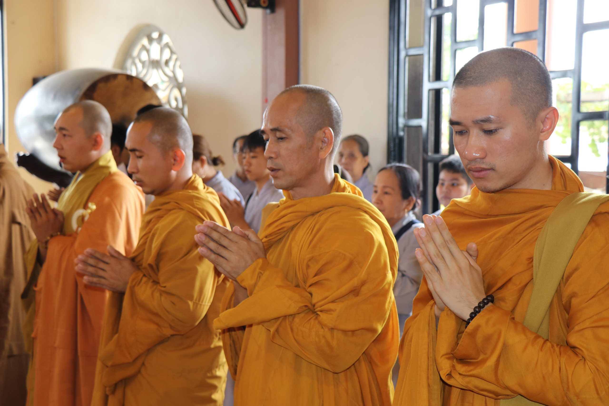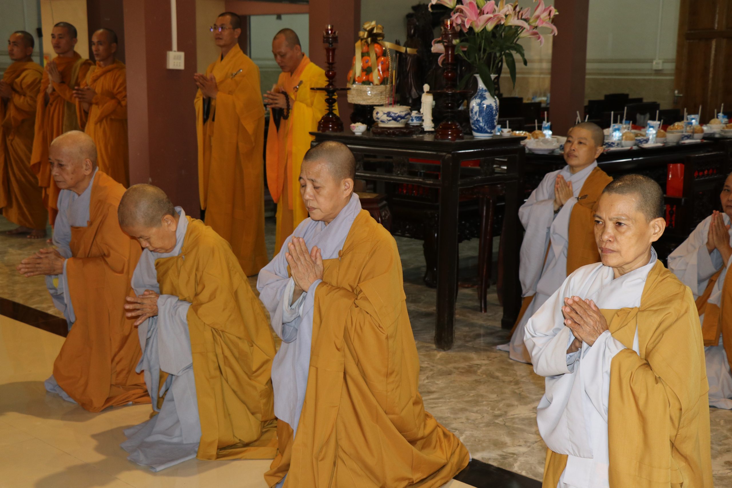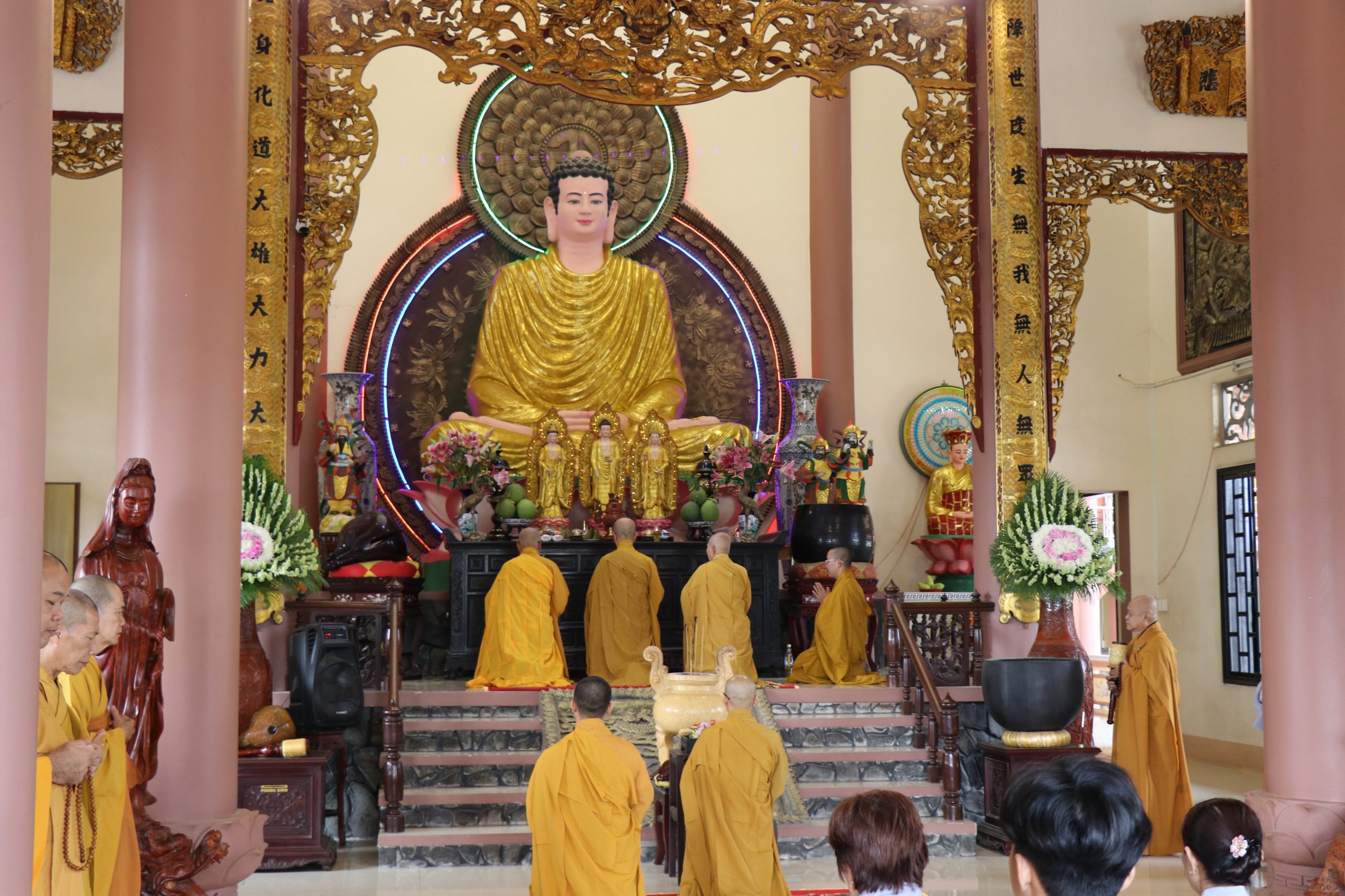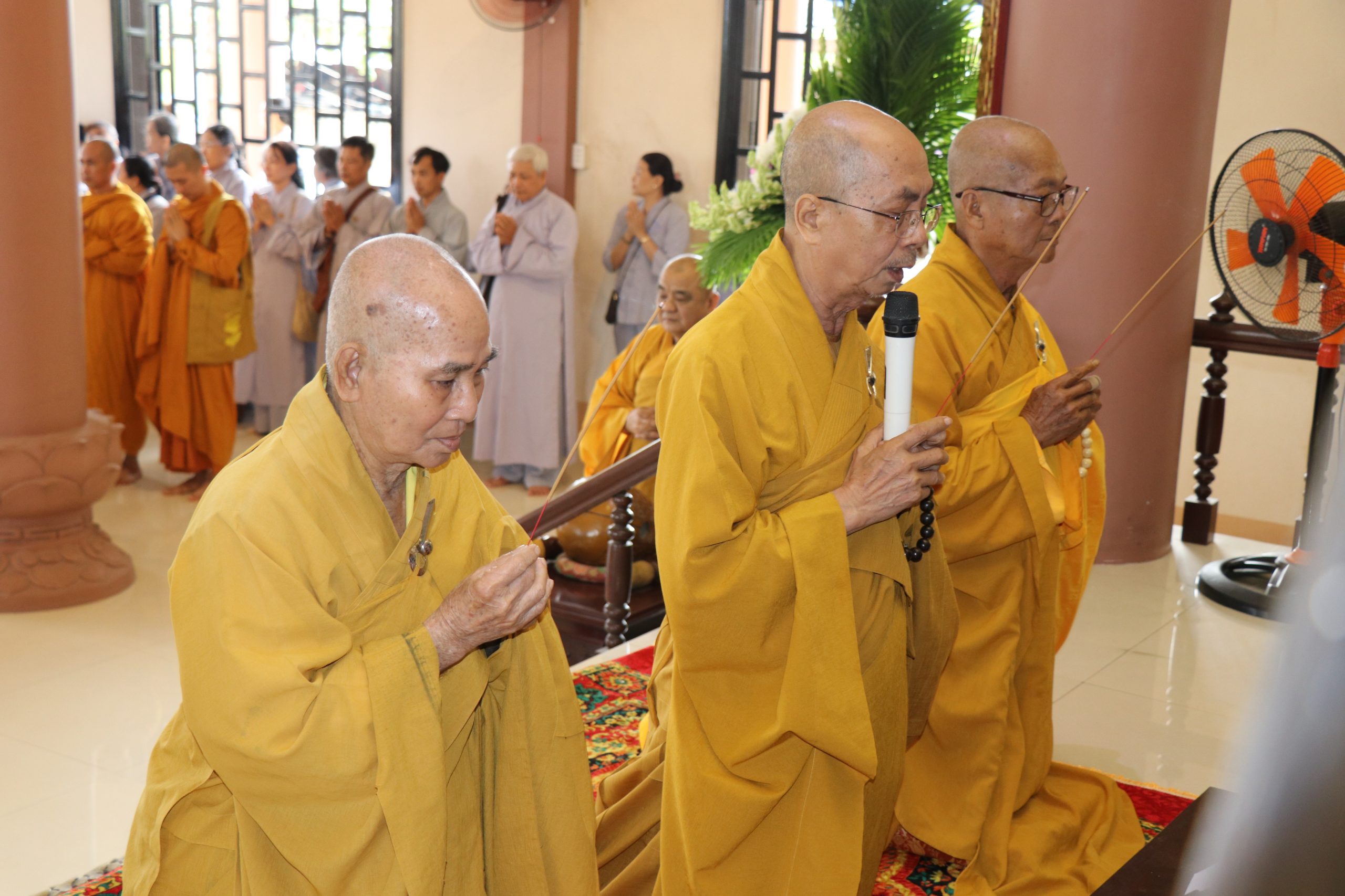 Buổi lễ bắt đầu với nghi thức cúng ngọ do môn đồ pháp quyến cung kính bái thỉnh chư Tôn đức quang lâm chánh điện niệm hương bạch Phật.