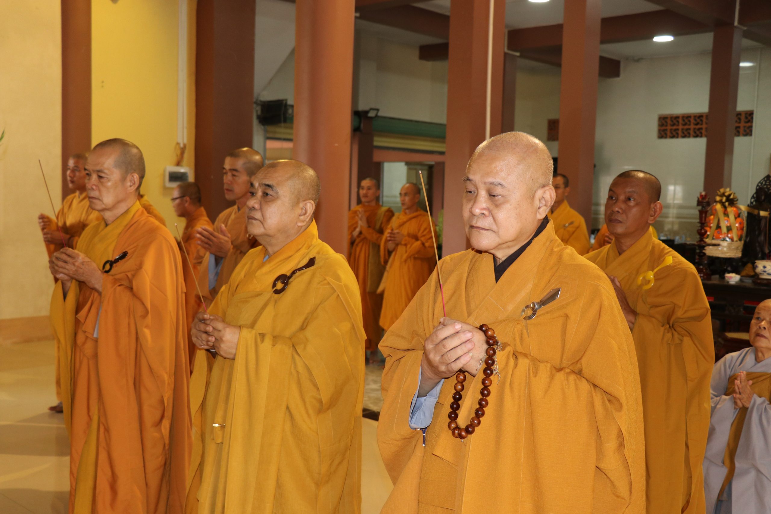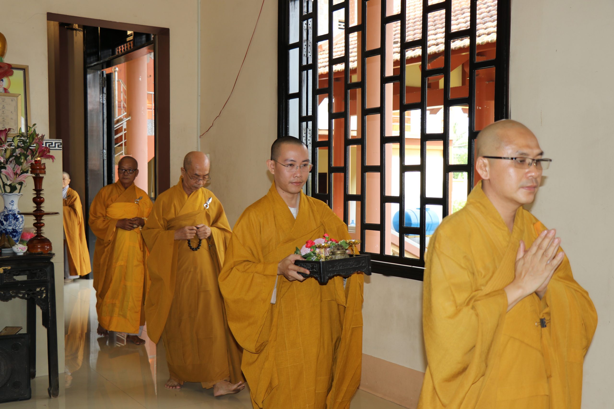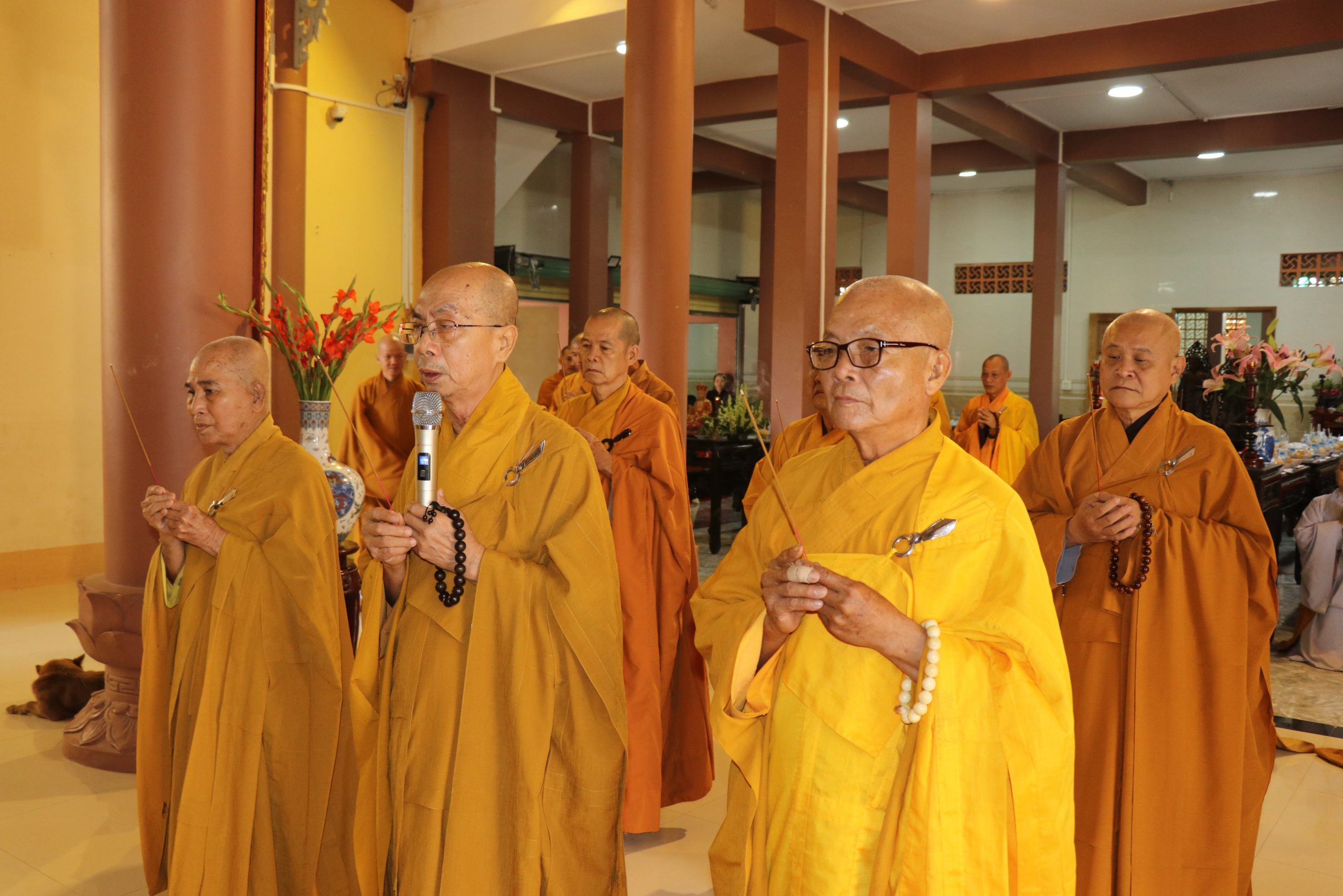 Buổi lễ bắt đầu với nghi thức cúng ngọ do môn đồ pháp quyến cung kính bái thỉnh chư Tôn đức quang lâm chánh điện niệm hương bạch Phật.