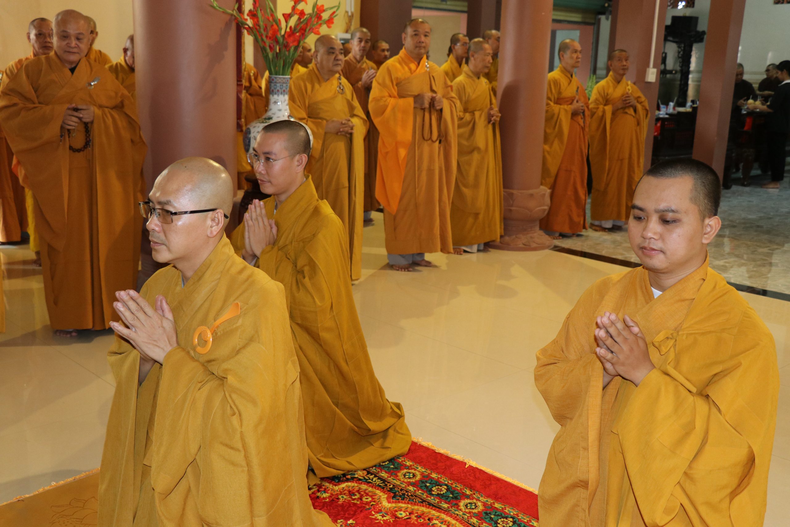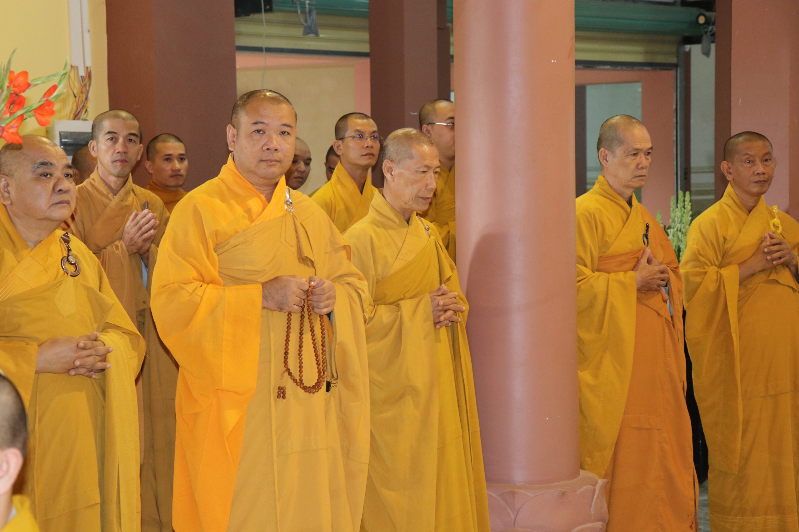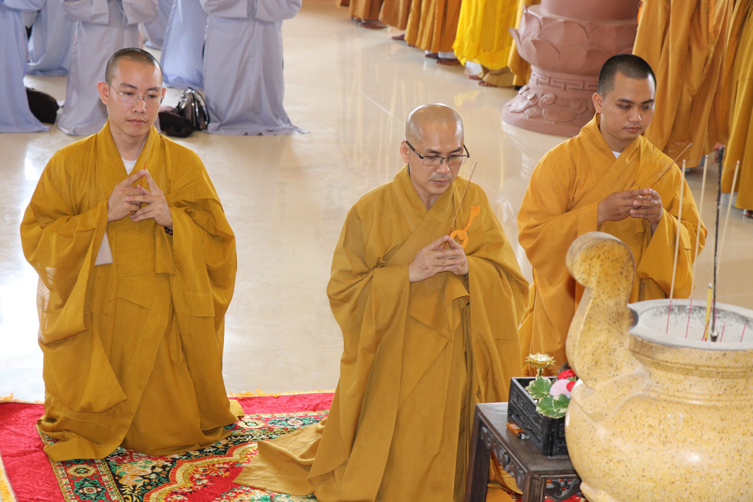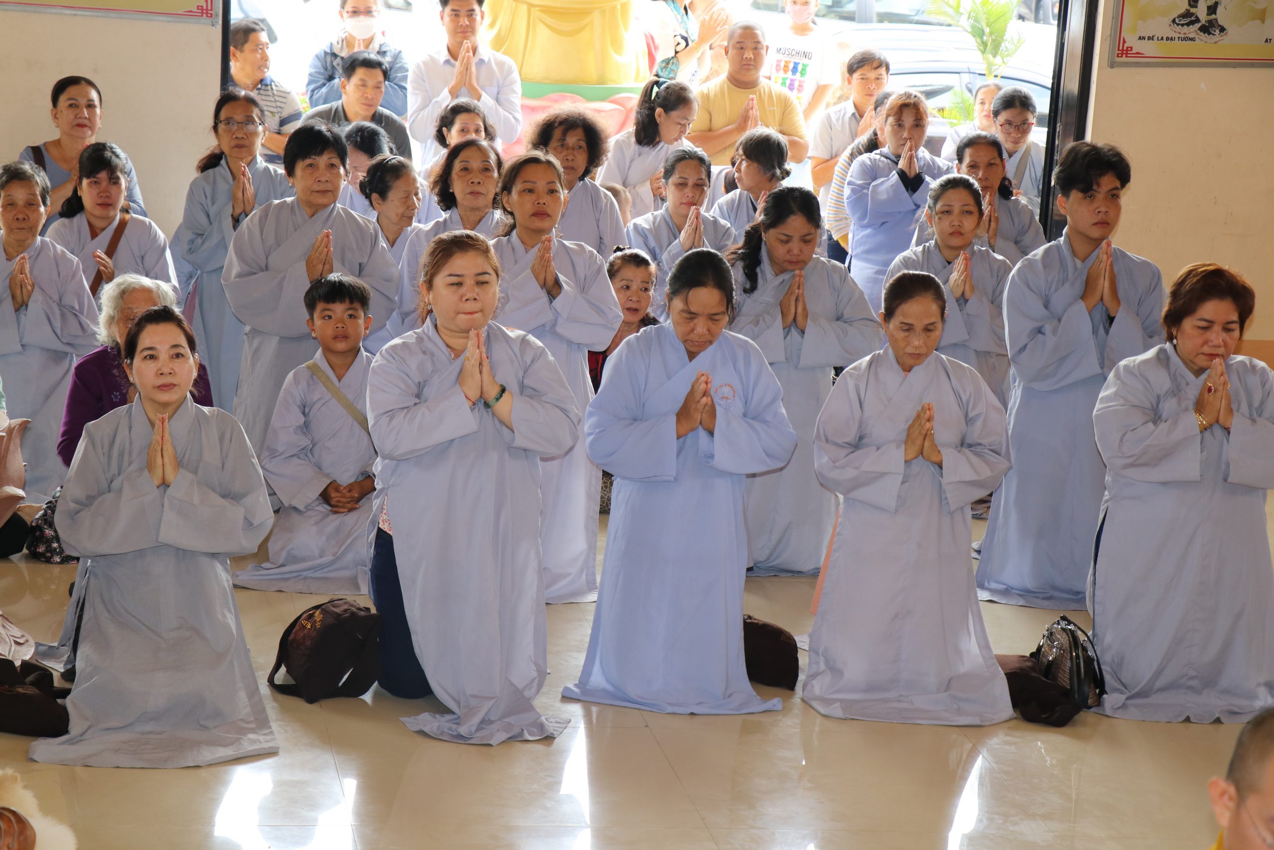 Buổi lễ bắt đầu với nghi thức cúng ngọ do môn đồ pháp quyến cung kính bái thỉnh chư Tôn đức quang lâm chánh điện niệm hương bạch Phật.