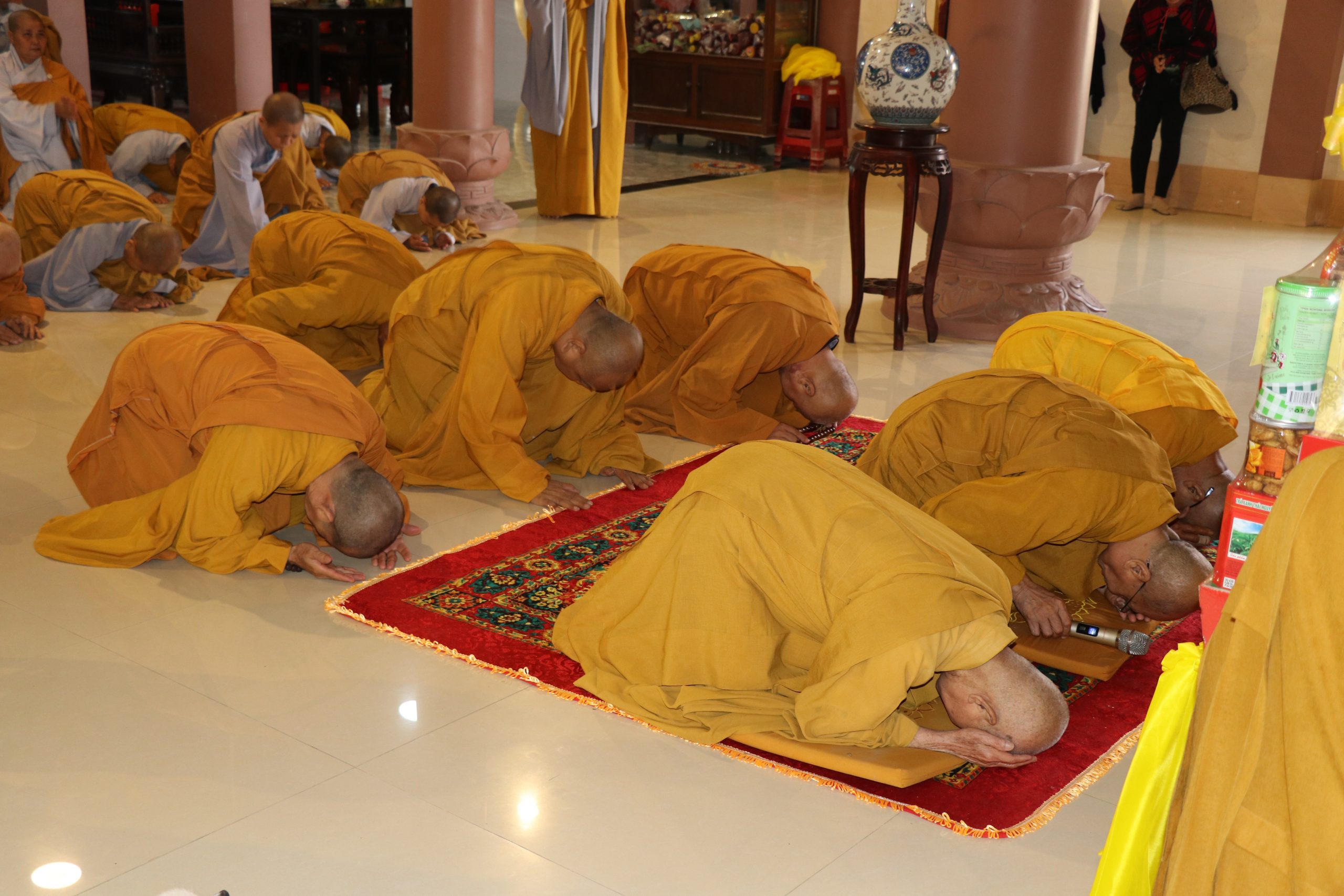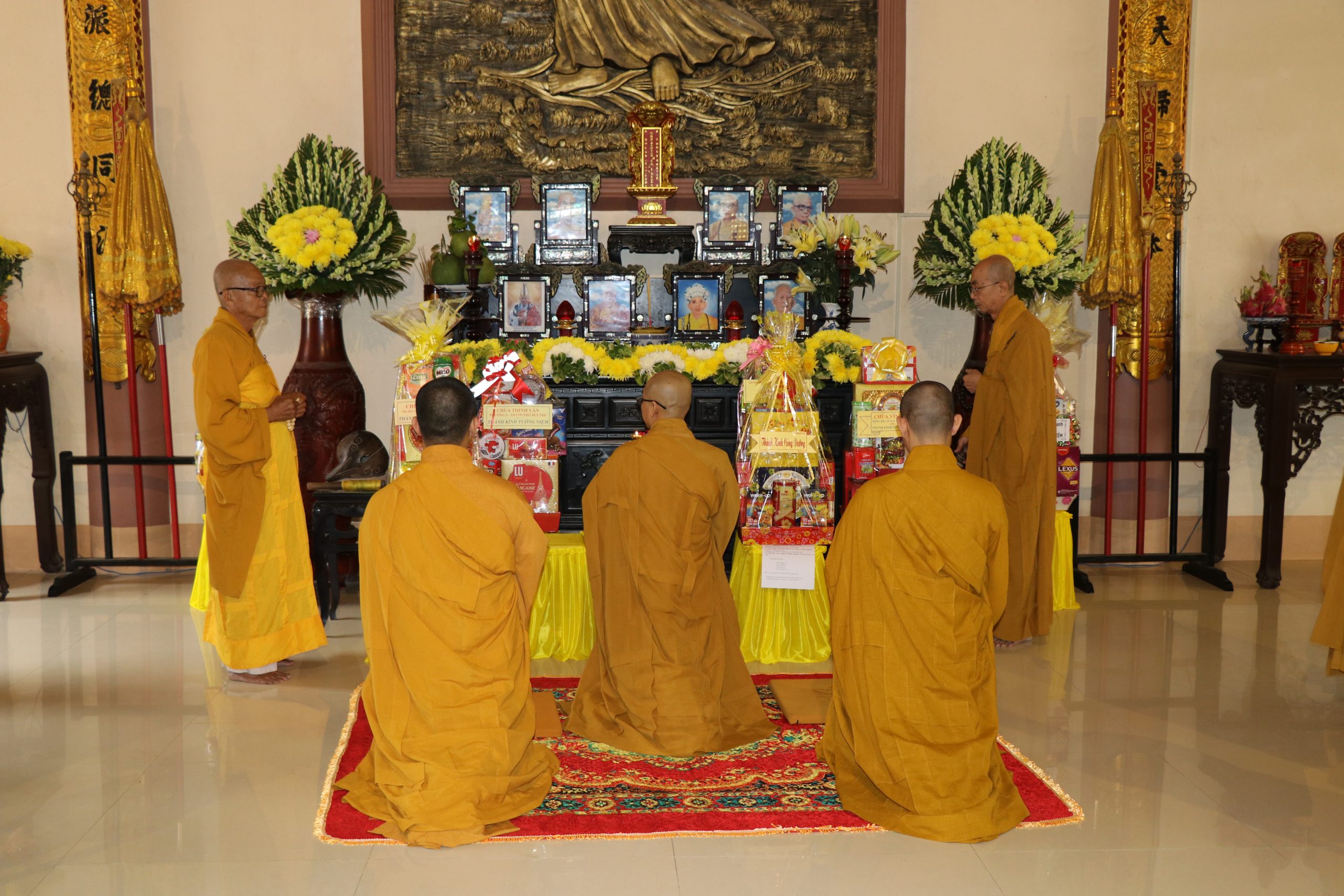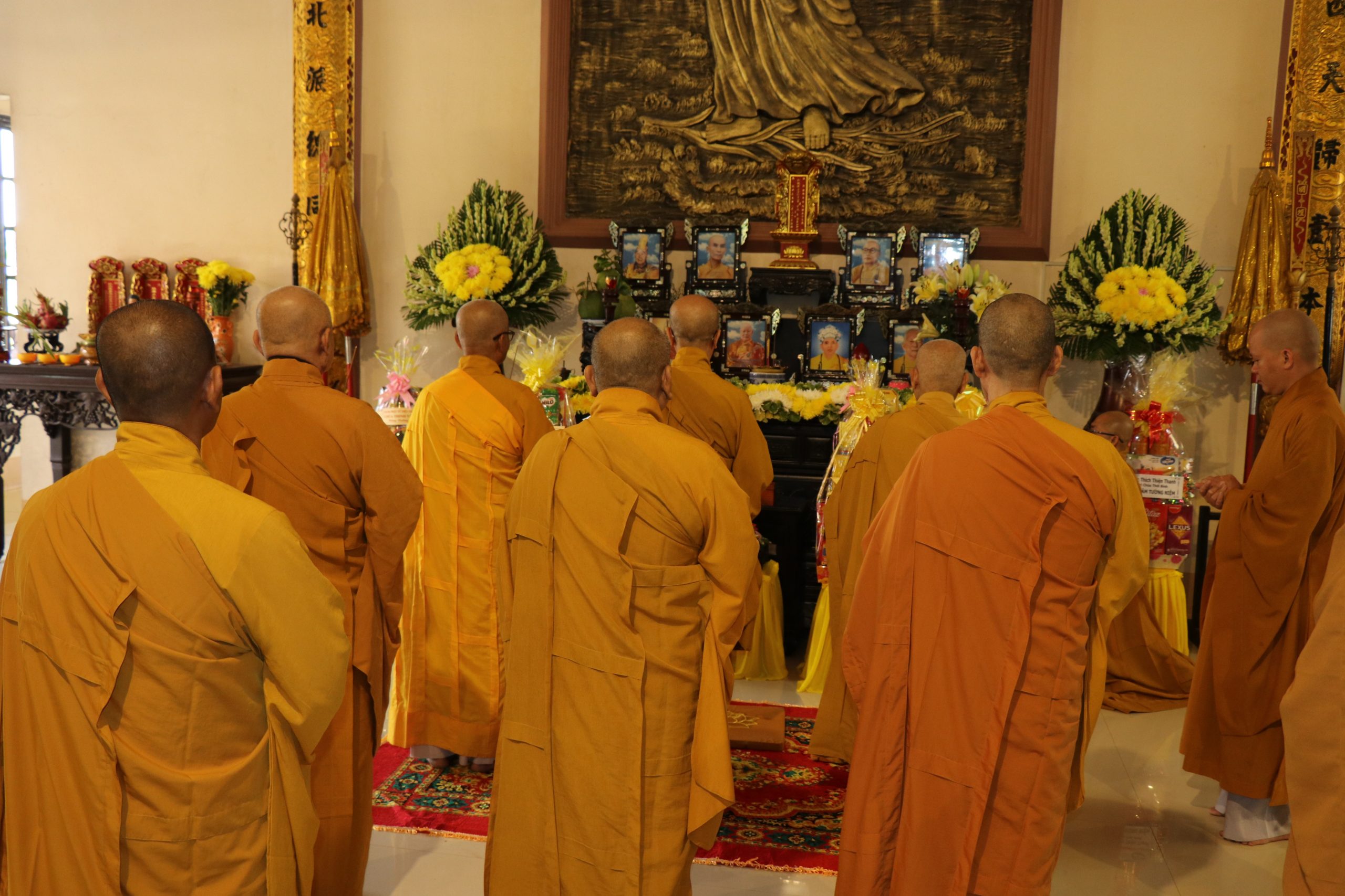 Sau khoá lễ tụng kinh, trong không khí trang nghiêm, đối trước tổ đường HT.Thích Nhựt Tấn thay mặt chư Tôn đức Tăng Ni dâng lời tưởng niệm và nguyện cầu chư vị Hòa thượng, chư tiền bối hữu công chứng quả vô sanh.