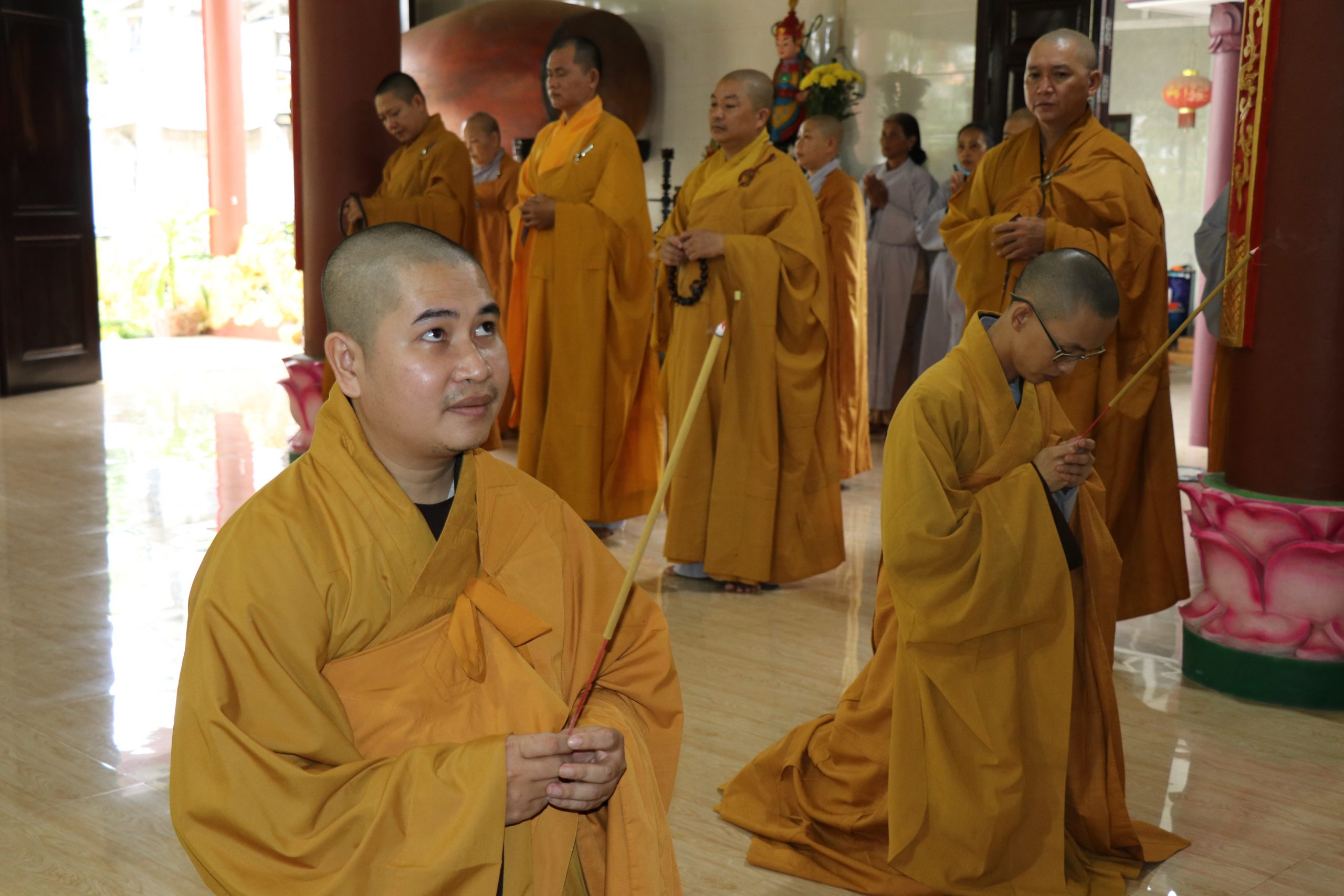 Bắt đầu khóa lễ chư Tôn thiền đức Tăng Ni vân tập đại hùng bửu điện phúng tụng thời khóa cúng ngọ dưới sự niêm hương của TT. Thích Thiện Chiêu, TT. Thích Lệ Thiện.