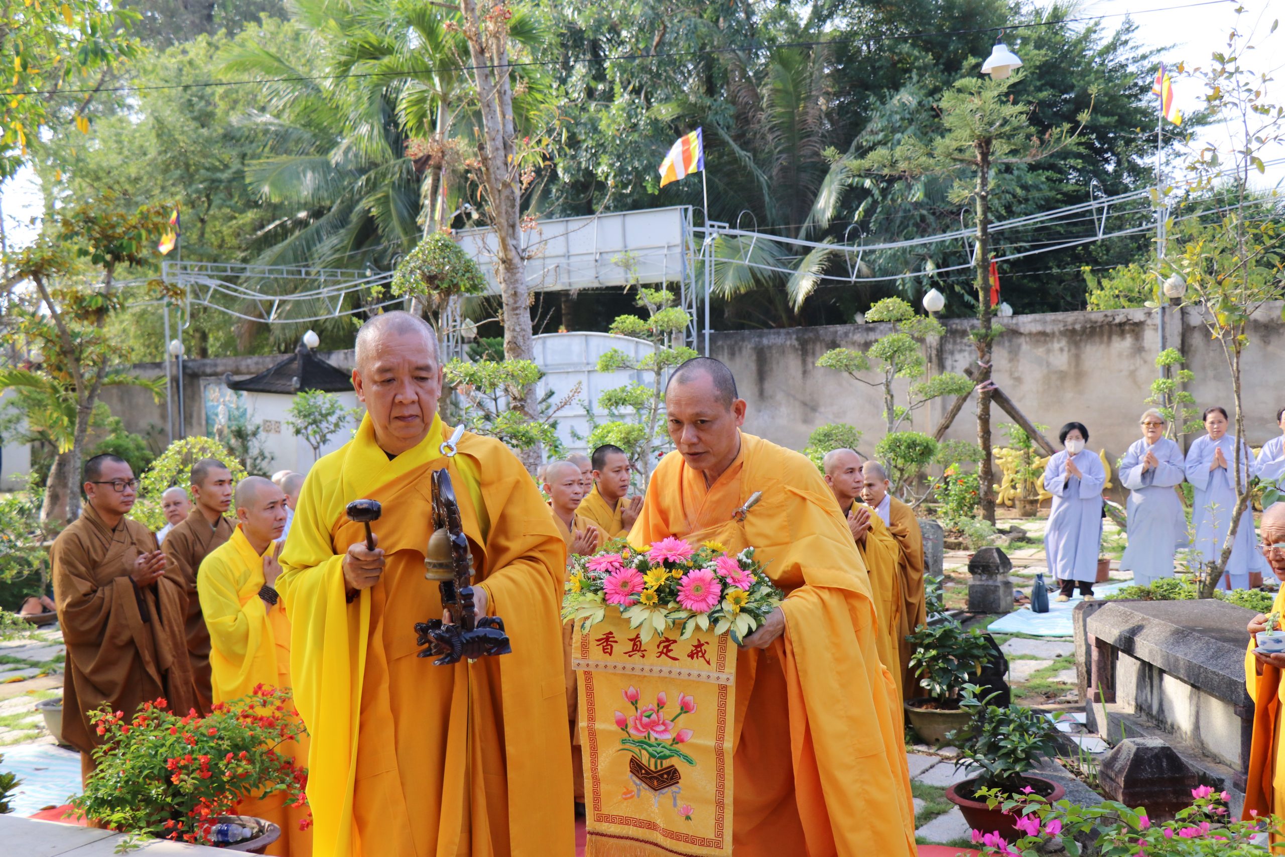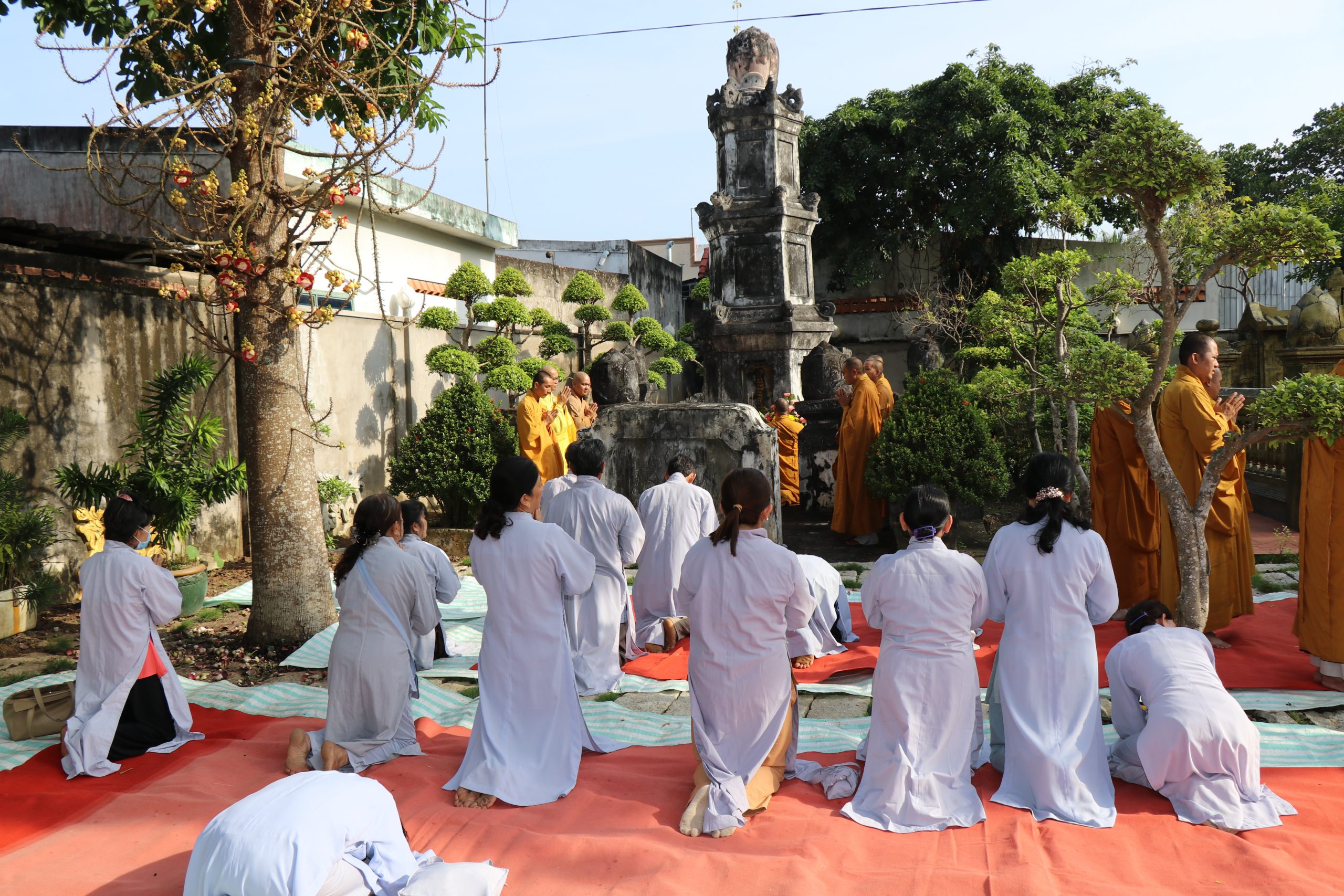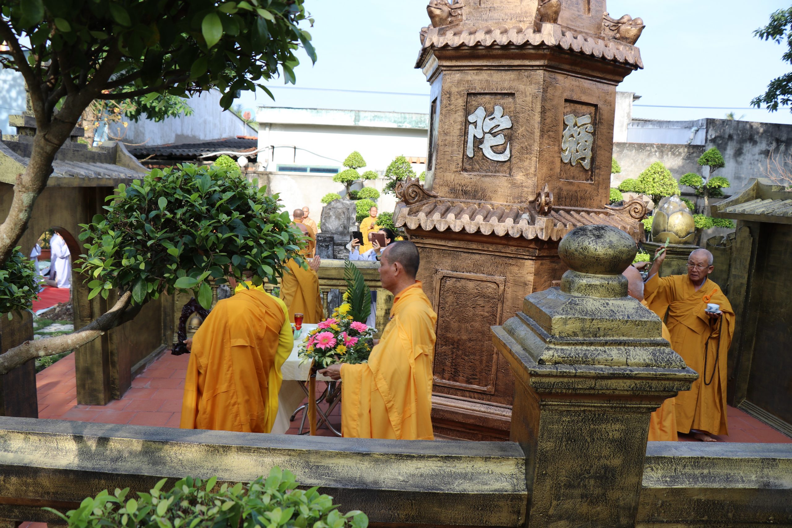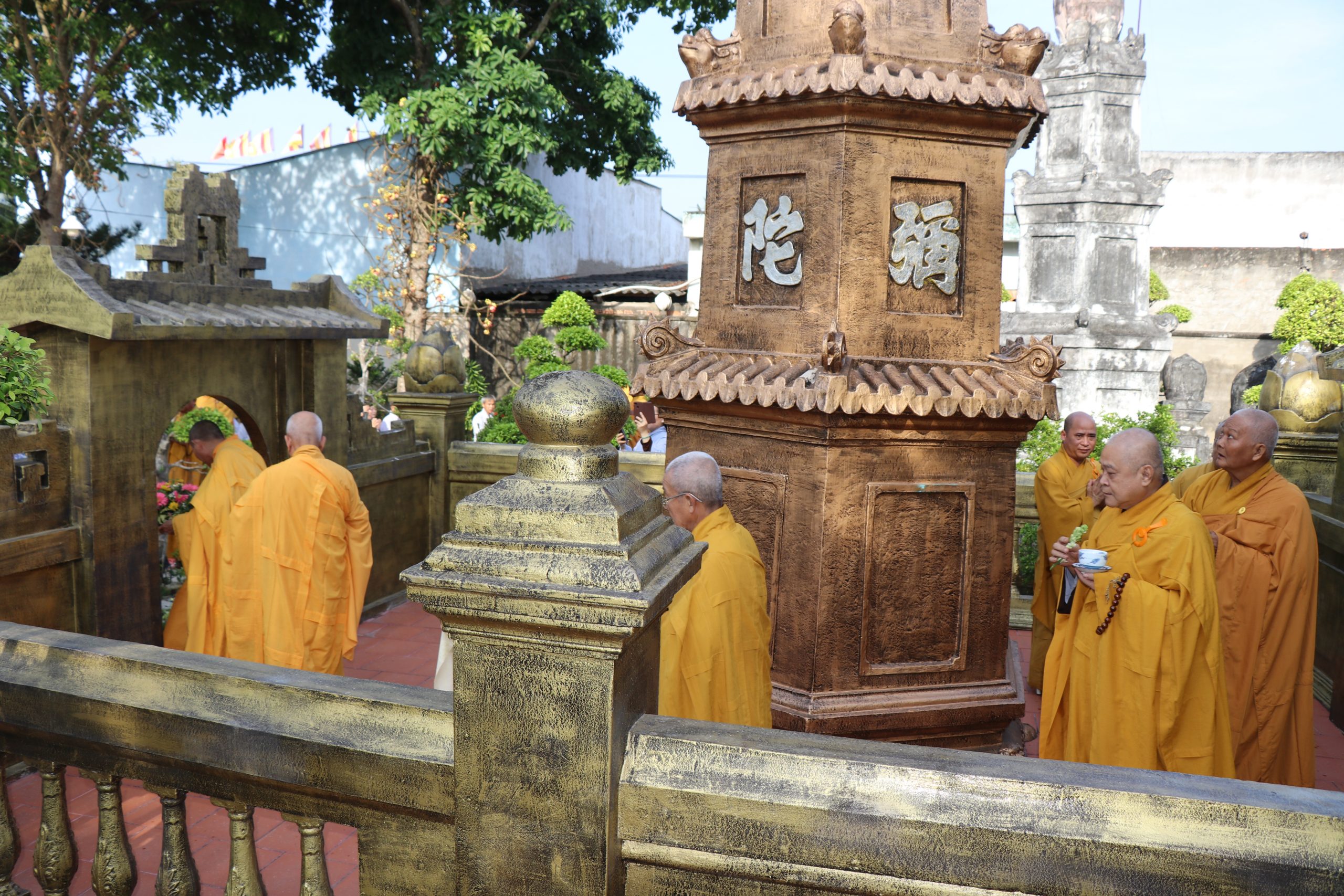 Môn đồ pháp quyến cung kính bái thỉnh chư Tôn đức quang lâm Bảo tháp tiến hành lễ nhiễu tháp ba vòng trong không khí trang nghiêm thanh tịnh, thể hiện tính chất thiêng liêng và tinh thần tri ân, báo ân của Chư Tôn Đức đối với chư tiền bối hữu công đã dày công vun đắp cho mái già-lam Hội Tôn.