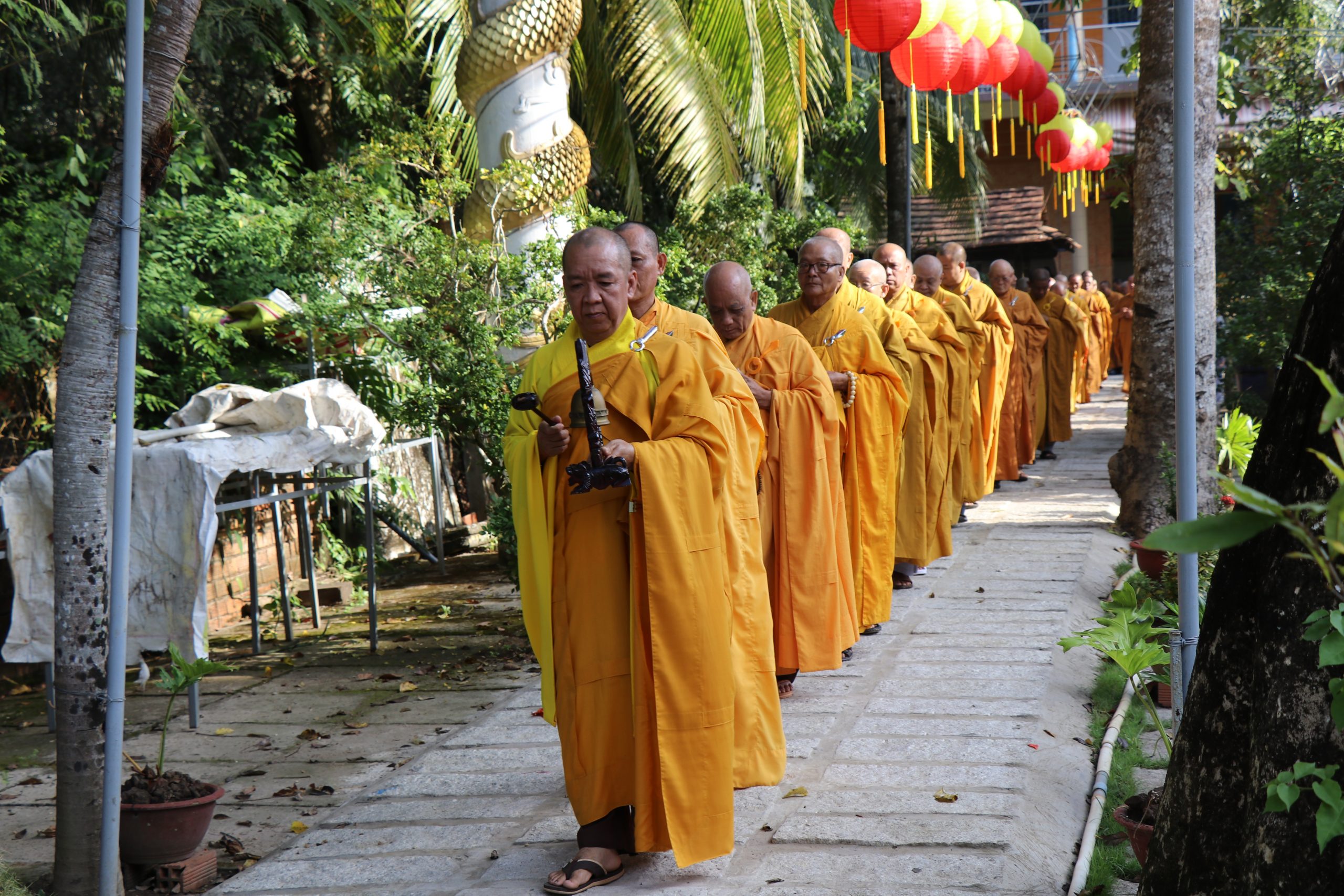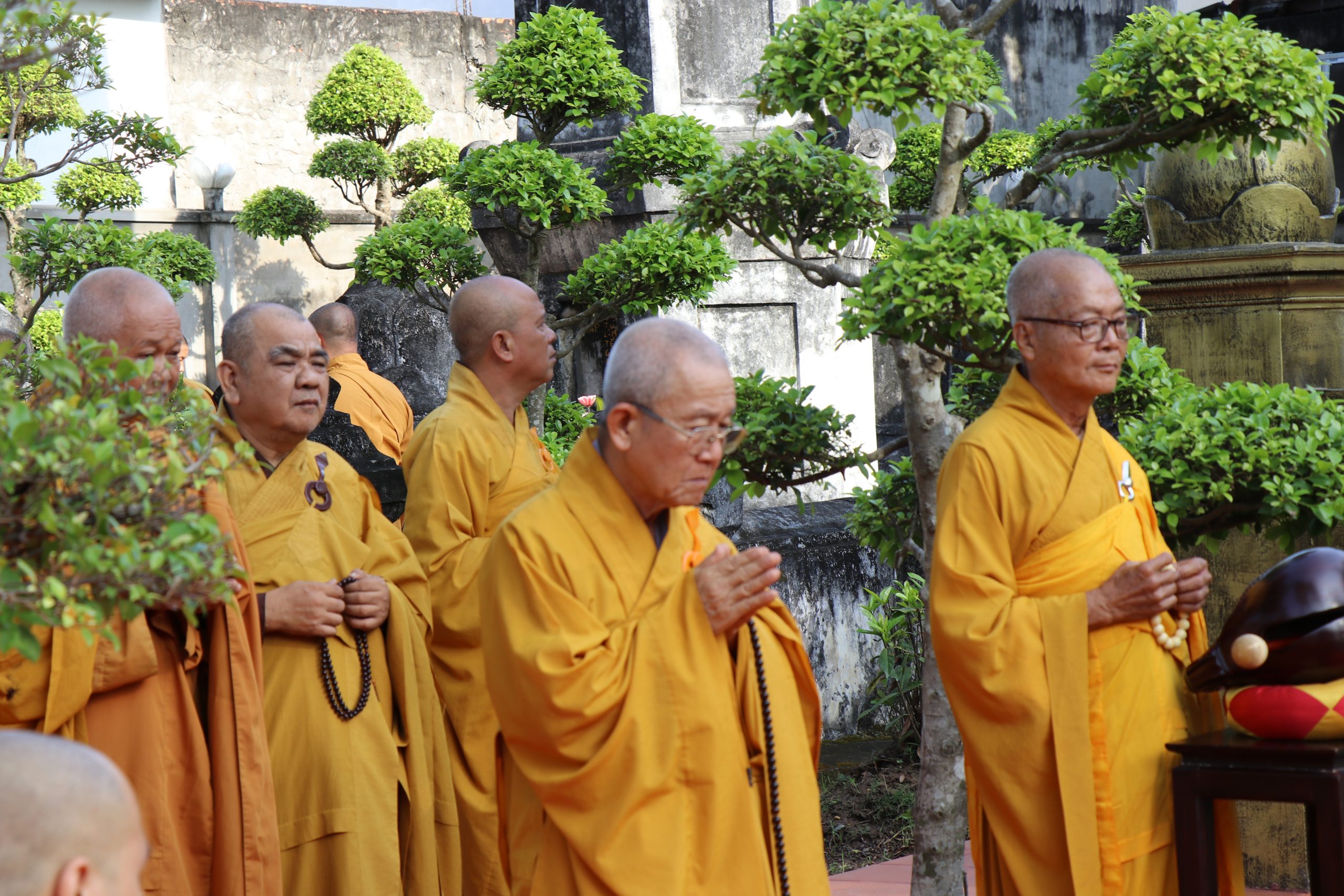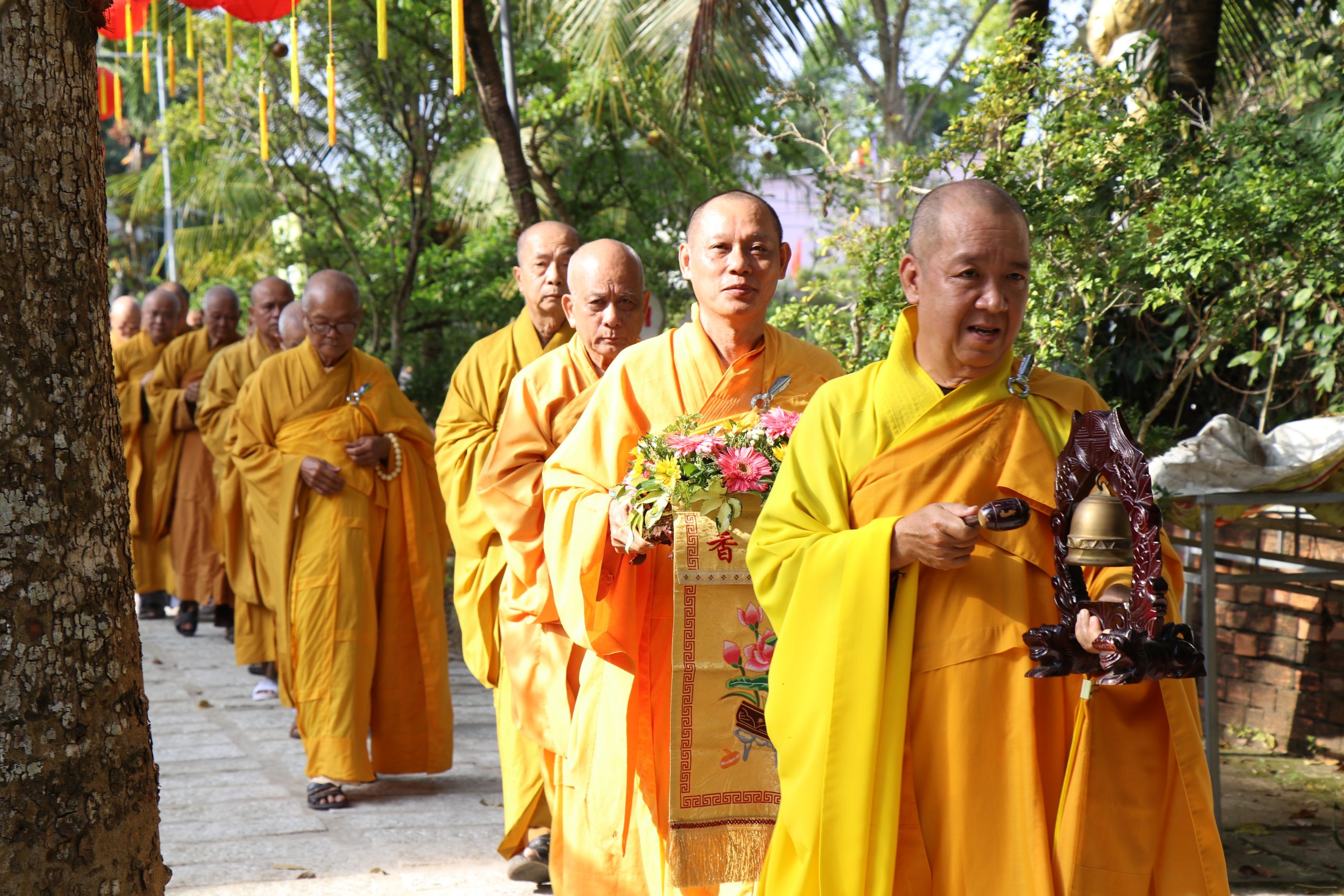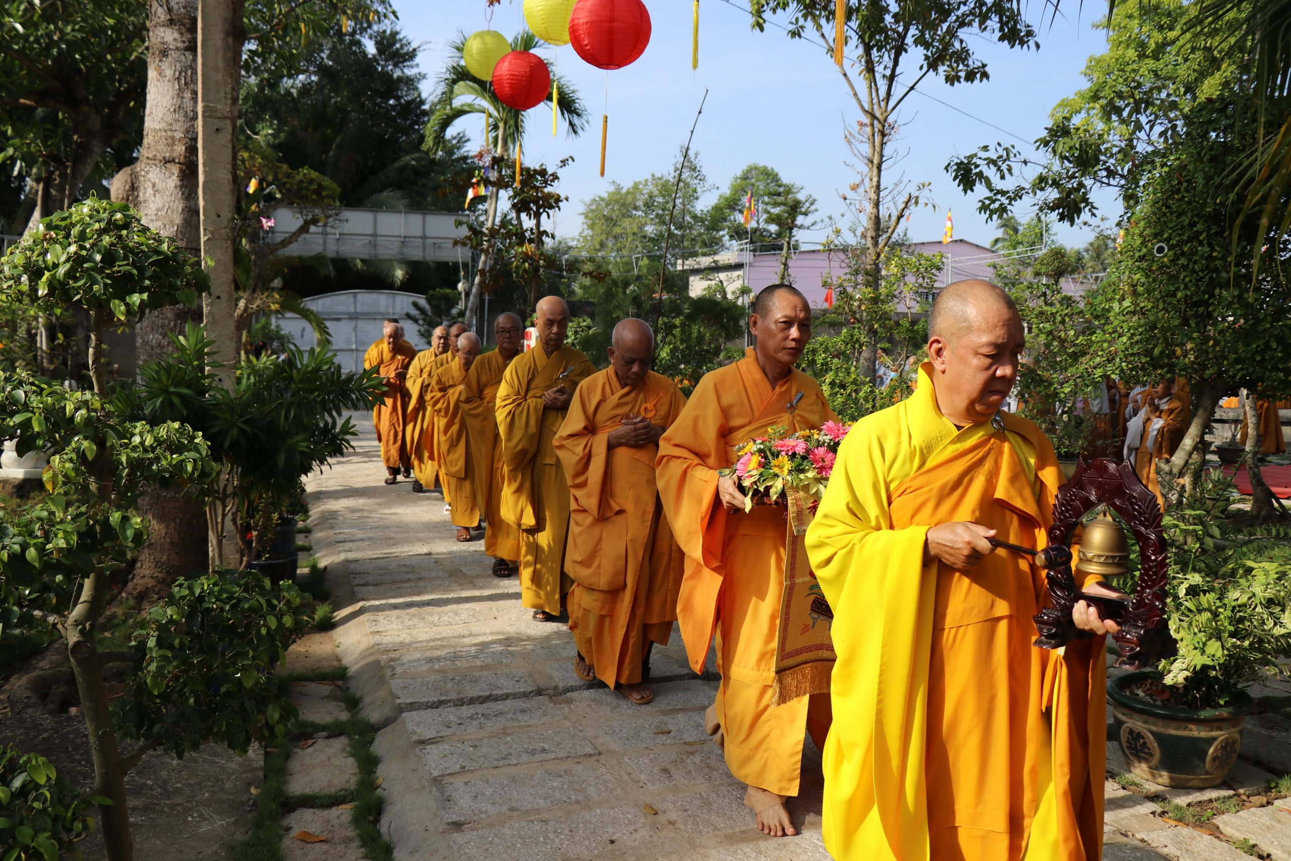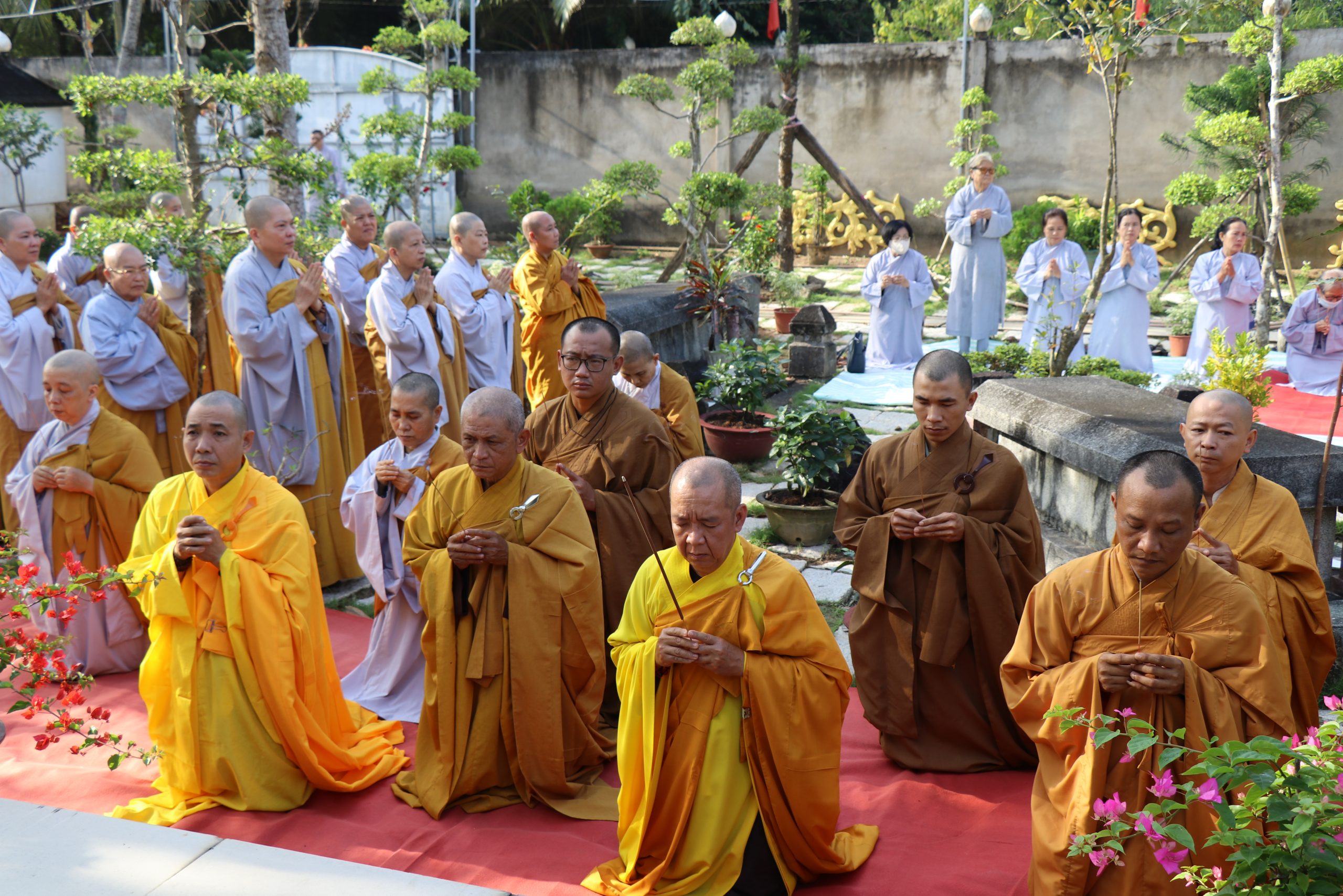 Môn đồ pháp quyến cung kính bái thỉnh chư Tôn đức quang lâm Bảo tháp tiến hành lễ nhiễu tháp ba vòng trong không khí trang nghiêm thanh tịnh, thể hiện tính chất thiêng liêng và tinh thần tri ân, báo ân của Chư Tôn Đức đối với chư tiền bối hữu công đã dày công vun đắp cho mái già-lam Hội Tôn.