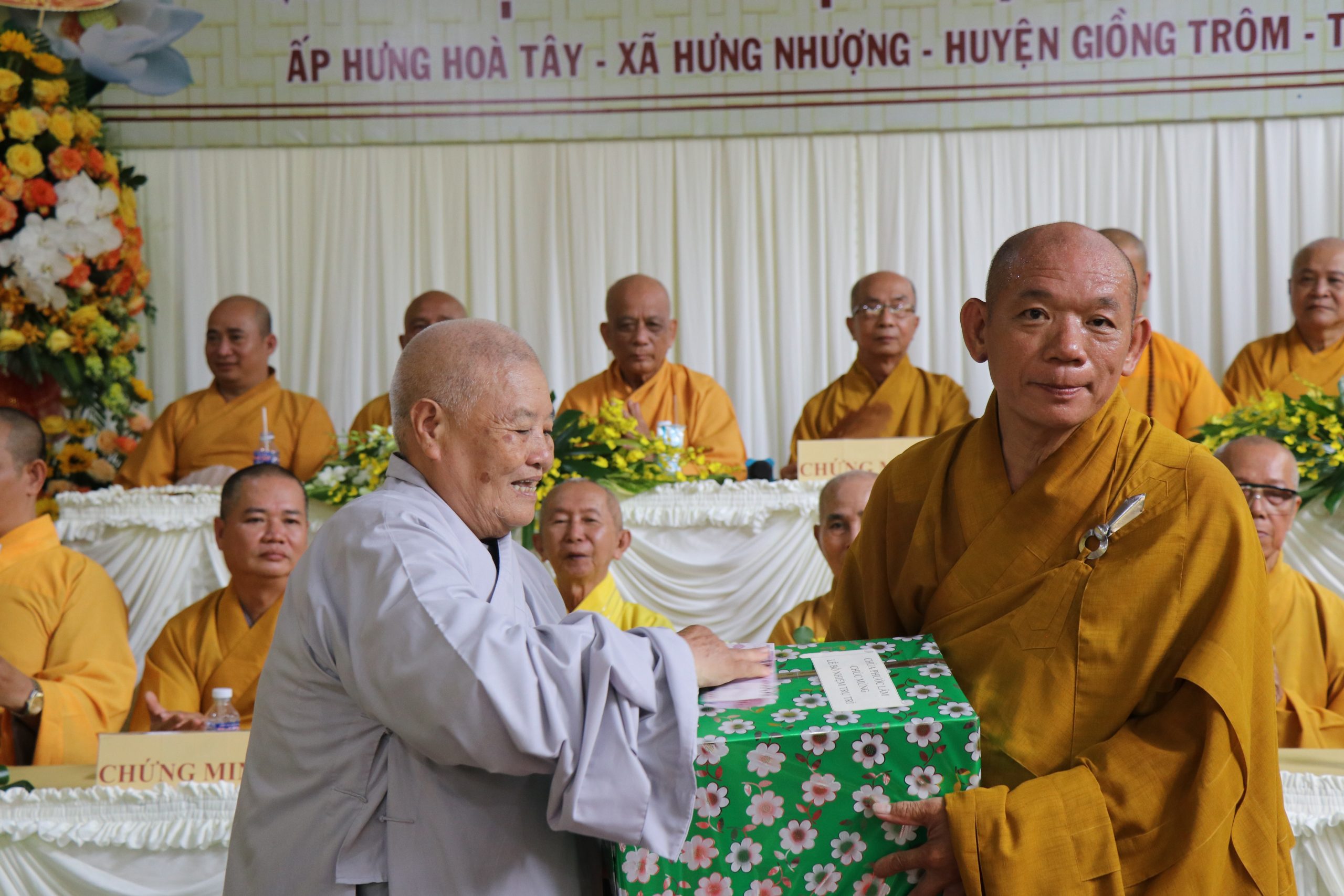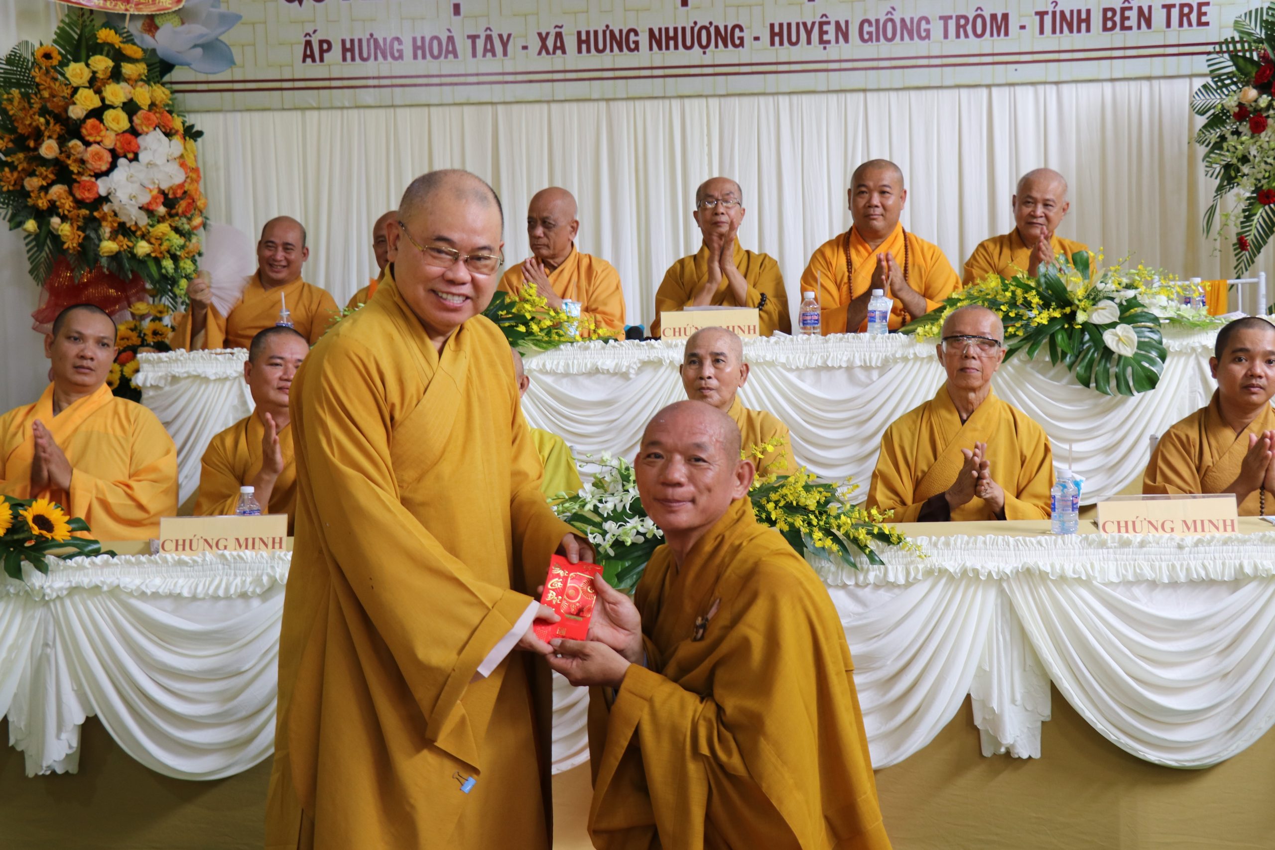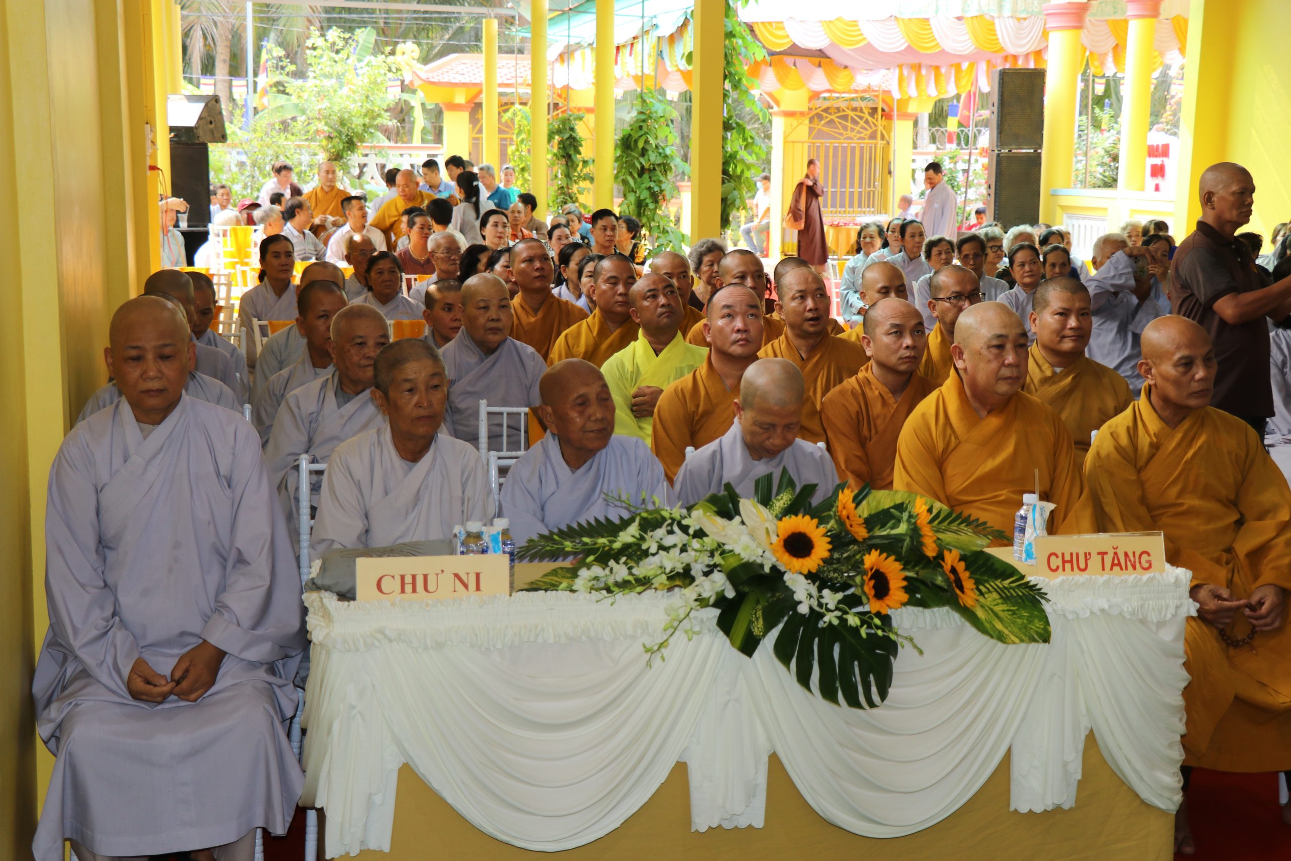 Quang lâm chứng minh buổi lễ có HT.Thích Lệ Đức – Thành viên HĐCM GHPGVN, Chứng minh BTS GHPGVN tỉnh Bến Tre; HT.Thích Nhựt Tấn – UVTT HĐTS, Trưởng BTS GHPGVN tỉnh Bến Tre; TT.Thích Trí Thọ – UV HĐTS, Phó Trưởng ban Thường trực BTS GHPGVN tỉnh; TT.Thích Huệ Đức - Phó BTS kiêm Trưởng Ban Kiểm soát GHPGVN tỉnh; TT.Thích Thanh Mẫn – Phó BTS tỉnh Bến Tre, Trưởng ban Nghi lễ GHPGVN tỉnh; ĐĐ.Thích Trí Thuận – Phó ban, Chánh Thư ký BTS GHPGVN tỉnh; TT.Thích Trung San – UV TT BTS, Trưởng ban Giáo dục GHPGVN tỉnh; TT.Thích Thiện Chiêu, TT.Thích Lệ Thiện - Đồng Chứng minh BTS PG huyện Giồng Trôm; TT.Thích Huệ Định – UV TT BTS, Trưởng Ban Hoằng pháp GHPGVN tỉnh, Trưởng BTS GHPGVN huyện Giồng Trôm (trưởng ban tổ chức); NS.Thích Nữ Như Nguyệt – Phó Thư ký BTS, Trưởng ban Kinh tế tài chính GHPGVN tỉnh; cùng chư Tôn đức Tăng Ni trụ trì các tự viện và Phật tử về tham dự đông đủ.
