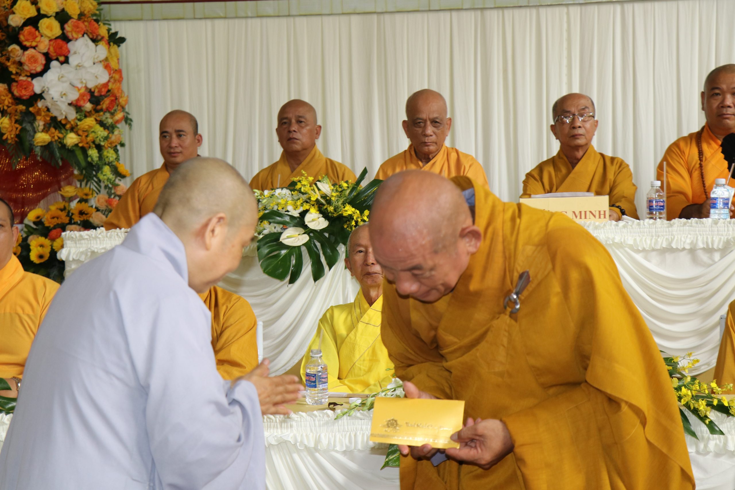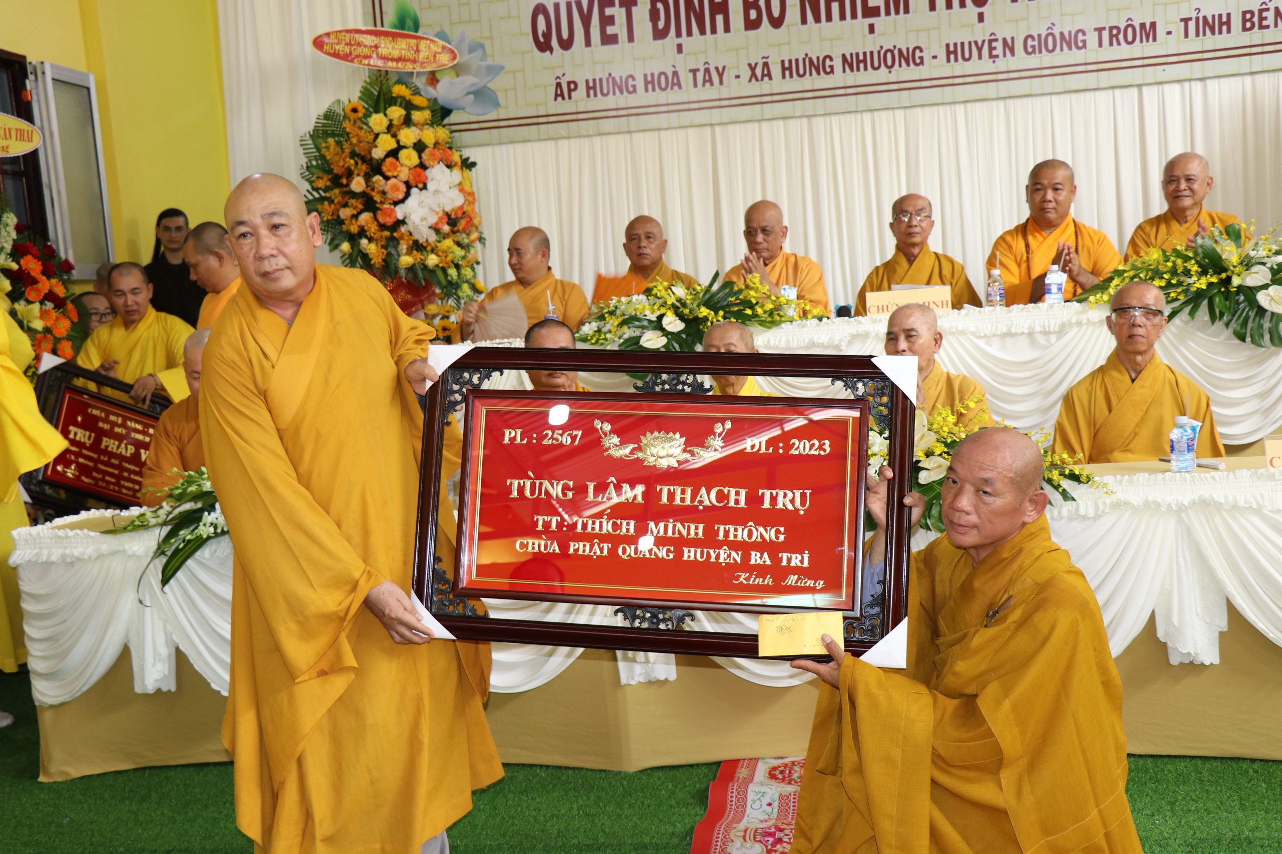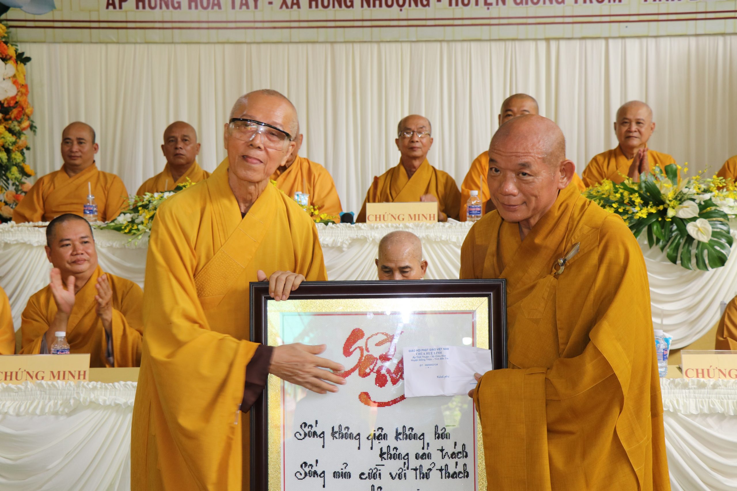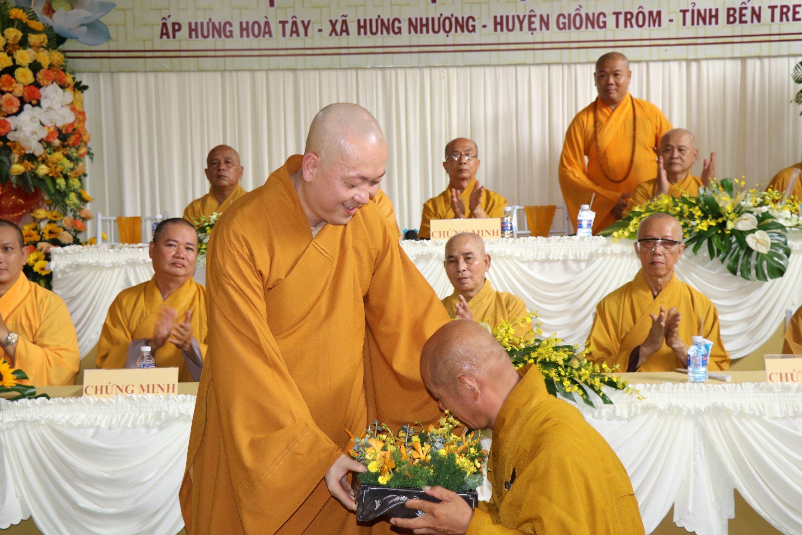 Quang lâm chứng minh buổi lễ có HT.Thích Lệ Đức – Thành viên HĐCM GHPGVN, Chứng minh BTS GHPGVN tỉnh Bến Tre; HT.Thích Nhựt Tấn – UVTT HĐTS, Trưởng BTS GHPGVN tỉnh Bến Tre; TT.Thích Trí Thọ – UV HĐTS, Phó Trưởng ban Thường trực BTS GHPGVN tỉnh; TT.Thích Huệ Đức - Phó BTS kiêm Trưởng Ban Kiểm soát GHPGVN tỉnh; TT.Thích Thanh Mẫn – Phó BTS tỉnh Bến Tre, Trưởng ban Nghi lễ GHPGVN tỉnh; ĐĐ.Thích Trí Thuận – Phó ban, Chánh Thư ký BTS GHPGVN tỉnh; TT.Thích Trung San – UV TT BTS, Trưởng ban Giáo dục GHPGVN tỉnh; TT.Thích Thiện Chiêu, TT.Thích Lệ Thiện - Đồng Chứng minh BTS PG huyện Giồng Trôm; TT.Thích Huệ Định – UV TT BTS, Trưởng Ban Hoằng pháp GHPGVN tỉnh, Trưởng BTS GHPGVN huyện Giồng Trôm (trưởng ban tổ chức); NS.Thích Nữ Như Nguyệt – Phó Thư ký BTS, Trưởng ban Kinh tế tài chính GHPGVN tỉnh; cùng chư Tôn đức Tăng Ni trụ trì các tự viện và Phật tử về tham dự đông đủ.