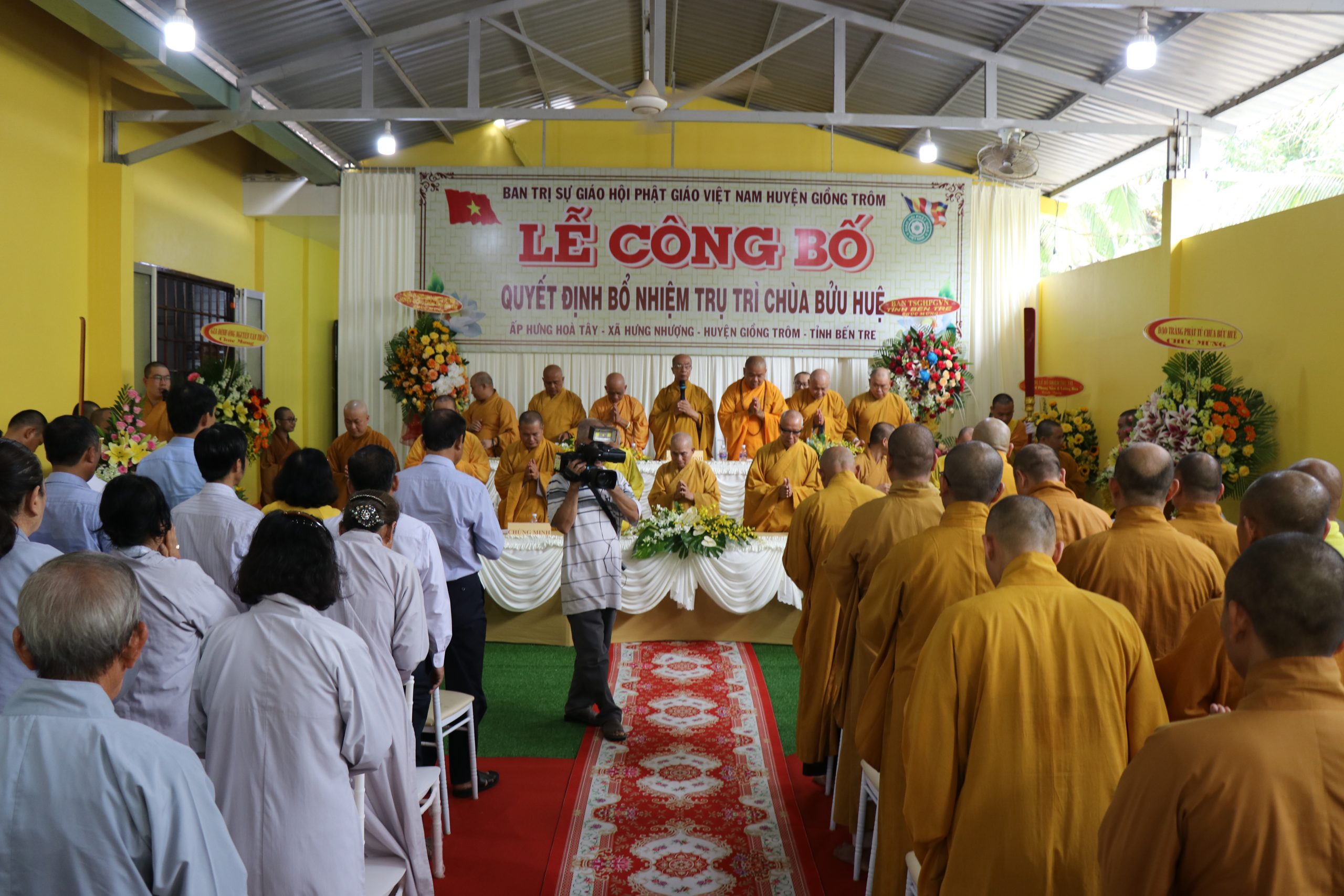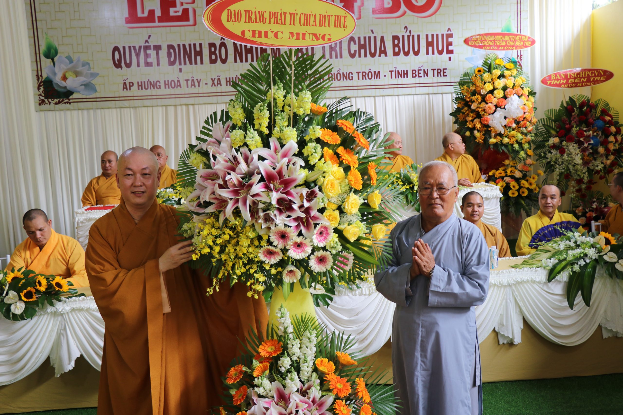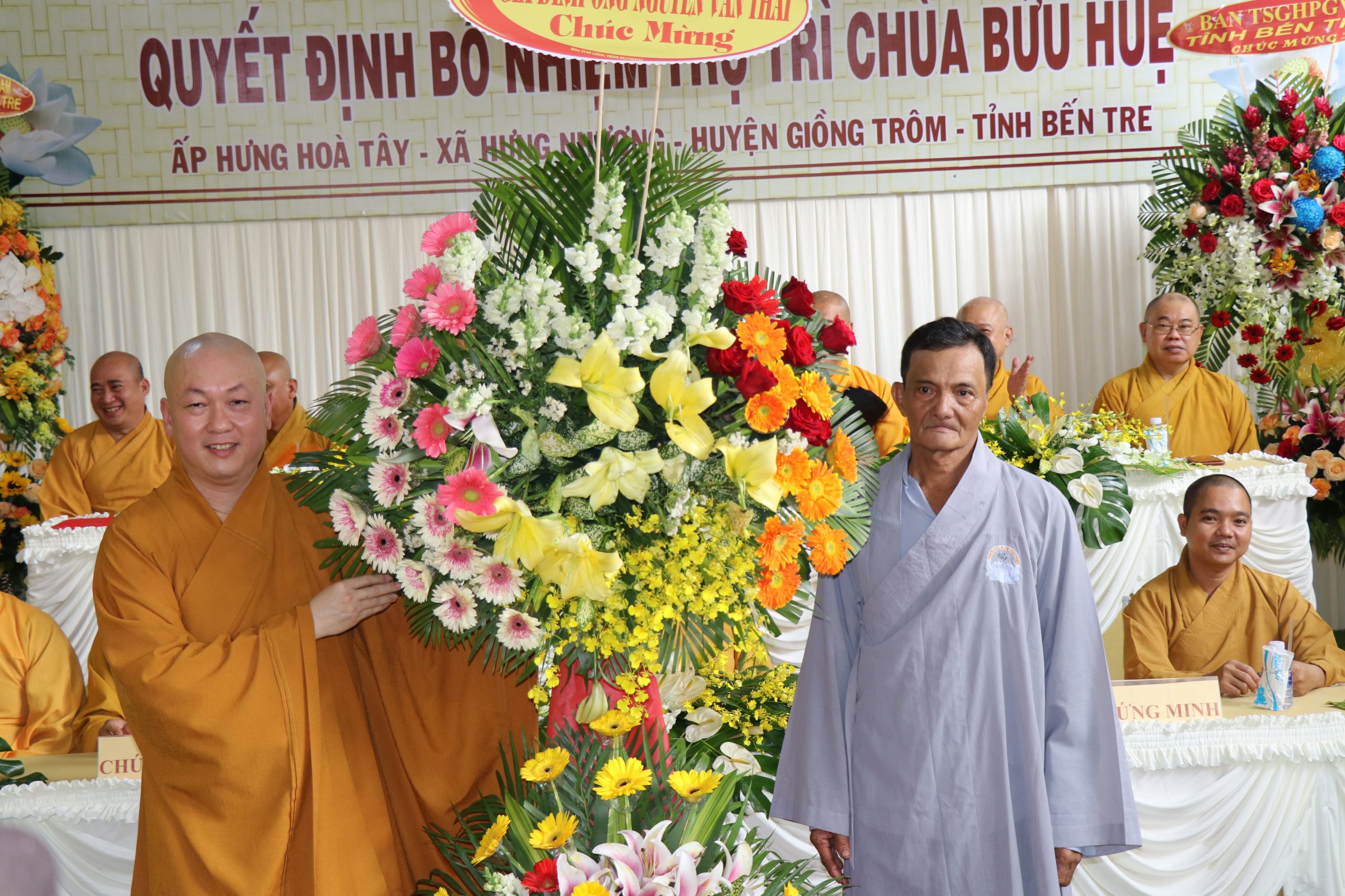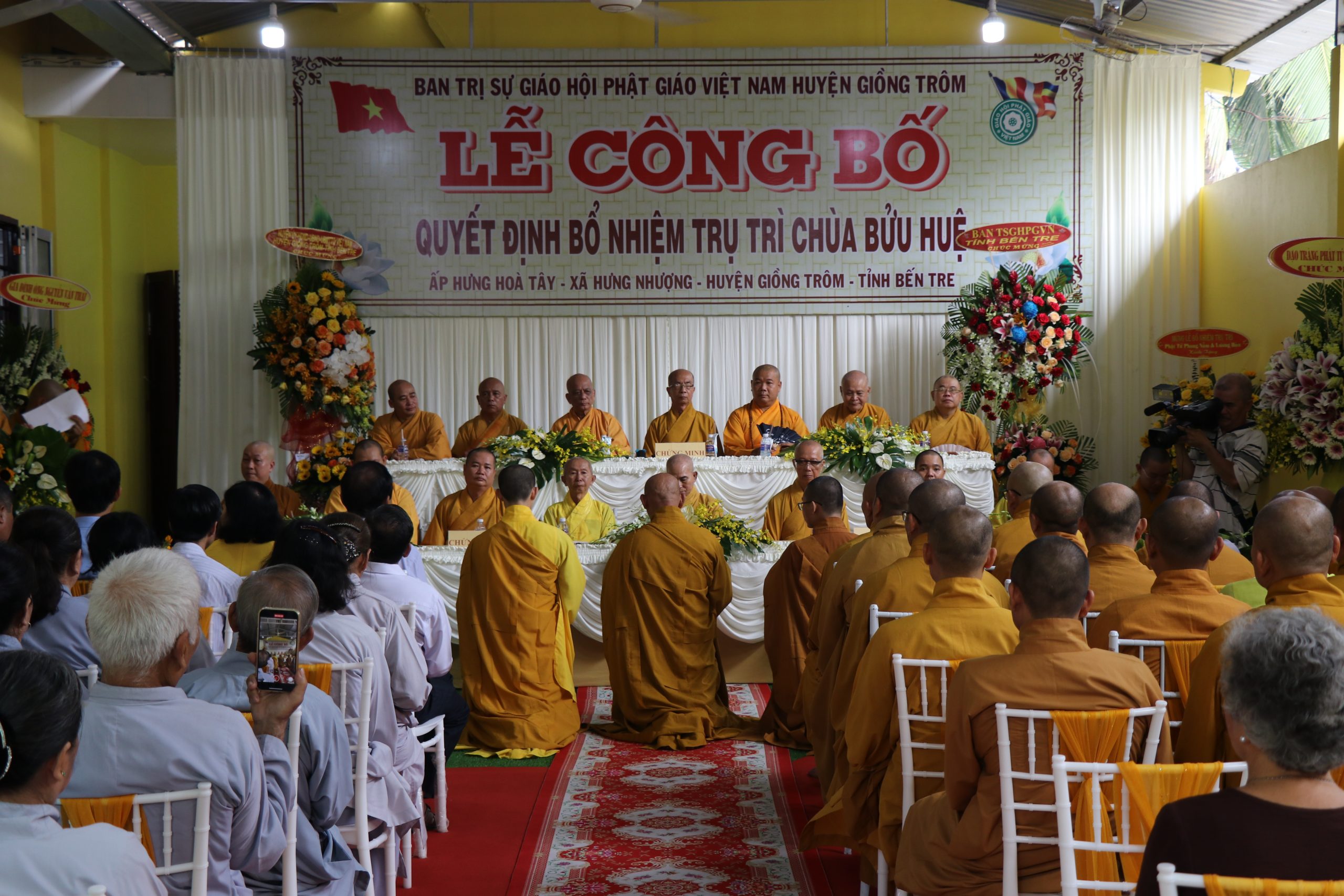 Tại buổi lễ, ĐĐ.Thích Thích Trí Thuận tuyên đọc Quyết định số 31/QĐ-BTS, ngày 07 tháng 04 năm 2023 của Ban Trị sự GHPGVN tỉnh Bến Tre bổ nhiệm ĐĐ.Thích Tĩnh Viên đảm nhiệm trụ trì chùa Bửu Huệ, xã Hưng Nhượng, huyện Giồng Trôm, tỉnh Bến Tre.