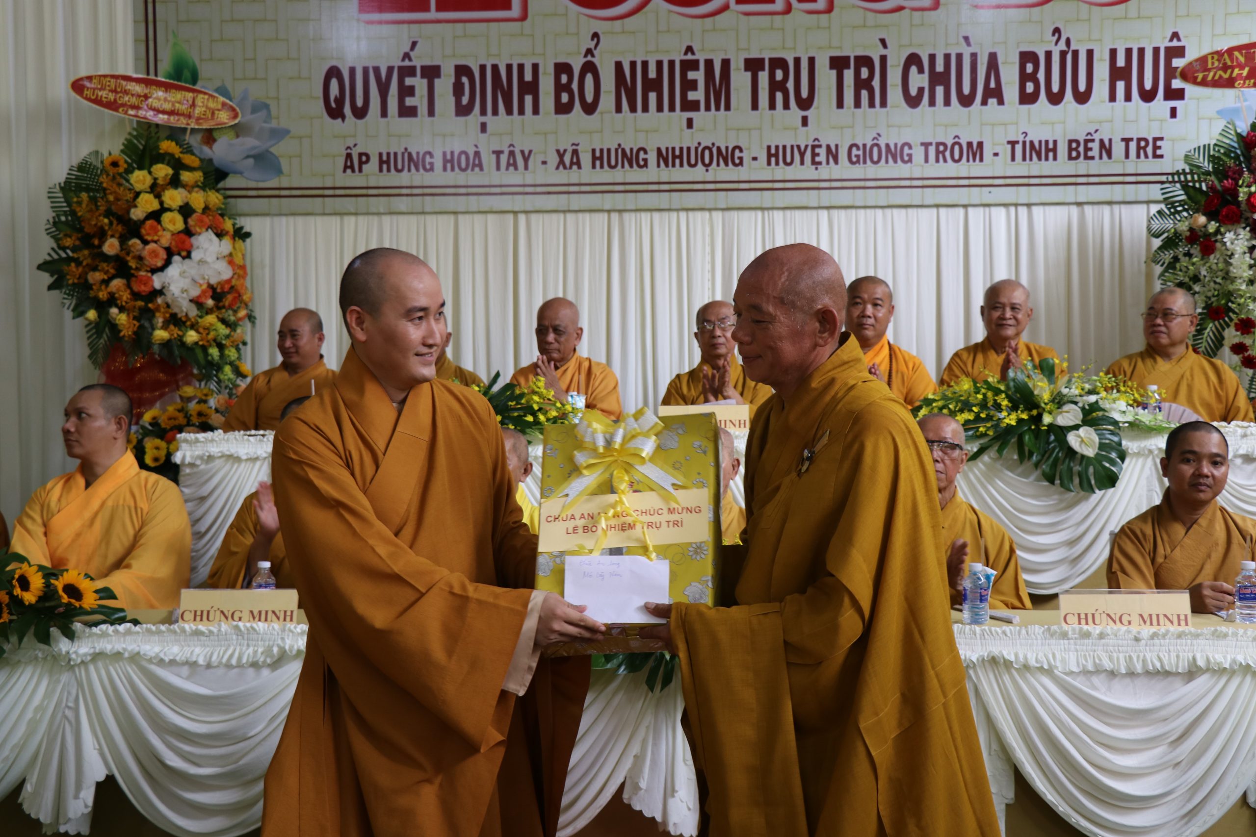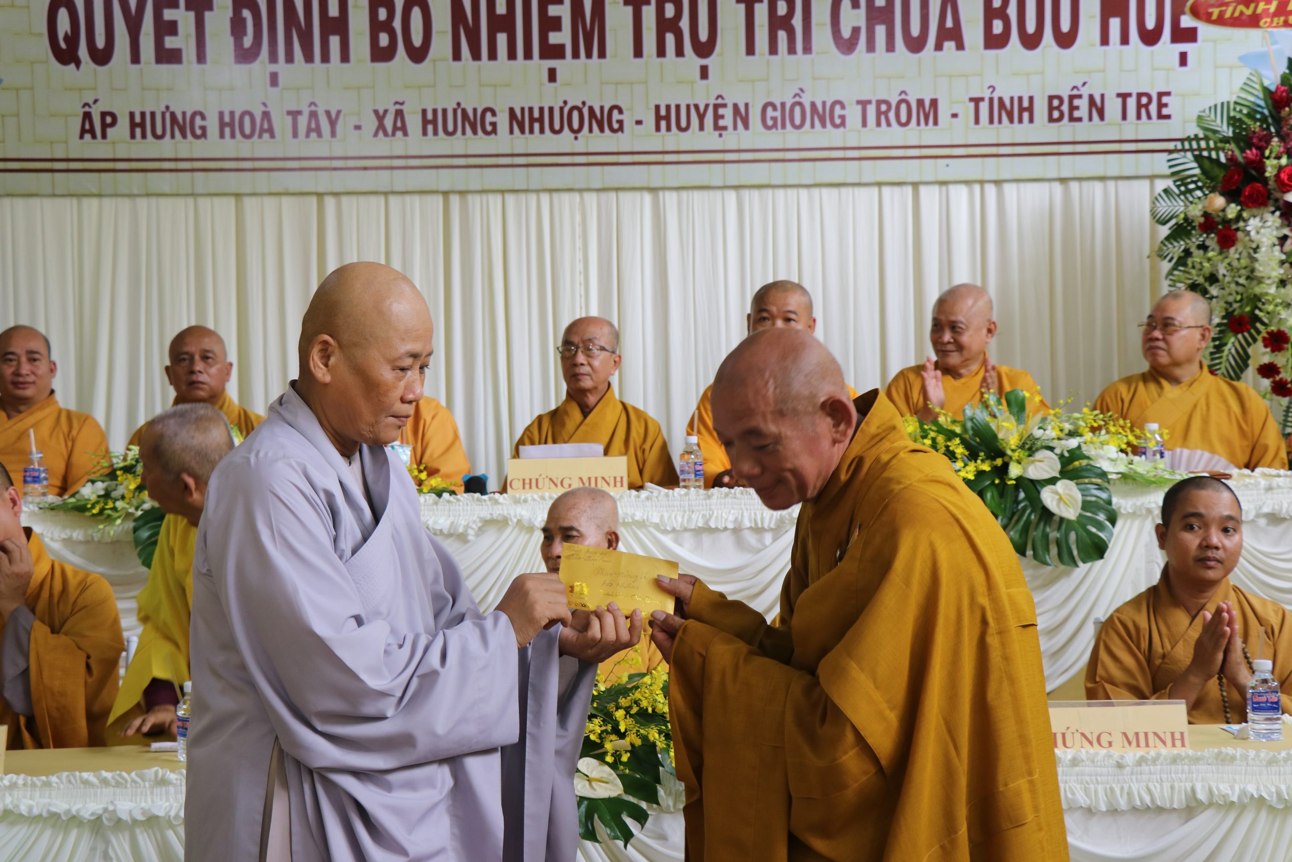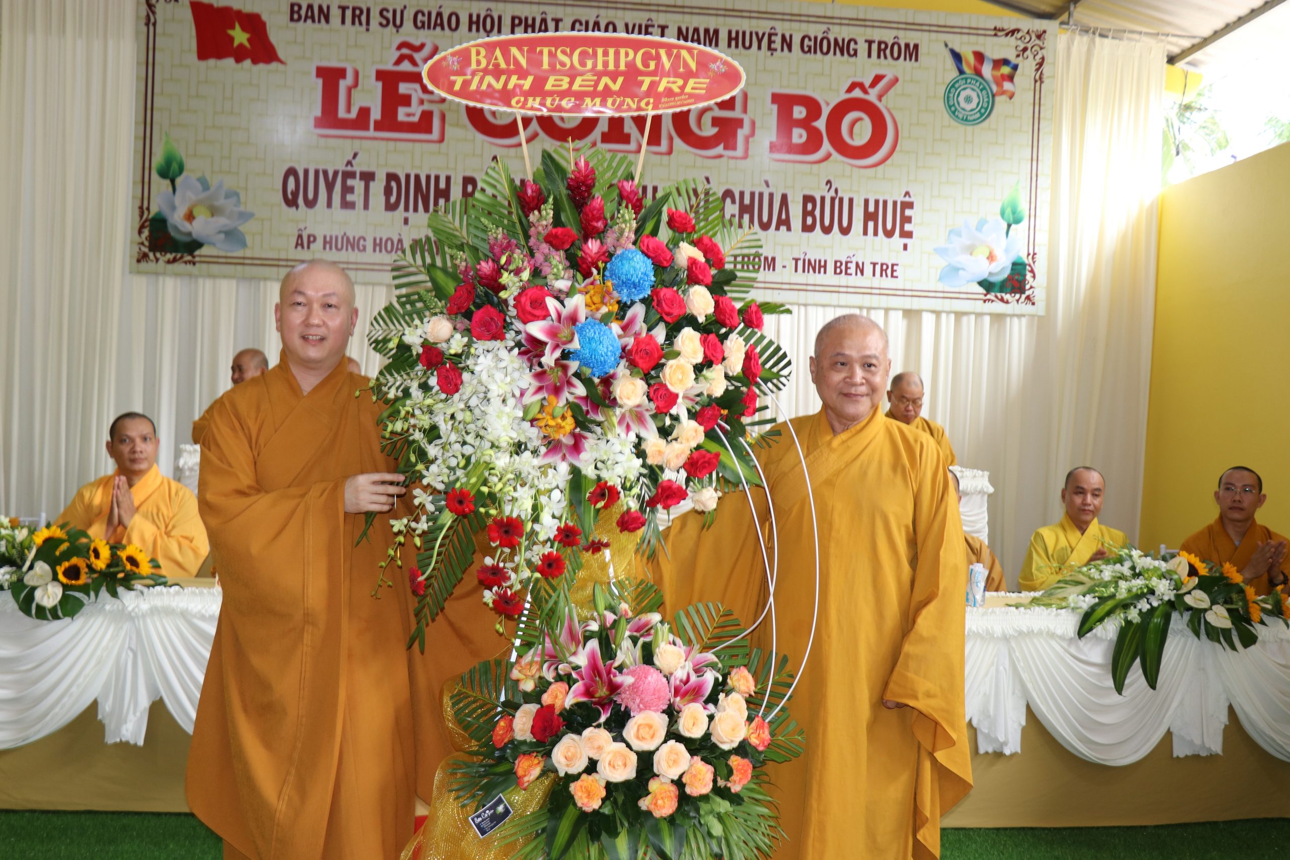 Tại buổi lễ, ĐĐ.Thích Thích Trí Thuận tuyên đọc Quyết định số 31/QĐ-BTS, ngày 07 tháng 04 năm 2023 của Ban Trị sự GHPGVN tỉnh Bến Tre bổ nhiệm ĐĐ.Thích Tĩnh Viên đảm nhiệm trụ trì chùa Bửu Huệ, xã Hưng Nhượng, huyện Giồng Trôm, tỉnh Bến Tre.