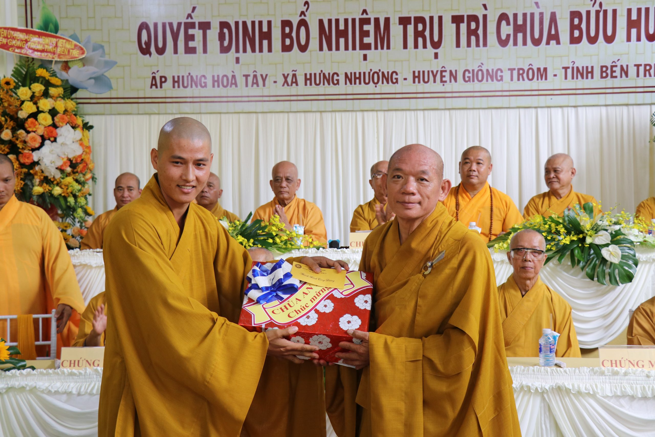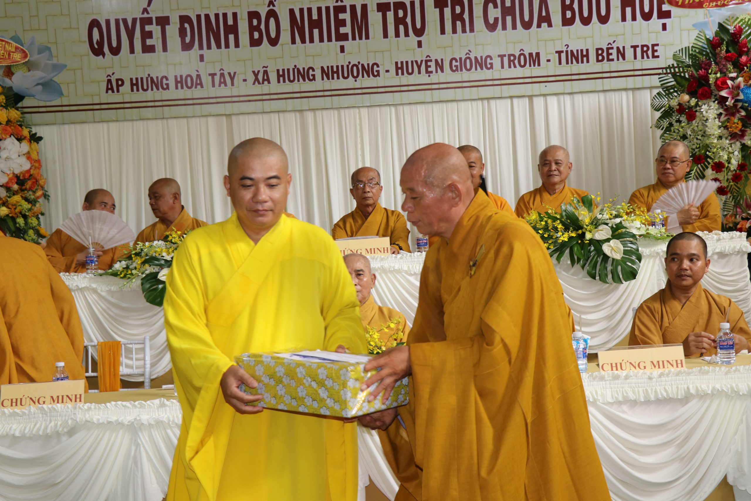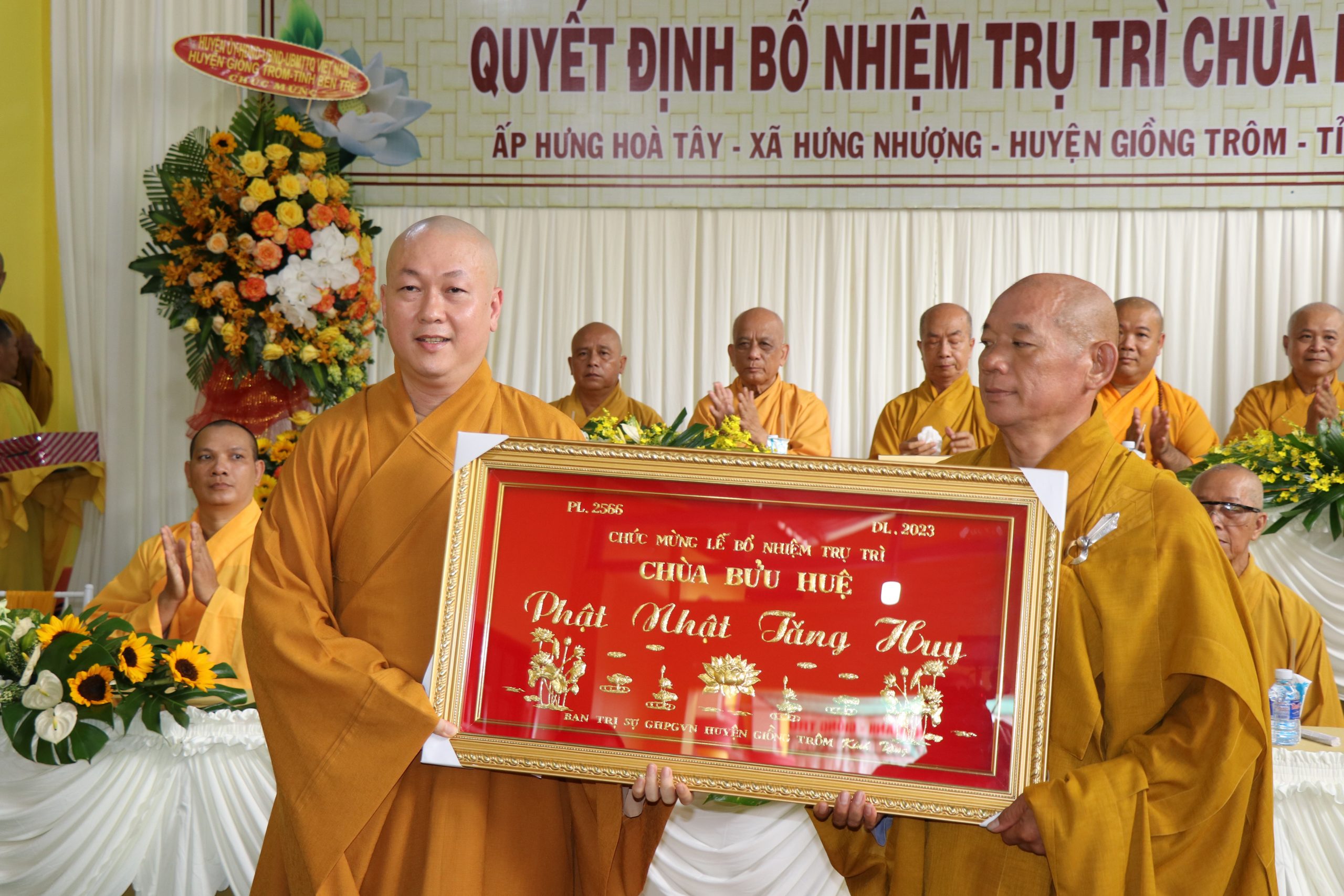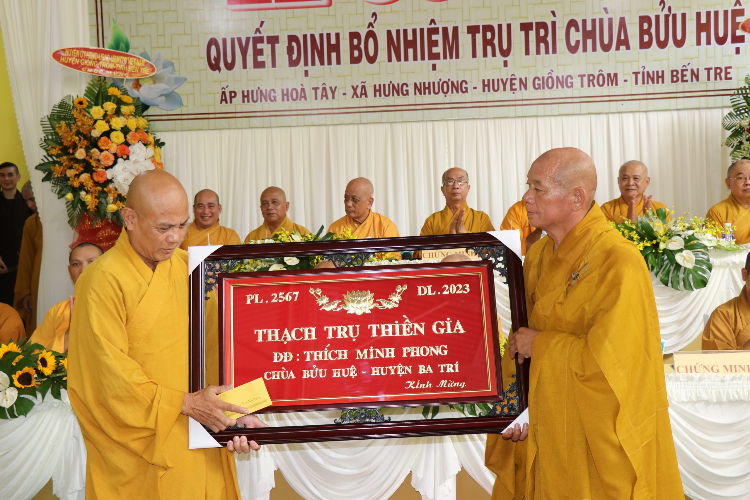 Tại buổi lễ, ĐĐ.Thích Thích Trí Thuận tuyên đọc Quyết định số 31/QĐ-BTS, ngày 07 tháng 04 năm 2023 của Ban Trị sự GHPGVN tỉnh Bến Tre bổ nhiệm ĐĐ.Thích Tĩnh Viên đảm nhiệm trụ trì chùa Bửu Huệ, xã Hưng Nhượng, huyện Giồng Trôm, tỉnh Bến Tre.