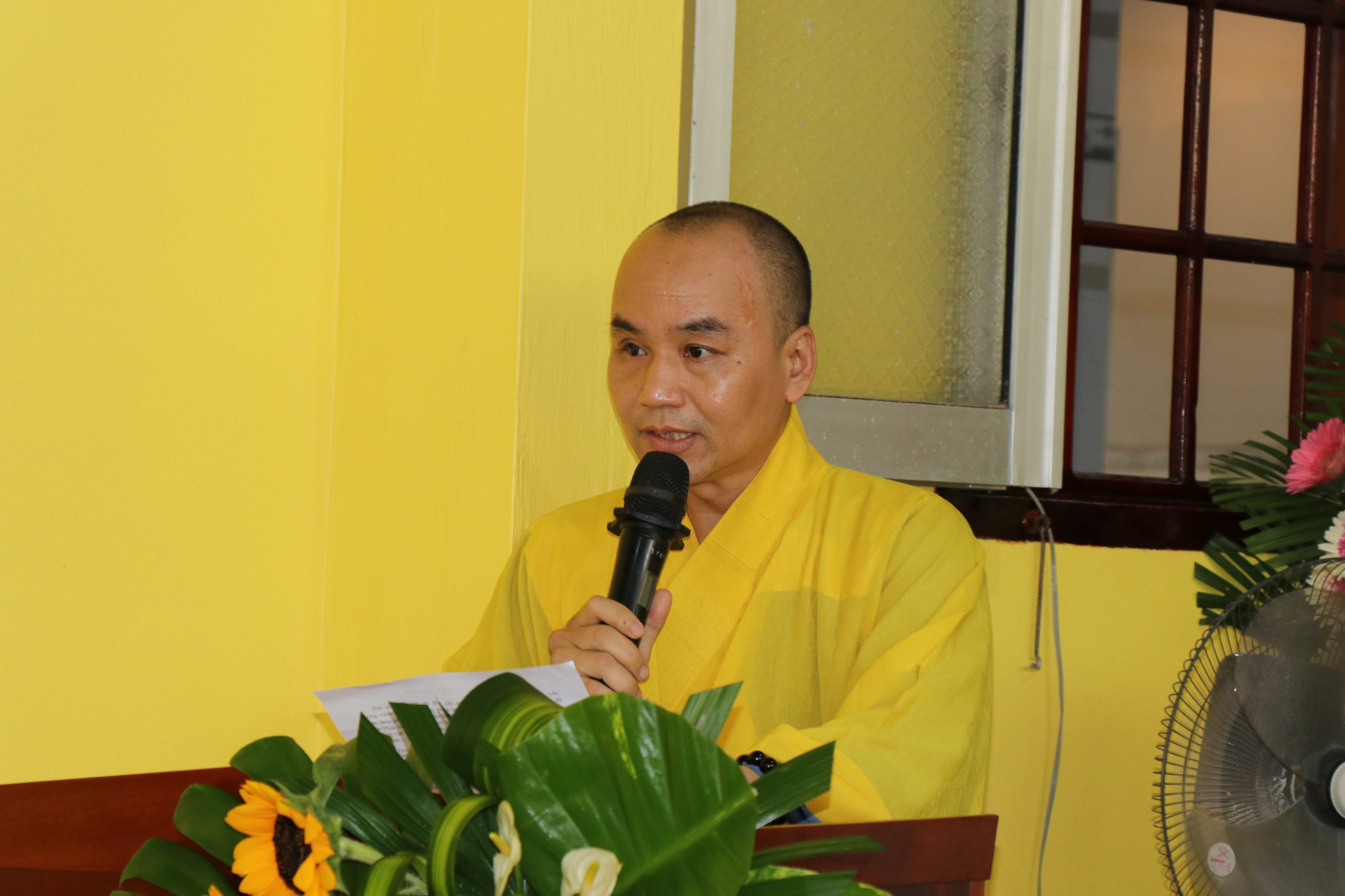 Thay mặt ban tổ chức, TT.Thích Huệ Định – Trưởng BTS GHPGVN huyện Giồng Trôm tuyên đọc diễn văn khai mạc buổi lễ.