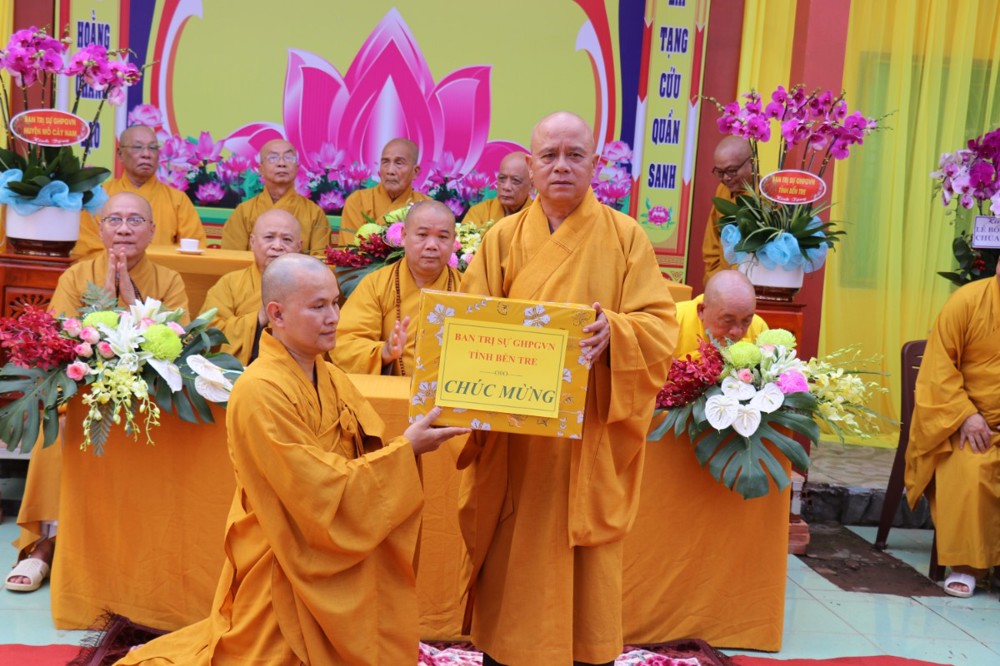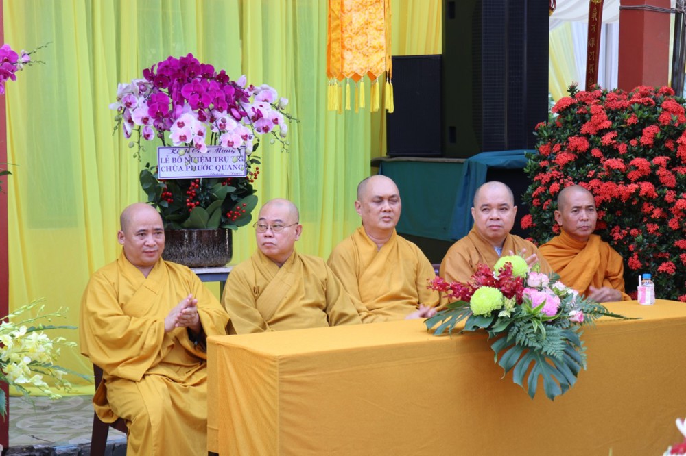 Quang lâm chứng minh buổi lễ có HT. Thích Lệ Linh, HT. Thích Lệ Đức đồng Thành viên HĐCM, Chứng minh BTS GHPGVN tỉnh Bến Tre; HT. Thích Nhựt Tấn, Ủy viên Thường trực HĐTS, Trưởng BTS GHPGVN tỉnh; TT. Thích Trí Thọ, Ủy viên HĐTS, Phó Ban Thường trực BTS GHPGVN tỉnh; TT. Thích Huệ Đức, Phó BTS kiêm Trưởng Ban Kiểm soát GHPGVN tỉnh; TT. Thích Thanh Mẫn, Phó BTS tỉnh, Trưởng Ban Nghi lễ GHPGVN tỉnh; ĐĐ. Thích Trí Thuận, Phó Ban kiêm Chánh Thư ký BTS GHPGVN tỉnh; ĐĐ. Thích Đạt Ma Chí Thục, Ủy viên BTS, Quyền Trưởng BTS GHPGVN huyện Mỏ Cày Nam; TT. Thích Thiện Hạnh, Ủy viên Thường trực BTS tỉnh, Phó BTS GHPGVN huyện; NT. Thích Nữ Như Đán, Phó BTS, Trưởng Phân ban Ni giới tỉnh; NS. Thích Nữ Như Nguyệt, Phó Thư ký, Trưởng Ban Kinh tế Tài chính GHPGVN tỉnh; NS. Thích Nữ Như Uyên, Phó Thường trực Phân ban Ni giới tỉnh, cùng chư Tôn đức Tăng Ni trụ trì các tự viện và đông đảo Phật tử về tham dự.