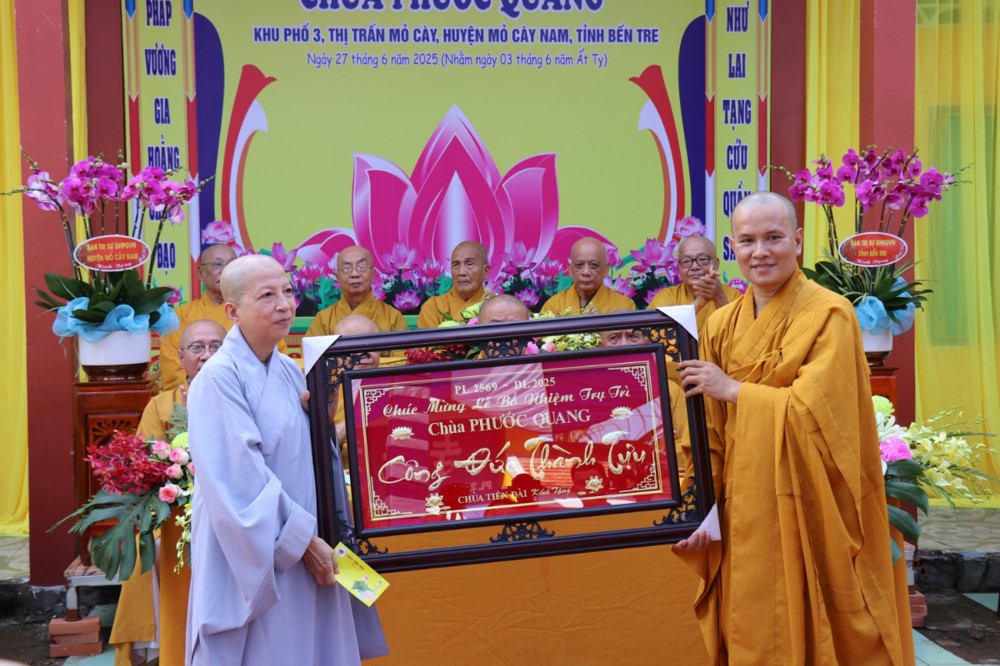 PSO – Sáng ngày 27/6/2025, Ban Trị sự GHPGVN huyện Mỏ Cày Nam đã long trọng tổ chức lễ trao Quyết định bổ nhiệm trụ trì chùa Phước Quang, thị trấn Mỏ Cày, huyện Mỏ Cày Nam, tỉnh Bến Tre.