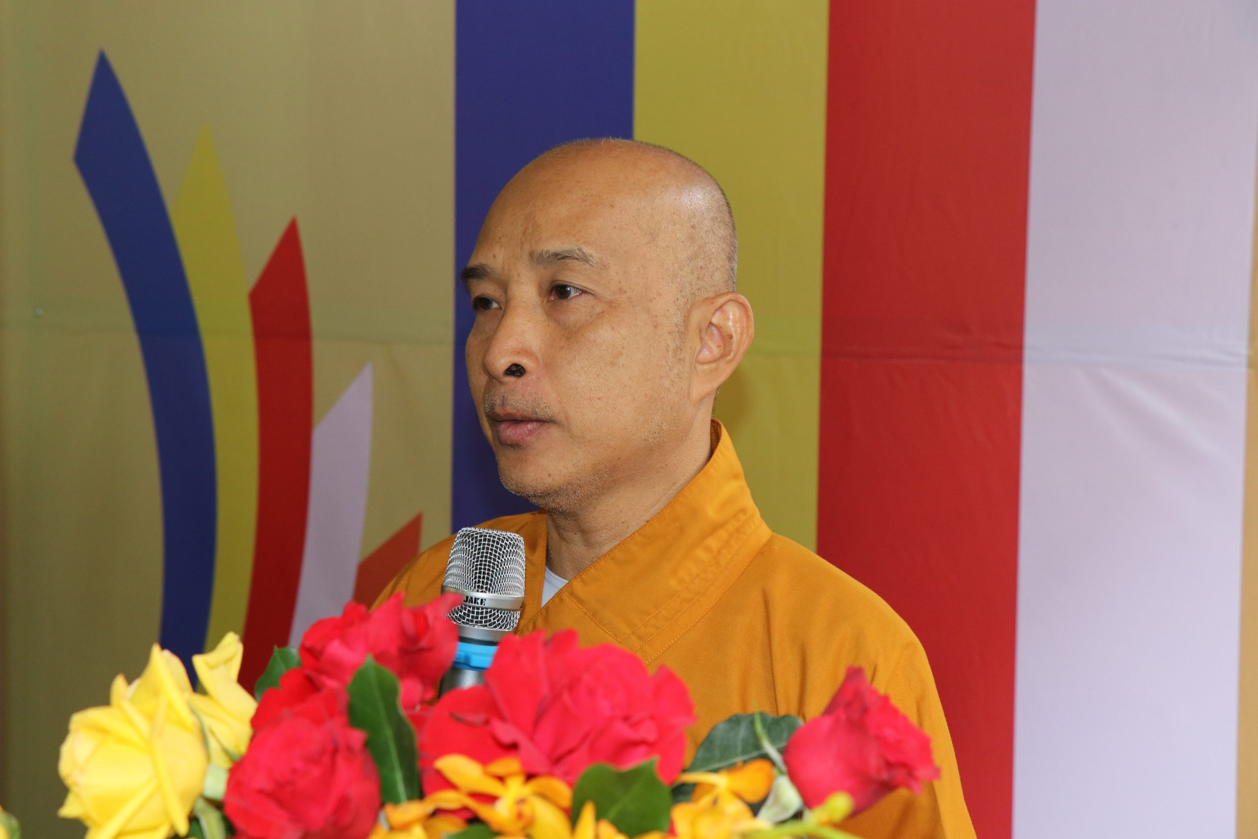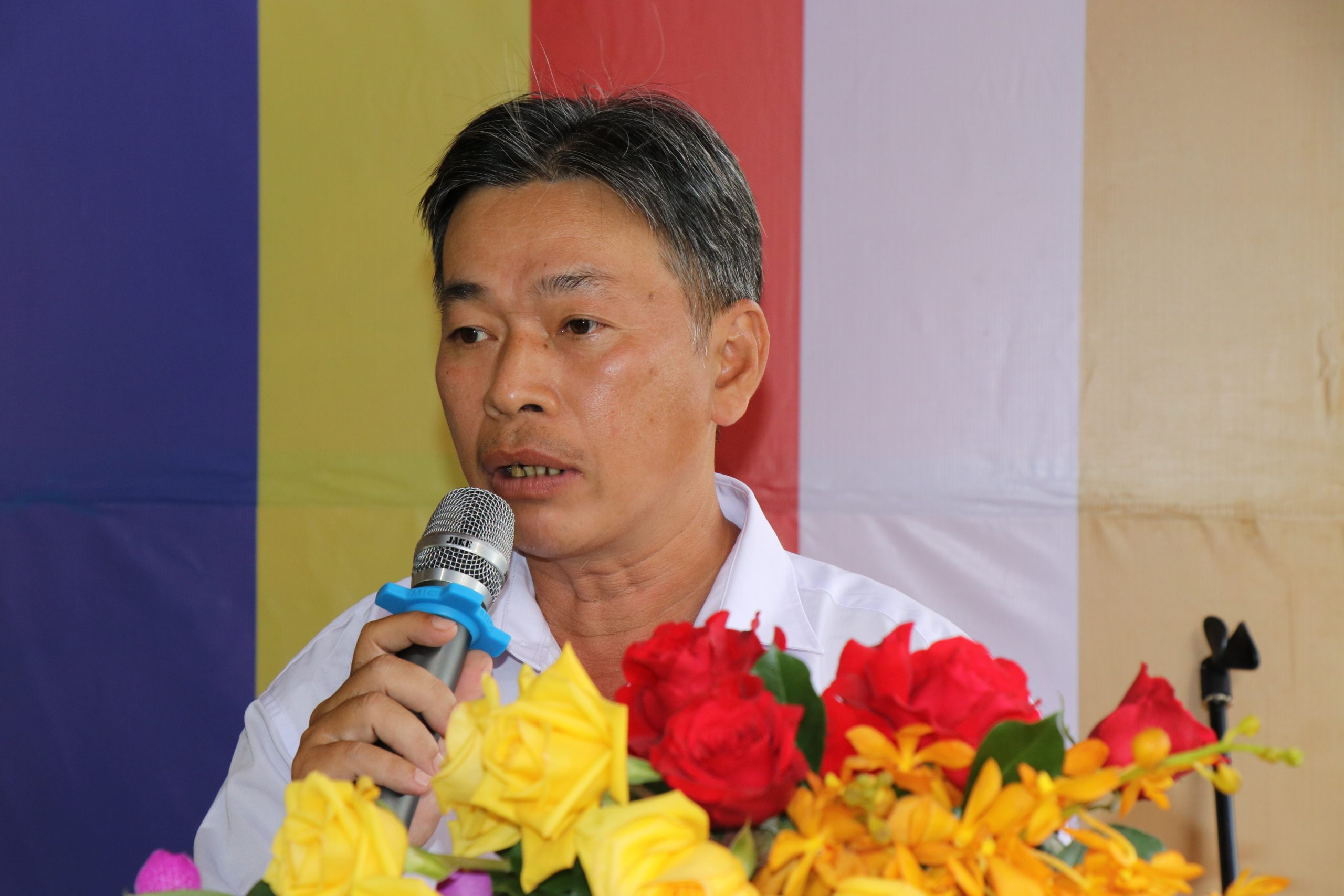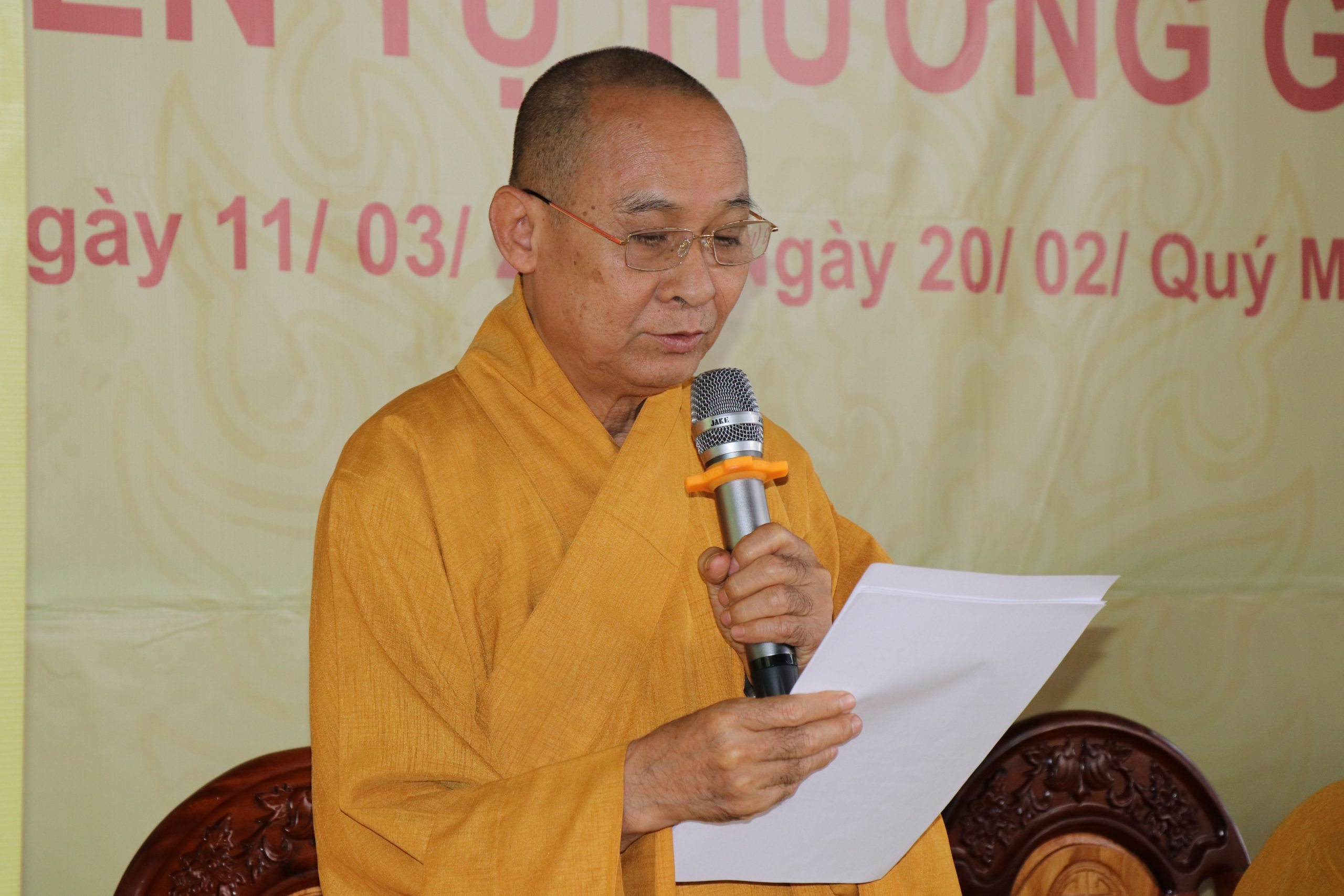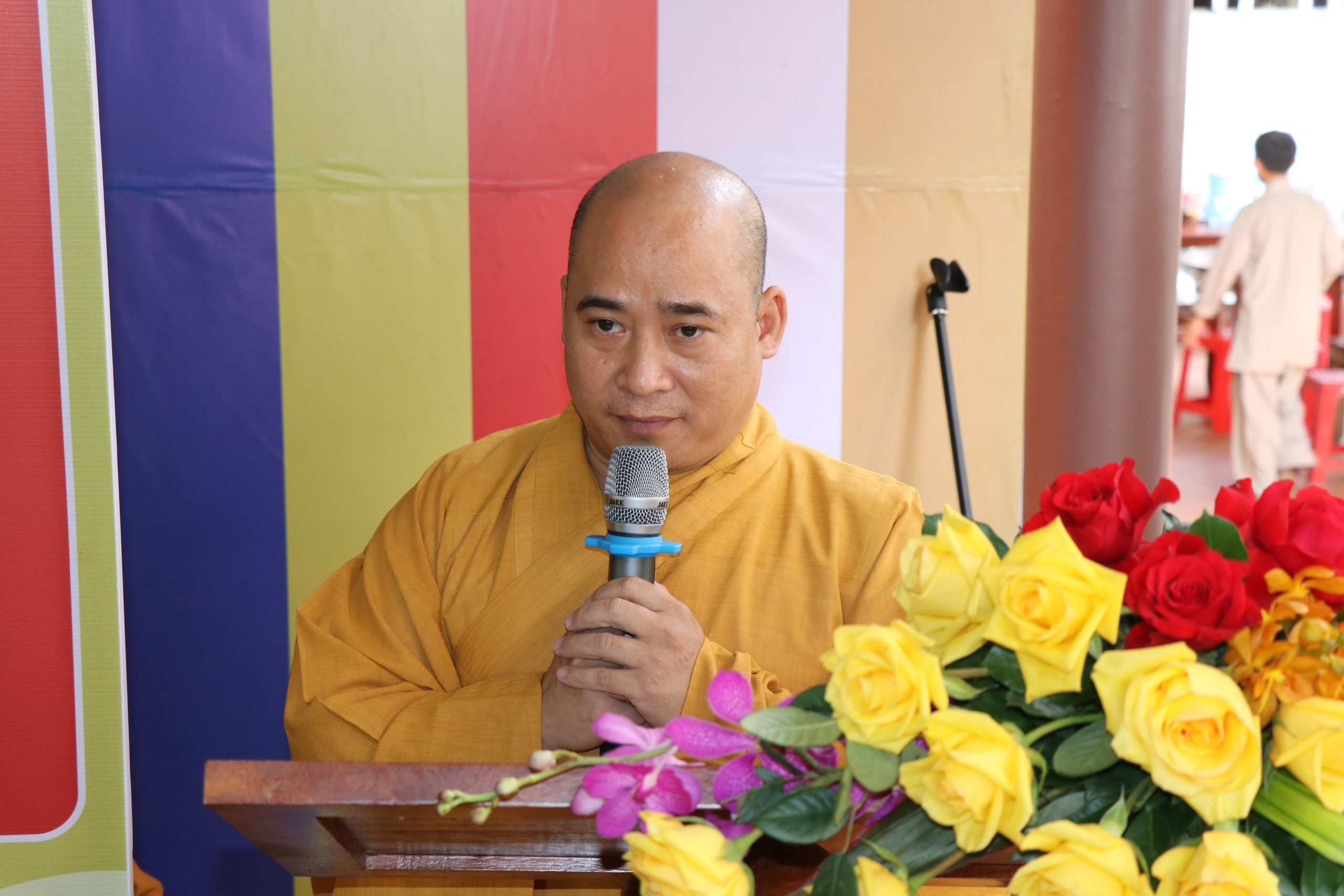 Thay mặt ban tổ chức, TT.Thích Xương Tâm – Trưởng BTS GHPGVN huyện Mỏ Cày Nam tuyên đọc diễn văn khai mạc buổi lễ.