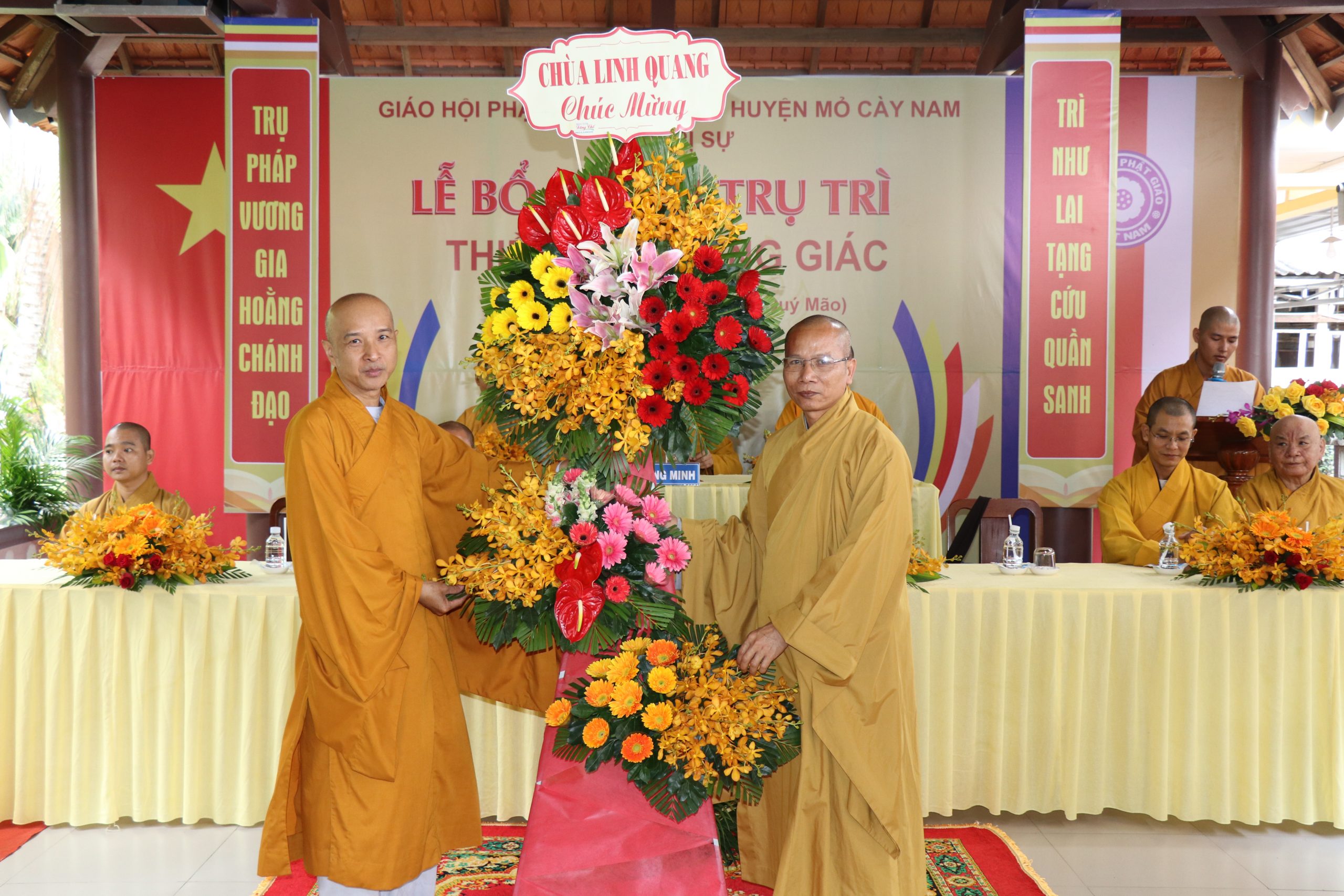 Trong niềm hân hoan, Đại đức tân Trụ trì đón nhận hoa và quà từ chư Tôn giáo phẩm Tăng Ni, Lãnh đạo Chính quyền các cấp và Phật tử chúc mừng trong ngày trọng đại.