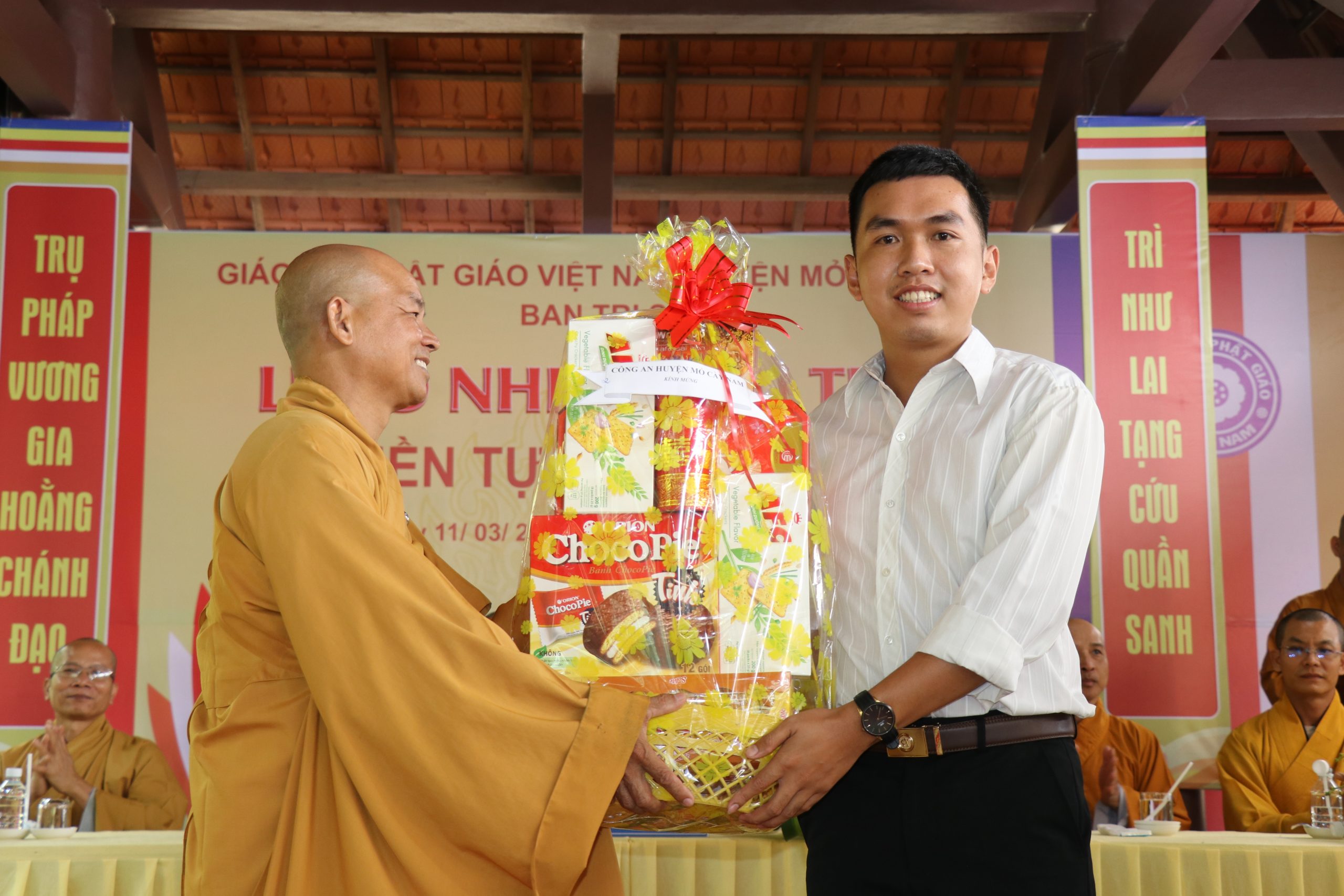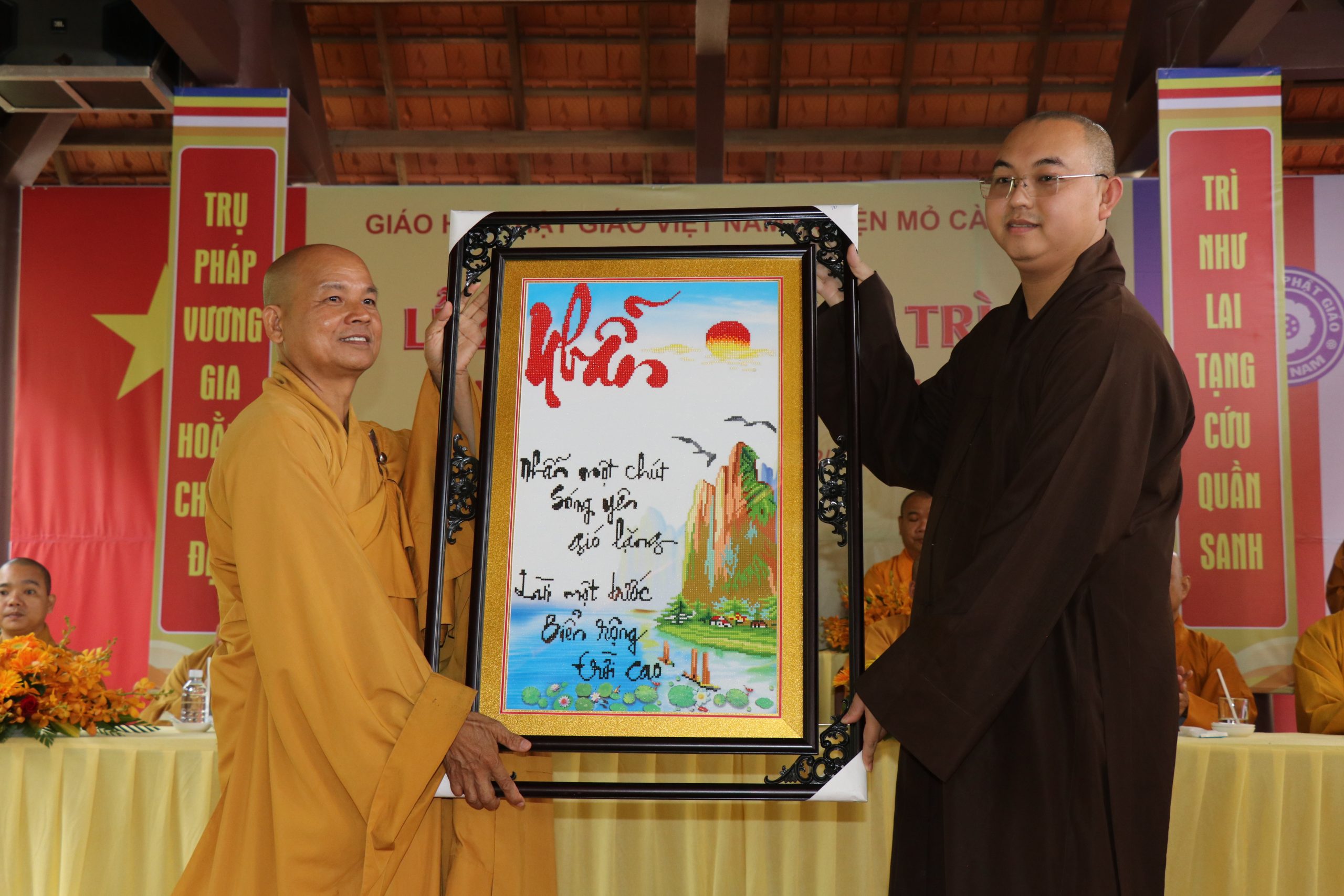 Buổi lễ khép lại với lời cảm tạ tri ân của TT.Thích Thiện Hạnh – Phó BTS GHPGVN huyện Mỏ Cày Nam gửi đến chư Tôn giáo phẩm, các cấp lãnh đạo Chính quyền, ban ngành đoàn thể, Phật tử đến chúc mừng đã tạo duyên lành cho buổi lễ được thành công viên mãn.