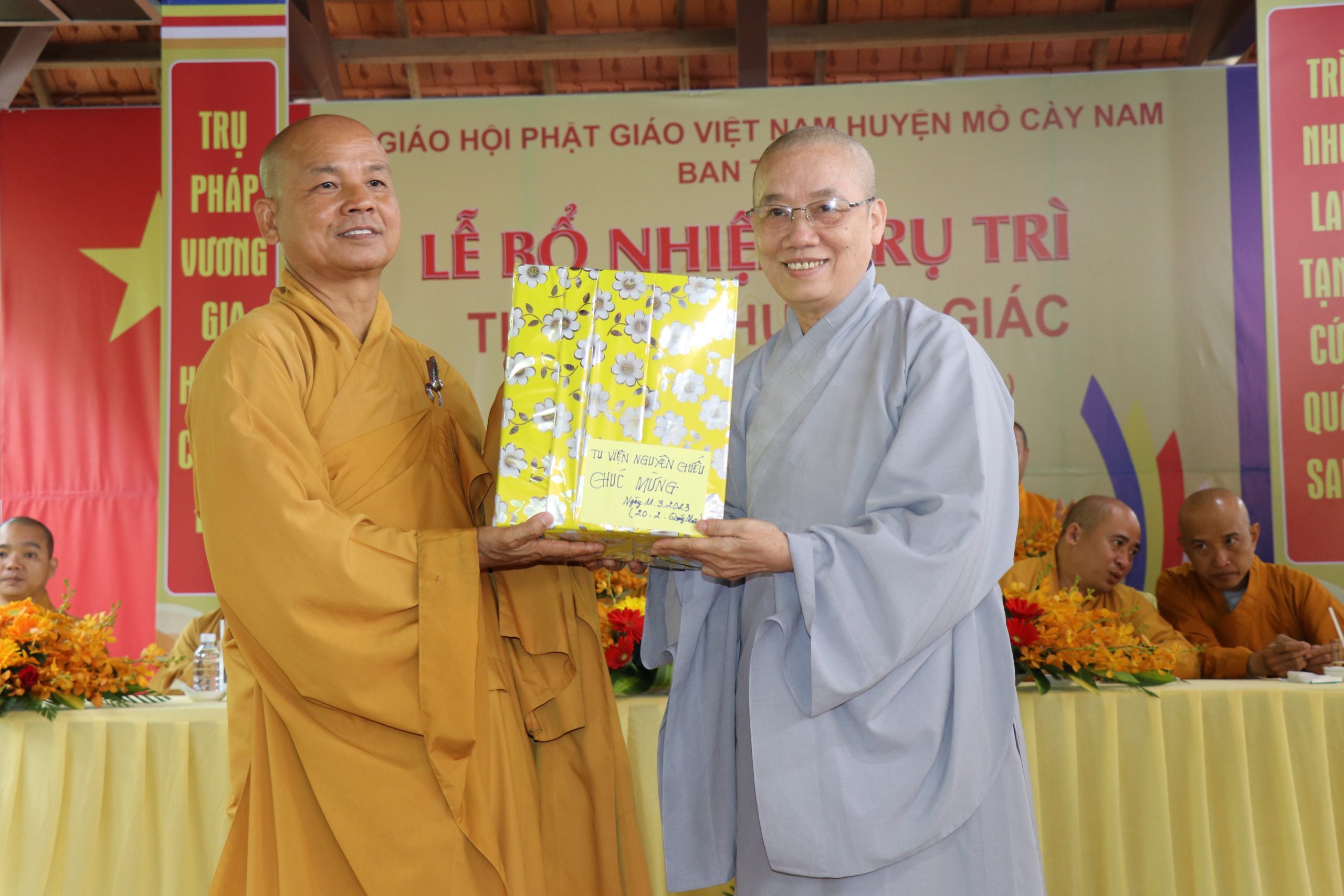 Đồng thời, TT.Thích Trí Thọ trao giấy Quyết định bổ nhiệm Trụ trì và TT.Thích Xương Tâm đã trao con dấu thiền tự Hương Giác cho Đại đức tân trụ trì Thích Đạt Ma Quang Lưu lưu giữ.