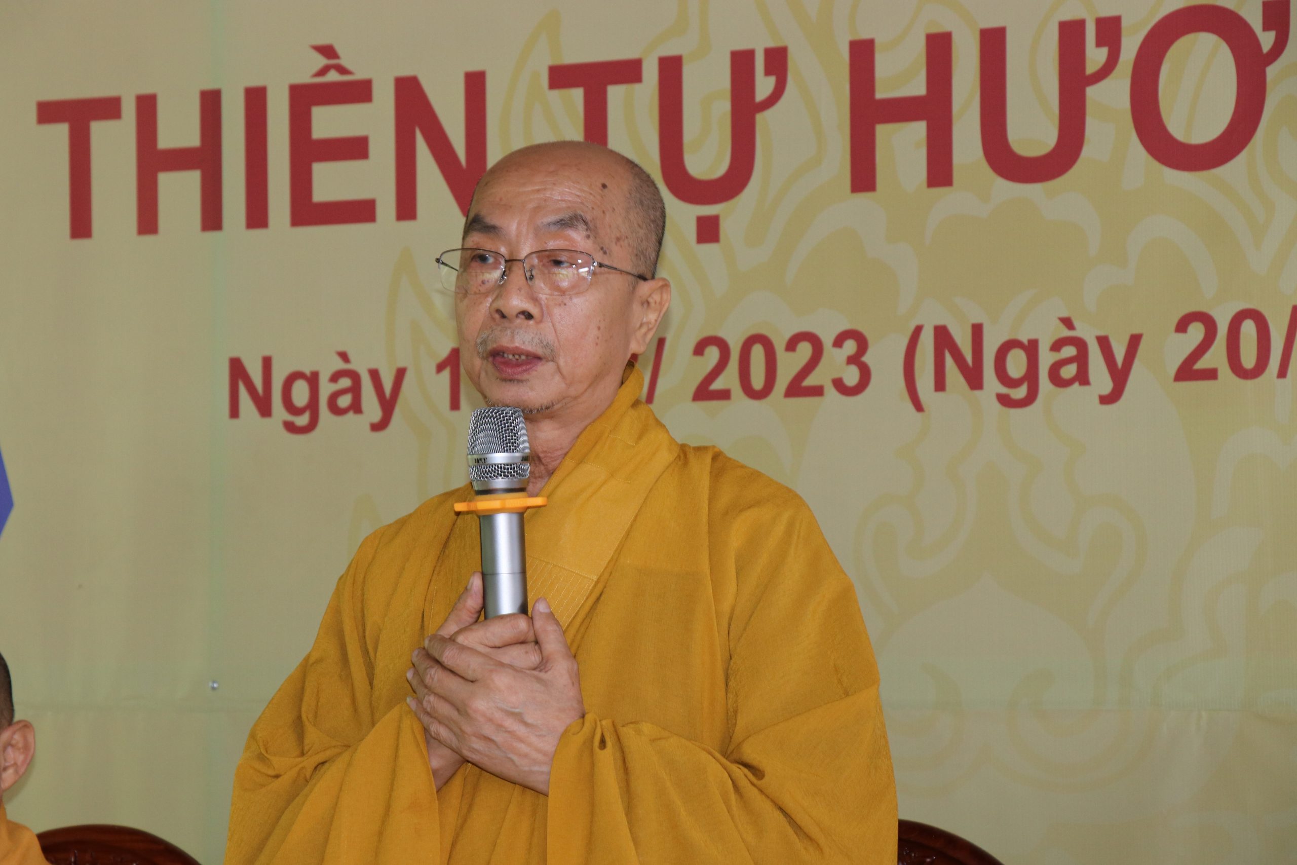 Thay mặt ban Chứng minh, HT.Thích Nhựt Tấn có đôi lời ban đạo từ đến với Đại đức tân Trụ trì “Hòa thượng có lời tán thán công đức Đại đức Tân trụ trì đã công đức chăm sóc ngôi Tam bảo ngày được khang trang hơn. Trên cương vị trách nhiệm của Trụ trì, nỗ lực phụng sự Tam Bảo, Phải biết tri ân, báo ân Thầy tổ bằng cách thừa hành Phật sự tốt giáo hội giao phó, quản lý Tam bảo ngày càng phát triển “Hoằng Pháp vi gia vụ, lợi sanh vi bổn hoài” là trách nhiệm của người trụ trì. Đối với tự thân phải giữ gìn Giới, Định, Tuệ để phát triển tự thân, làm tròn nhiệm vụ, trách nhiệm đối với Đạo pháp và dân tộc. Đó chính là tinh thần nhập thế của Đạo Phật, là trọng trách “Trụ pháp vương gia, trì Như Lai tạng” của vị trụ trì.”