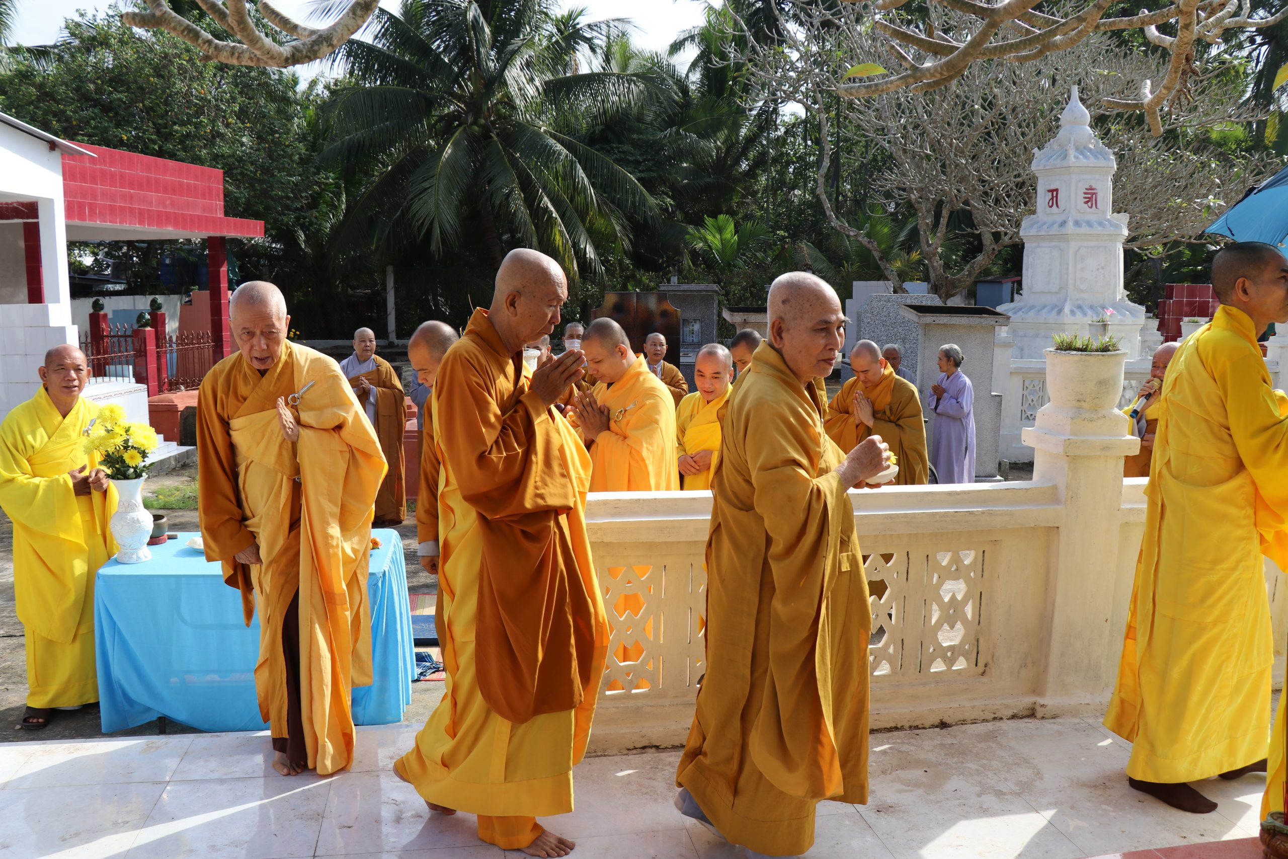 Tiếp đến TT.Thích Lệ Thiện thay mặt môn đồ pháp quyến cung kính bái thỉnh chư Tôn đức quang lâm Bảo tháp tiến hành lễ nhiễu tháp ba vòng trong không khí trang nghiêm thanh tịnh, thể hiện tính chất thiêng liêng và tinh thần tri ân, báo ân của Chư Tôn Đức đối với chư tôn thiền đức đã dày công vun đắp cho mái già-lam Huệ Quang.