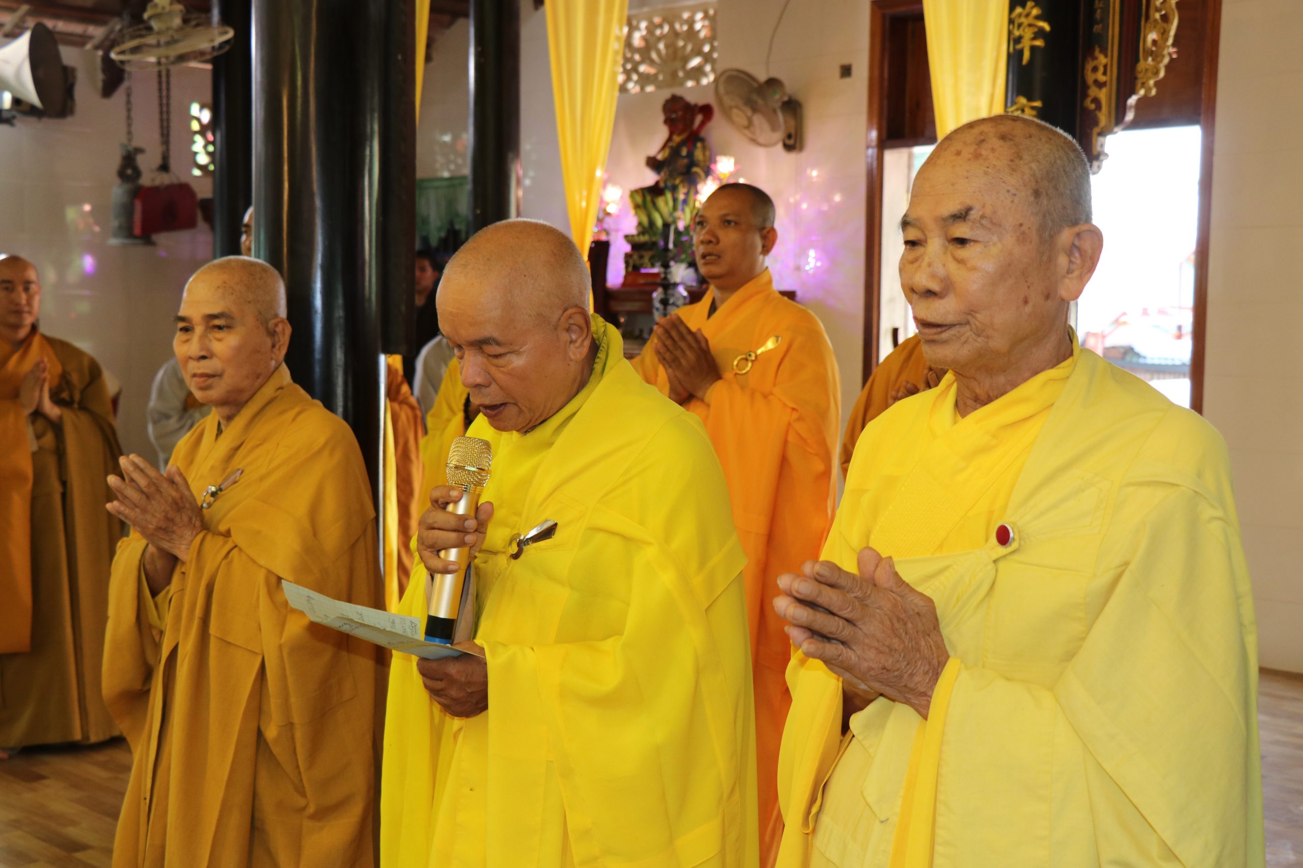 Tiếp đến chư Tôn thiền đức Tăng Ni quang lâm đại hùng bửu điện phúng tụng một thời cúng ngọ dưới sự chủ lễ của HT.Thích Nhuận Thiền, HT.Thích Trí Thông - chứng minh BTS PG huyện Châu Thành, TT,Thích Thiện Chiêu - Chứng minh BTS PG huyện Giồng Trôm.
