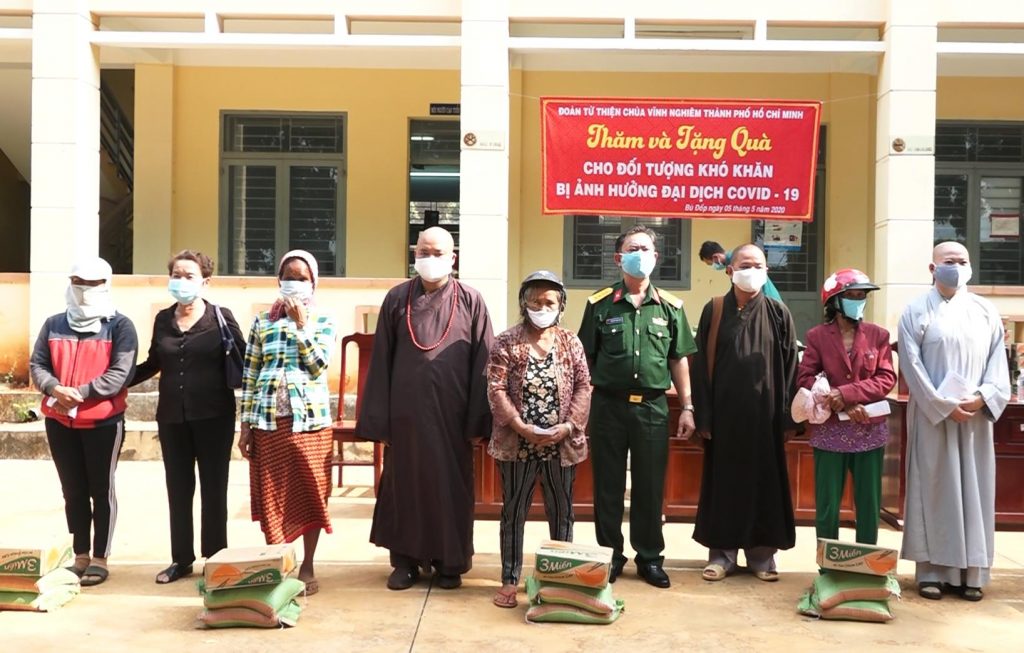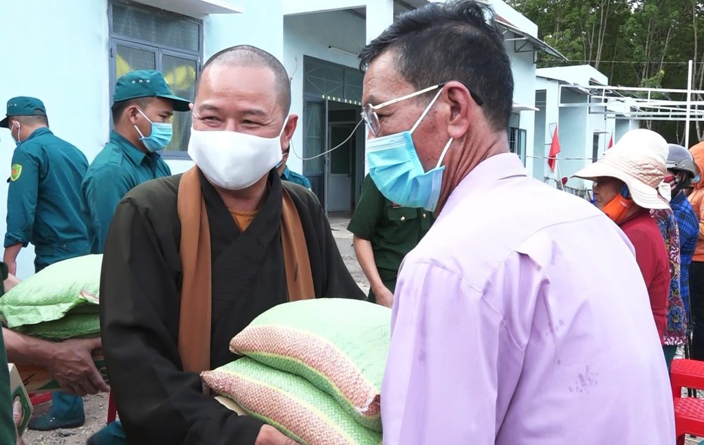 Thời gian qua, thực hiện ý kiến chỉ đạo Thường trực Huyện ủy về việc tiếp nhận và tổ chức thăm, tặng quà cho bà con vùng biên giới gặp khó khăn do ảnh hưởng của đại dịch Covid-19 trên địa bàn huyện Bù Đốp, Bộ chỉ huy Quân sự tỉnh Bình Phước kết nối với TT. Thích Thanh Phong, vận động các tổ chức, cá nhân đóng góp, ủng hộ bà con khó khăn bị ảnh hưởng dịch bệnh Covid-19. Đặc biệt với tình cảm, sự quan tâm sâu sắc của GHPGVN và Ban Từ thiện xã hội GHPGVN TP.HCM.