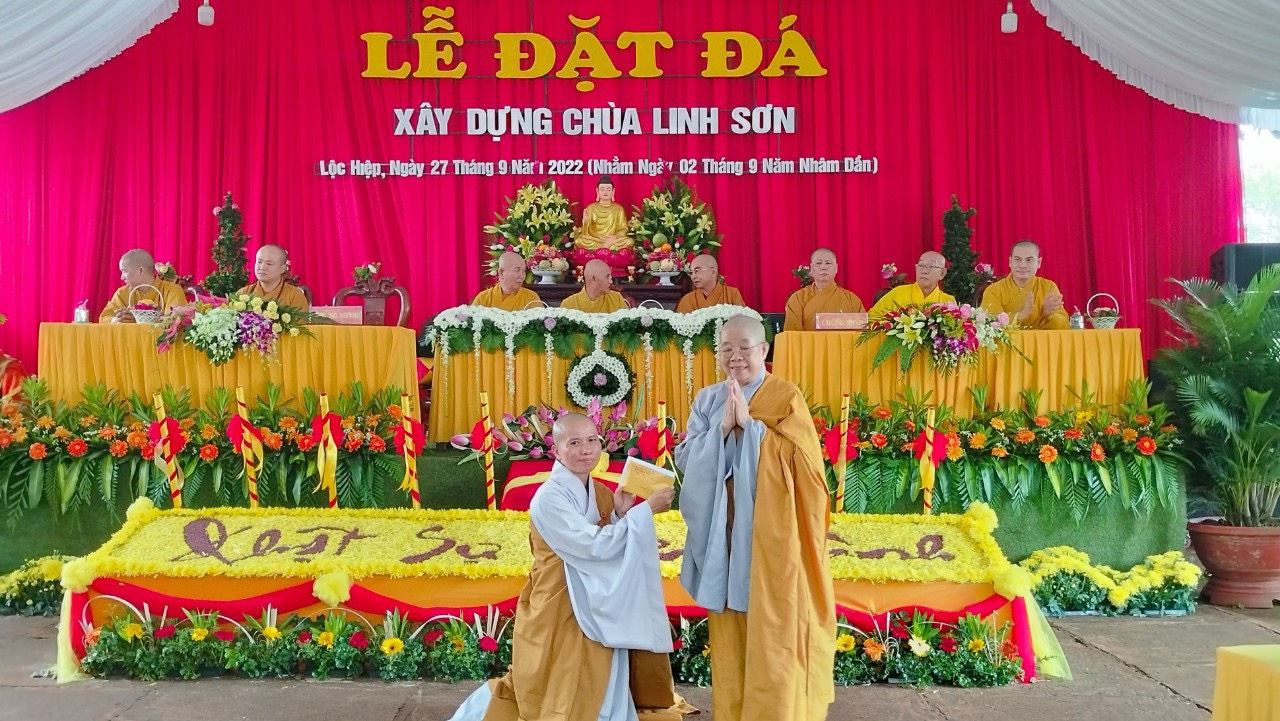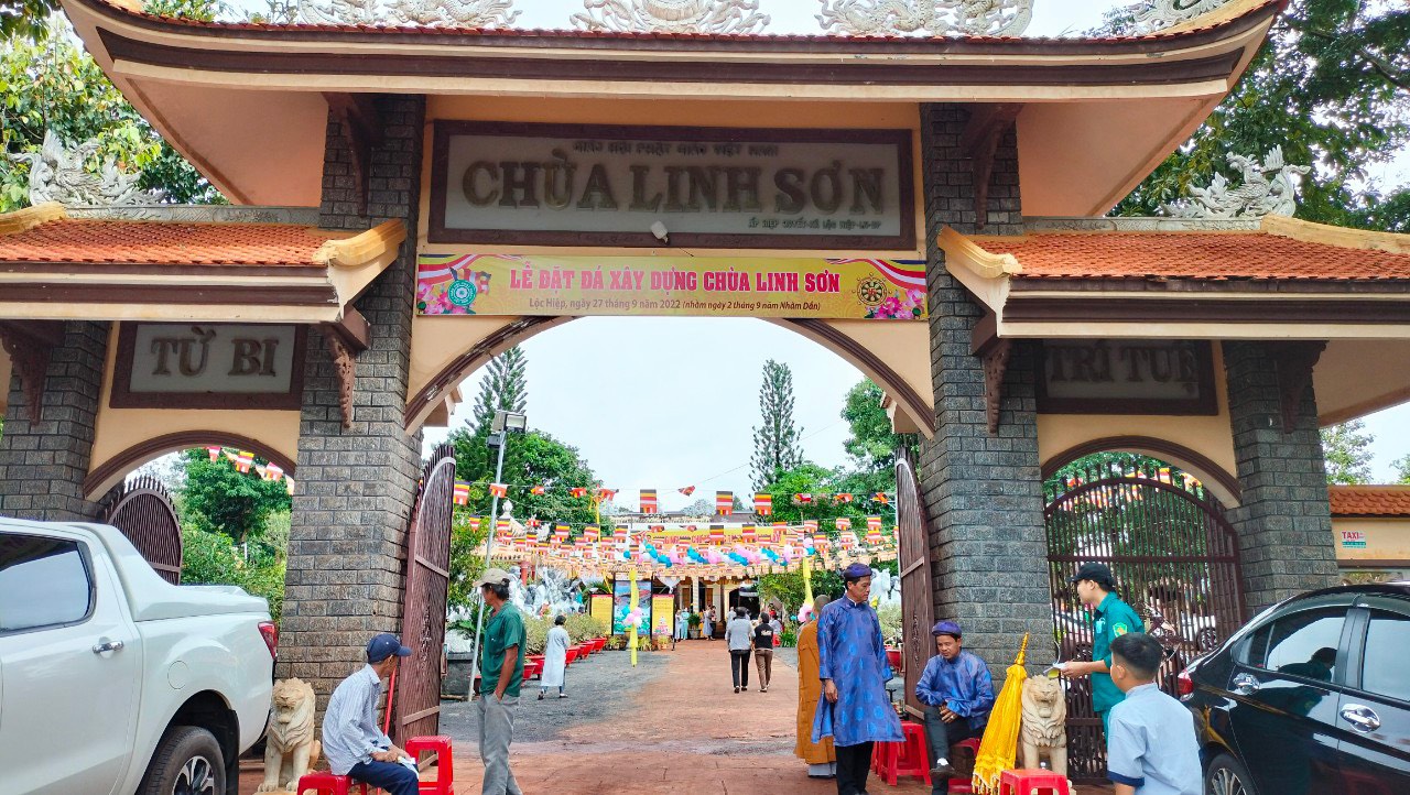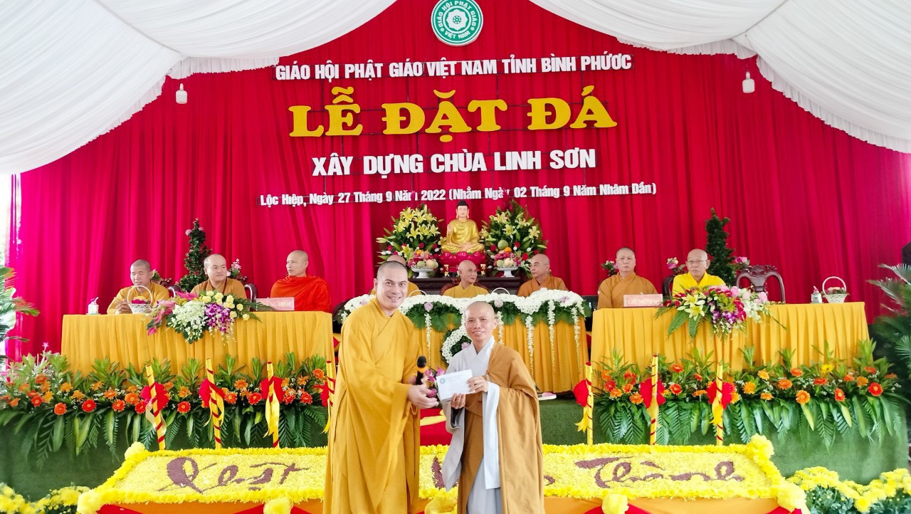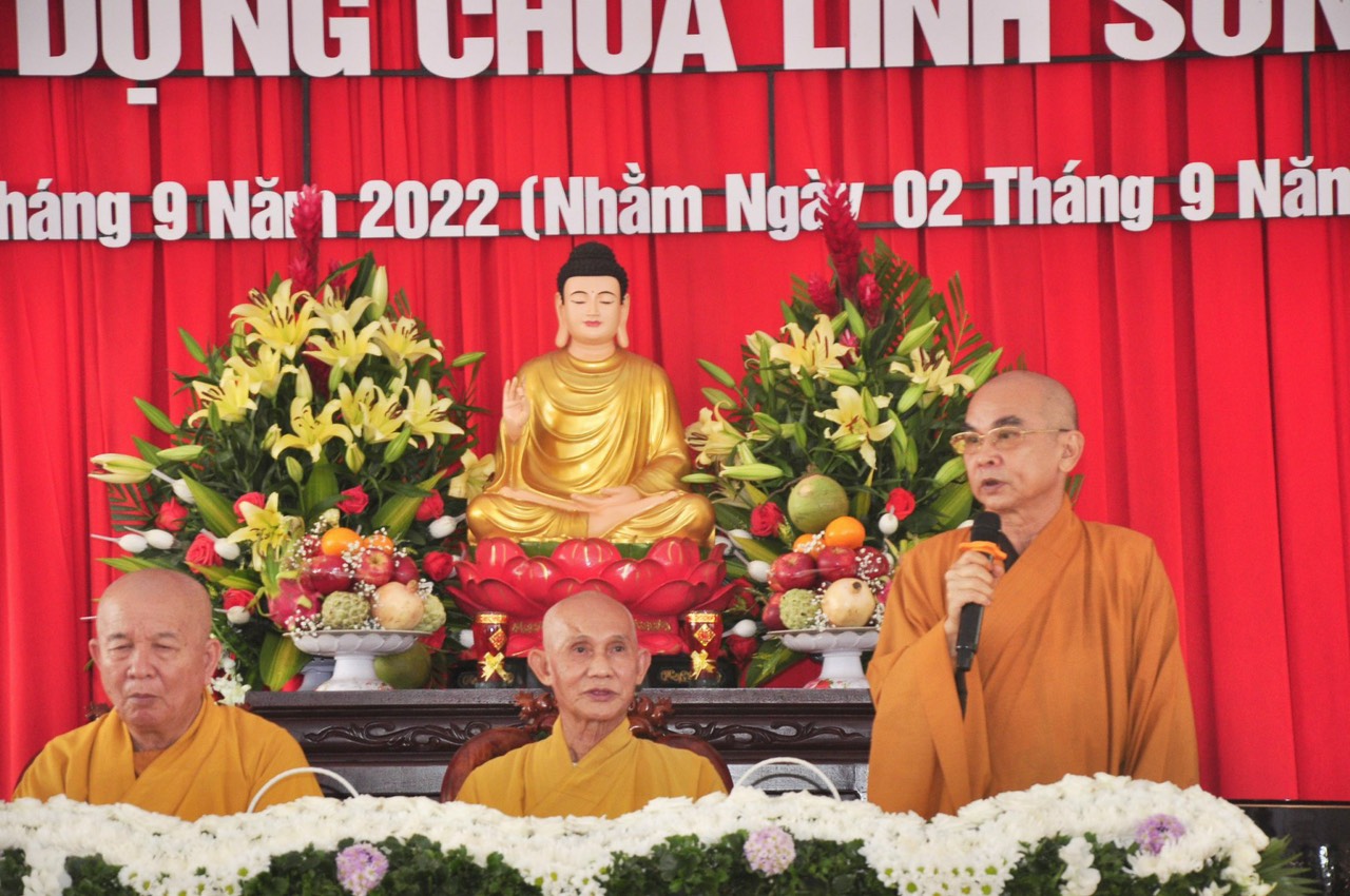 Phát biểu tại buổi lễ, Huyện ủy viên, Phó Chủ tịch UBMTTQ VN huyện Lộc Ninh ông Nguyễn Văn Bảo cho rằng: Phật giáo Việt Nam luôn đồng hành cùng dân tộc. Hôm nay tại chùa Linh Sơn được đặt viên đá xây dựng lại ngôi chùa mới, đây không chỉ là niềm vui riêng của Phật tử và còn là niềm vui chung các cấp chính quyền và người dân trong huyện. Ông cũng mong muốn, các mạnh thường quân, nhà hảo tâm, phật tử bốn phương và người dân địa phương tiếp tục hỗ trợ, tạo điều kiện để ngôi Chánh Điện sớm hoàn thành và đưa vào sử dụng, tạo điều kiện cho chùa Linh Sơn tổ chức các hoạt động tôn giáo, tín ngưỡng.