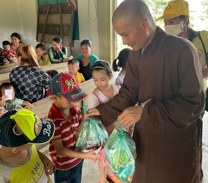 Tham dự buổi lễ phát quà SC. Thích Nữ Đức Tâm, trụ trì chùa cùng lãnh đạo xã Đồng Nai, quý Phật tử của 2 chùa, quý phụ huynh và 300 cháu học sinh về tham dự.