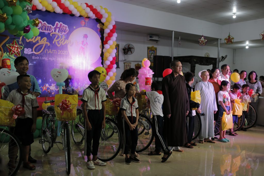 PSO - Chiều ngày 28/9/2020 (nhằm ngày 12/8 năm Canh Tý), chùa Tân Minh (phường Phú Thịch, thị xã Bình Long, tỉnh Bình Phước), đã tổ chức “Đêm Hội Trăng Rằm” và tặng 400 phần quà cho các em nhỏ tại địa phương.