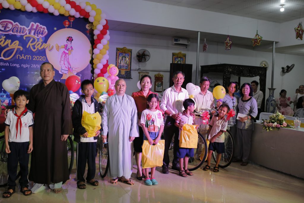 Về tham dự chung vui và tặng những phần quà yêu thương cho các em nhỏ có TT. Thích Chơn Lý - Phó ban Trị sự kiêm Trưởng ban Hoằng pháp GHPGVN tỉnh Bình Phước, Trưởng BTS Phật giáo thị xã Bình Long; Ni sư Thích nữ Như Hiền - Phó BTS kiêm Thủ quỹ GHPGVN tỉnh, Trưởng ban Tổ chức “Đêm Hội Trăng Rằm”. Và lãnh đạo chính quyền có bà Hoàng Thị Hồng Vân- Phó bí Thư thị Uỷ, Chủ tịch Ủy ban Nhân dân thị xã Bình Long, cùng các ban ngành hữu quan đồng tham dự.