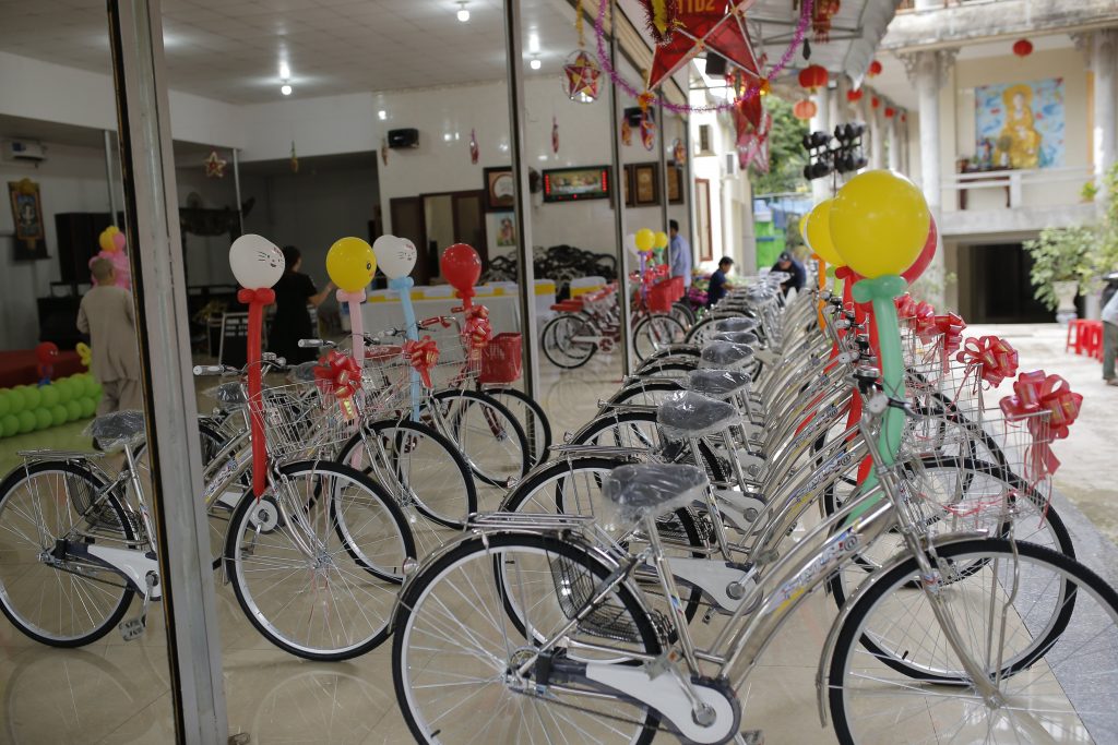 Nhân dịp này, gia đình anh Đặng Thanh Tòng ủng hộ 20 chiếc xe đạp cho trẻ em nghèo hiếu học, mỗi chiếc trị giá 1.300.000 đồng.