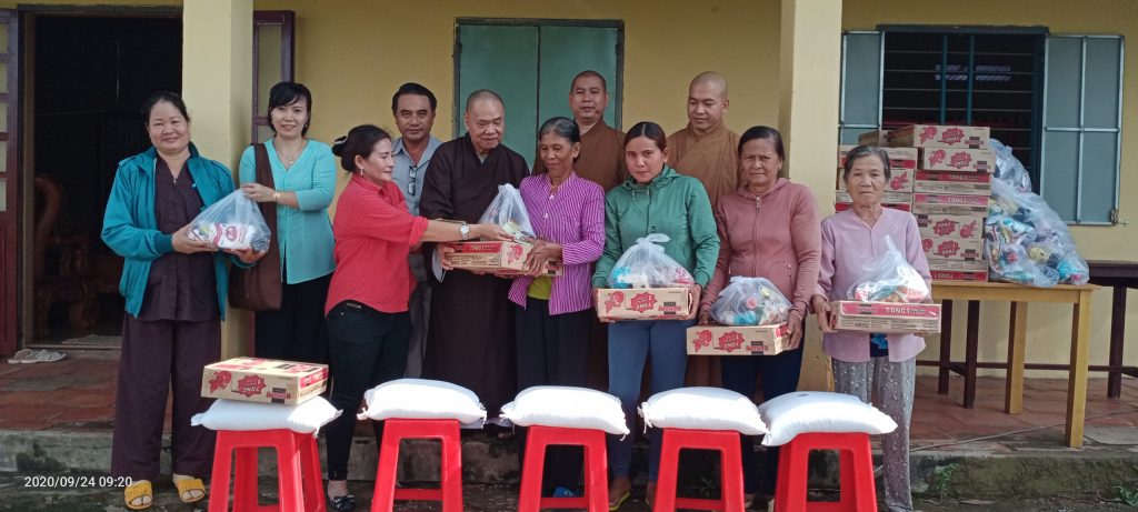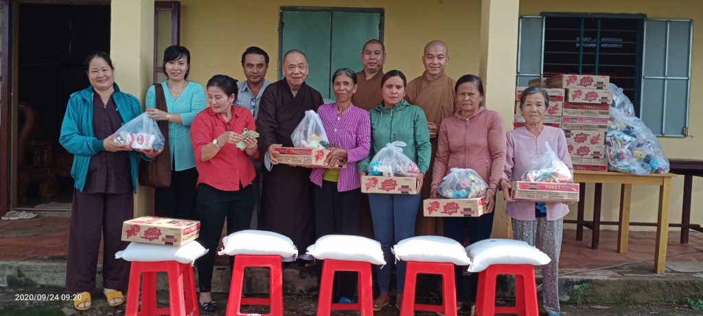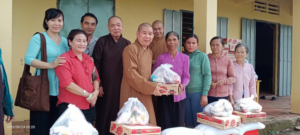Để buổi lễ được thập phần viên mãn, Ban Trị sự PG tỉnh đã trao tặng 30 phần quà cho bà con có hoàn cảnh khó khăn, chịu ảnh hưởng bởi dịch bệnh Covid-19 trên địa bàn phường Tân Thiện.