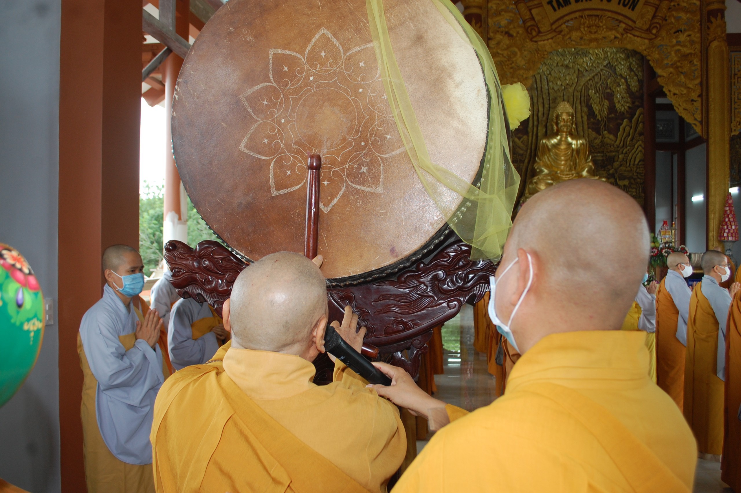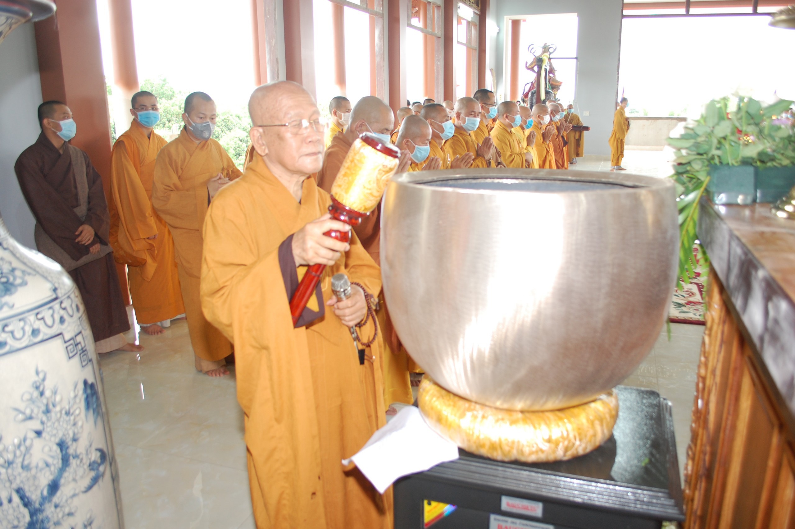 Sau phần niêm hương, bạch Phật, HT. Thích Như Niệm cùng chư Tôn đức chứng minh đã thực hiện nghi thức sái tịnh tôn tượng Đức Bổn Sư Thích Ca Mâu Ni. Tượng cao 4,71m (tính cả đài sen) được dát vàng toàn kim thân. Trong giây phút chư Tăng Ni toàn tỉnh tề tựu, HT. Thích Thiện Pháp cử hành lễ khai chuông bảng và HT. Thích Minh Thông làm lễ kiết giới tràng cho khuôn viên chùa Tỉnh Hội, chuẩn bị mùa An cư Kiết hạ PL.2565.