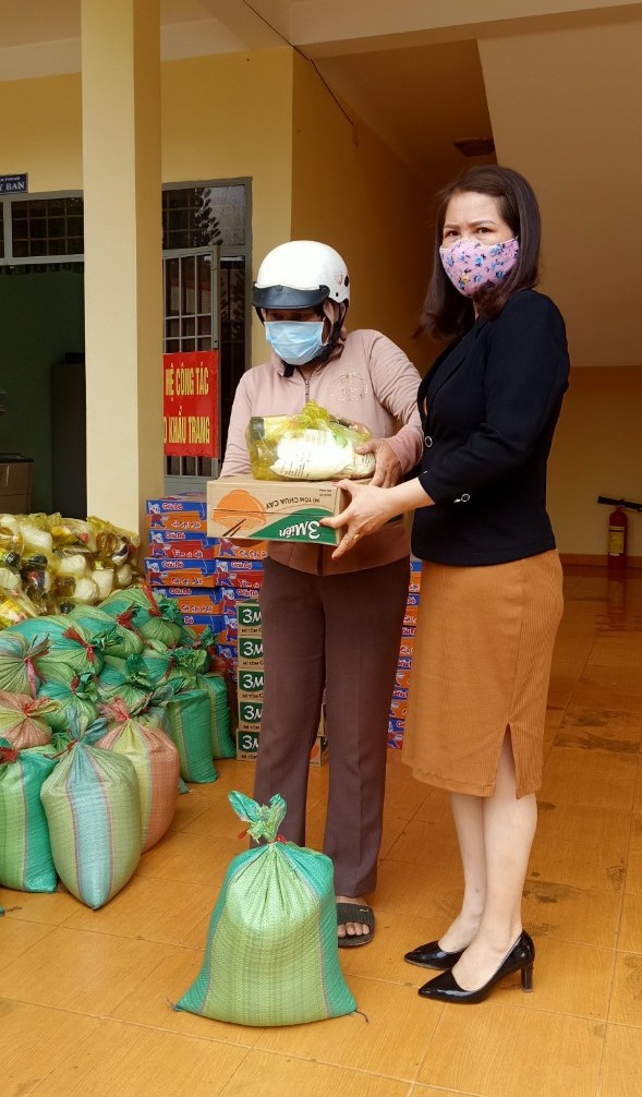 Đoàn từ thiện đã trao tặng 40 phần quà, bao gồm: Gạo, mì gói, nước tương, bột ngọt… trị giá 350 ngàn đồng/phần.