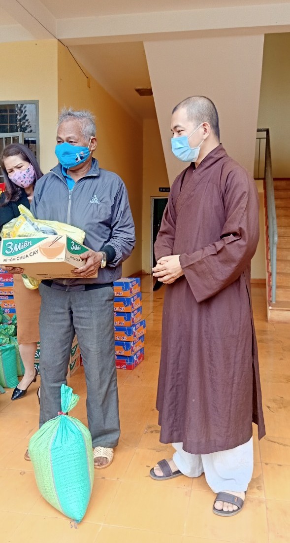 Đại đức Thích Tâm Đăng tặng quà cho hộ nghèo tại xã Đồng Tiến