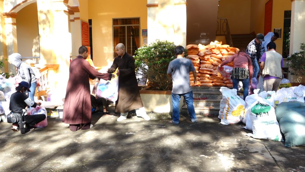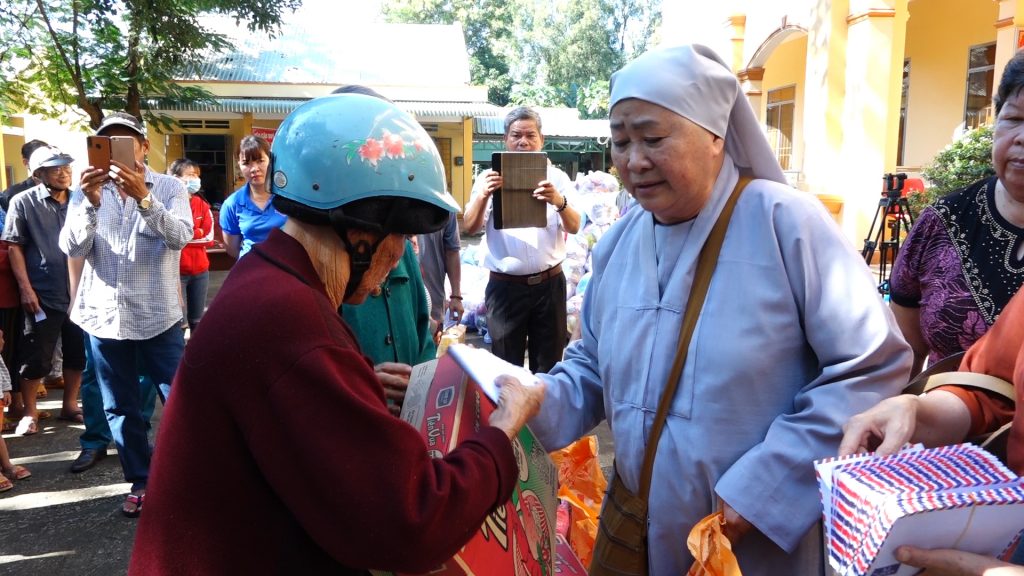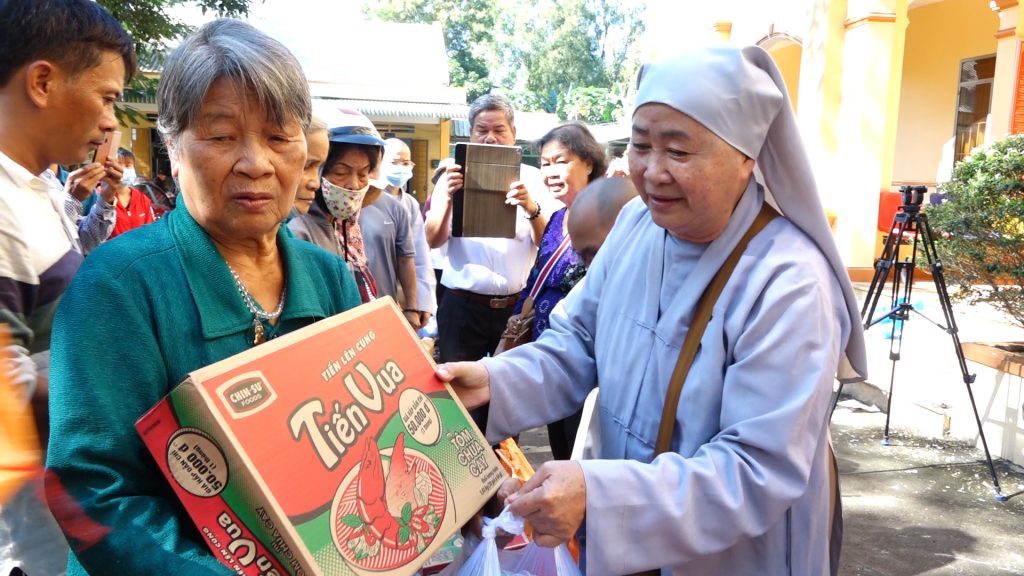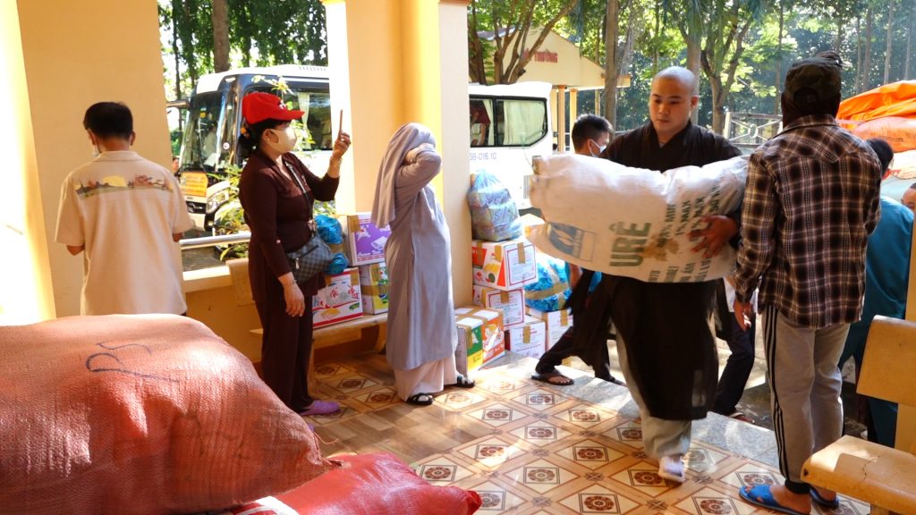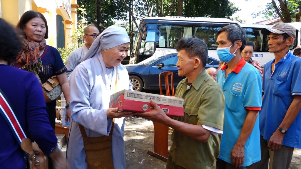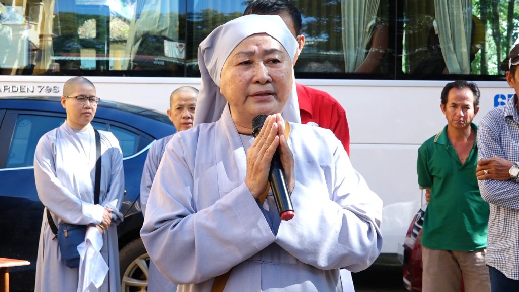 Tại buổi trao quà, NS. Thích Nữ Từ Tâm gửi lời thăm hỏi, động viên đồng bào nơi đây. Ni sư chúc bà con được nhiều sức khỏe, vượt qua khó khăn hiện tại và xây dựng cuộc sống ổn định, an vui.