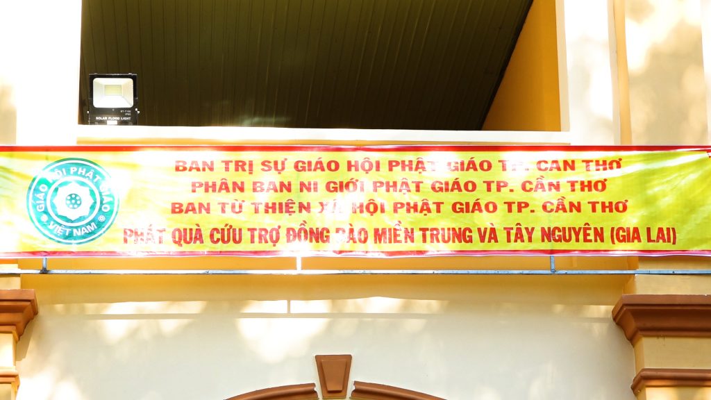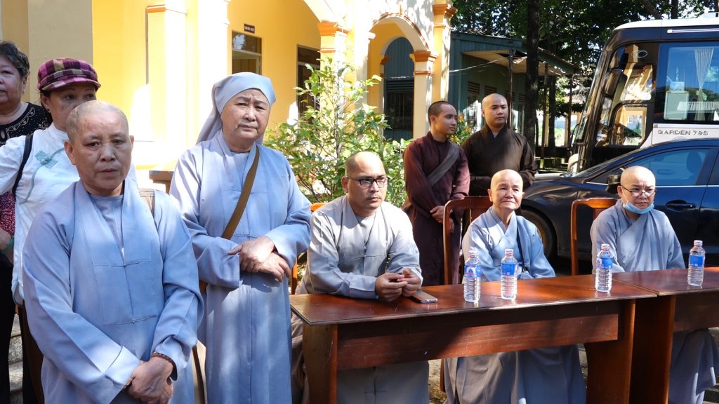 Đoàn từ thiện có NT.Thích Nữ Diệu Ngộ - Phó BTS, Trưởng Phân ban Ni giới Phật giáo TP. Cần Thơ; NS.Thích Nữ Từ Tâm - Phó trưởng Ban từ thiện xã hội Phật giáo thành phố; chư Tăng Ni và quý Phật tử trong đoàn.