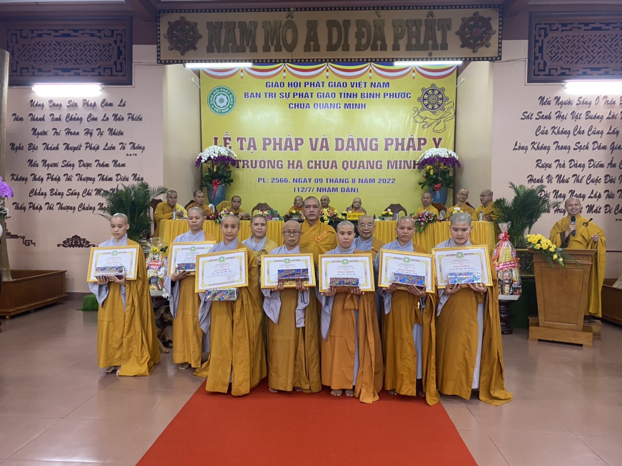 Về chứng minh có chư Tôn đức TT.Thích Tỉnh Cường, Ủy viên HĐTS, Phó trưởng ban Thường trực Ban Trị sự GHPGVN tỉnh Bình Phước; chư vị Phó ban Trị sự HT.Thích Từ Tấn, TT.Thích Thiện Trí, TT.Thích Chơn Lý, NT.Thích Nữ Nhật Khương, NS.Thích Nữ Như Hiền cùng chư Tôn đức trong Ban Thường trực Ban Trị sự, chư Tôn đức Tăng Ni trong toàn tỉnh đã trở về chứng minh, tham dự.