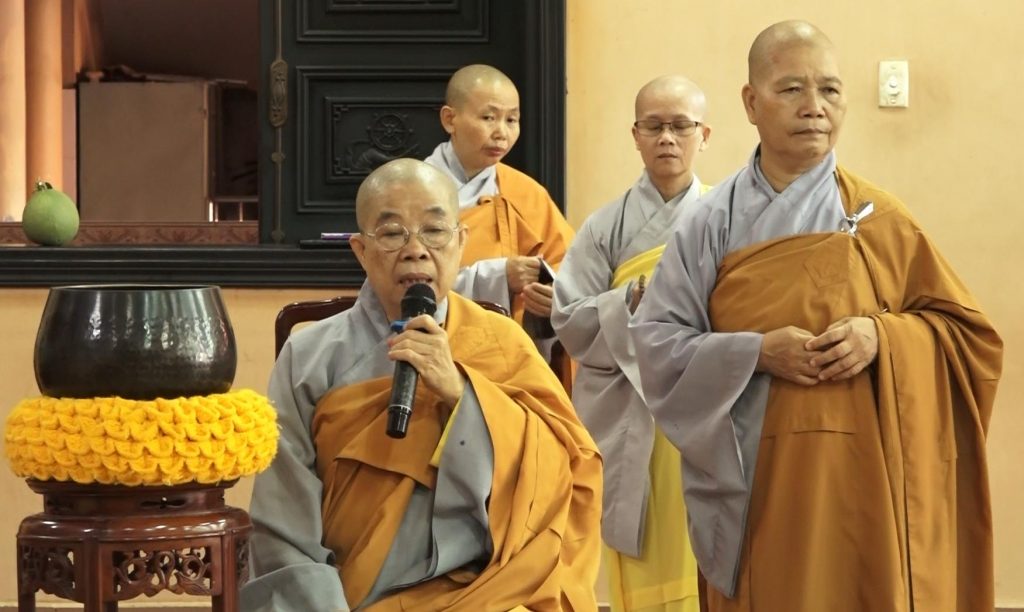 Đại đức trưởng đoàn cũng tri ân những lời sách tấn quý báu của Ni Trưởng đến hàng phật tử chùa Thanh Tâm.