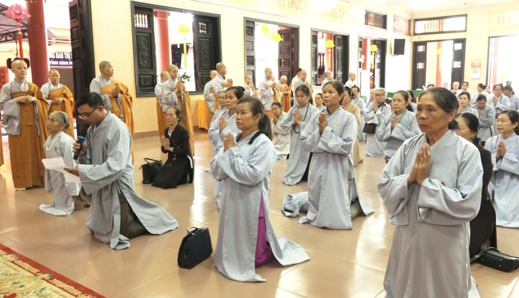 Tại đây, đại diện Phật tử chùa Thanh Tâm đã dâng lời tác bạch đến chư Ni hành giả an cư và vấn an sức khỏe, đảnh lễ niệm ân chư Tôn đức Ni, đồng thời các thành viên trong đoàn đảnh lễ Tam Bảo dâng cúng tịnh tài tịnh vật.