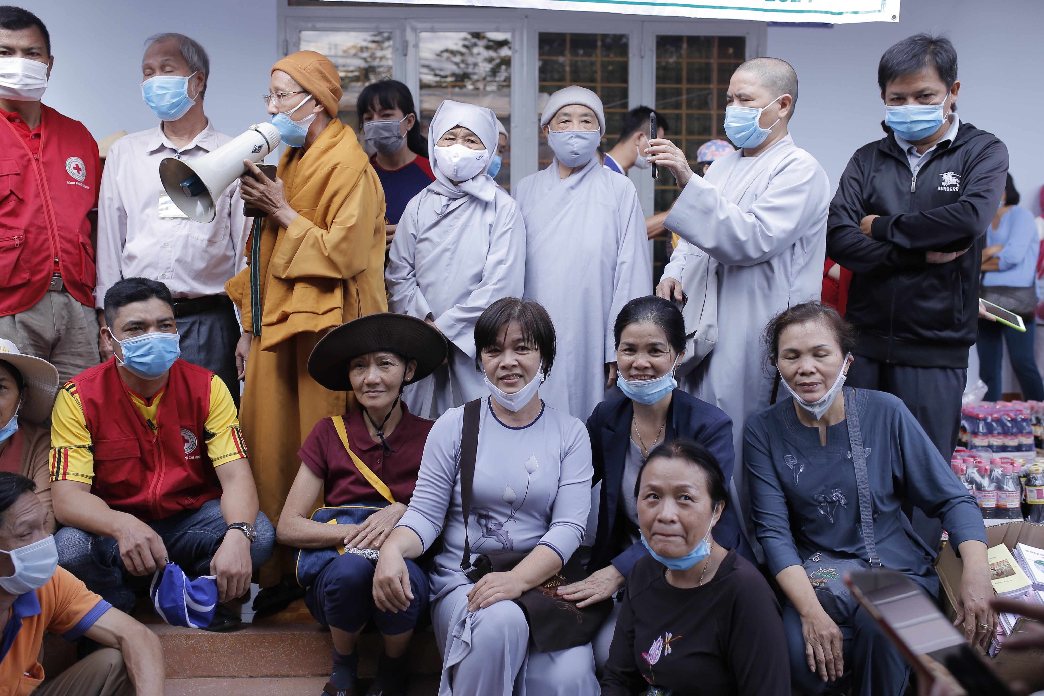 Trưởng đoàn có: Ni trưởng Thích nữ Giác Trung - Phó Phân ban Ni giới GHPGVN TP.HCM, trụ trì Ni viện Vạn Hạnh, cùng chư Tôn đức Ni và nam nữ Phật tử Tịnh xá Ngọc Thành, chùa Viên Dung, Ni viện Vạn Hạnh tháp tùng đoàn.