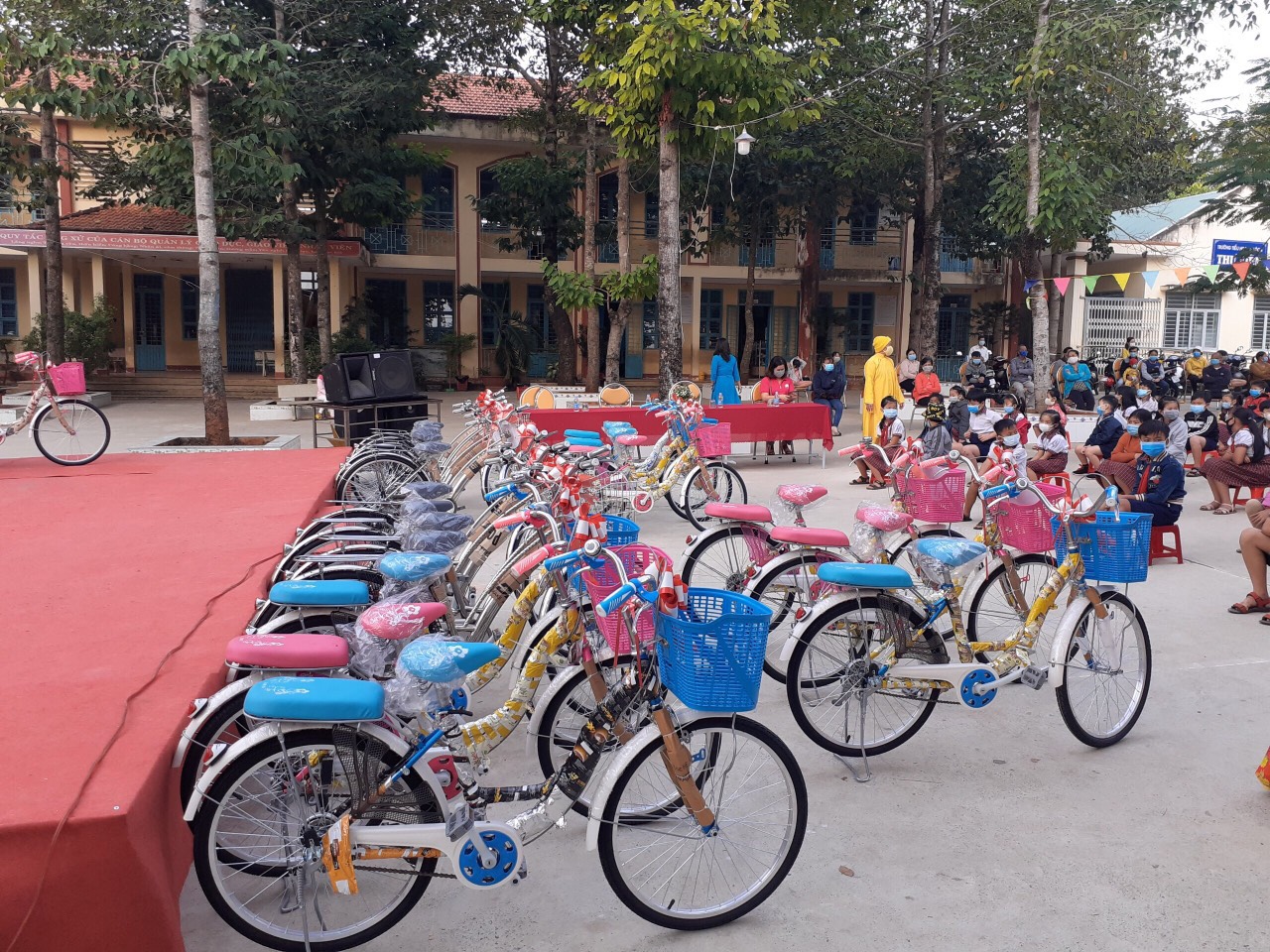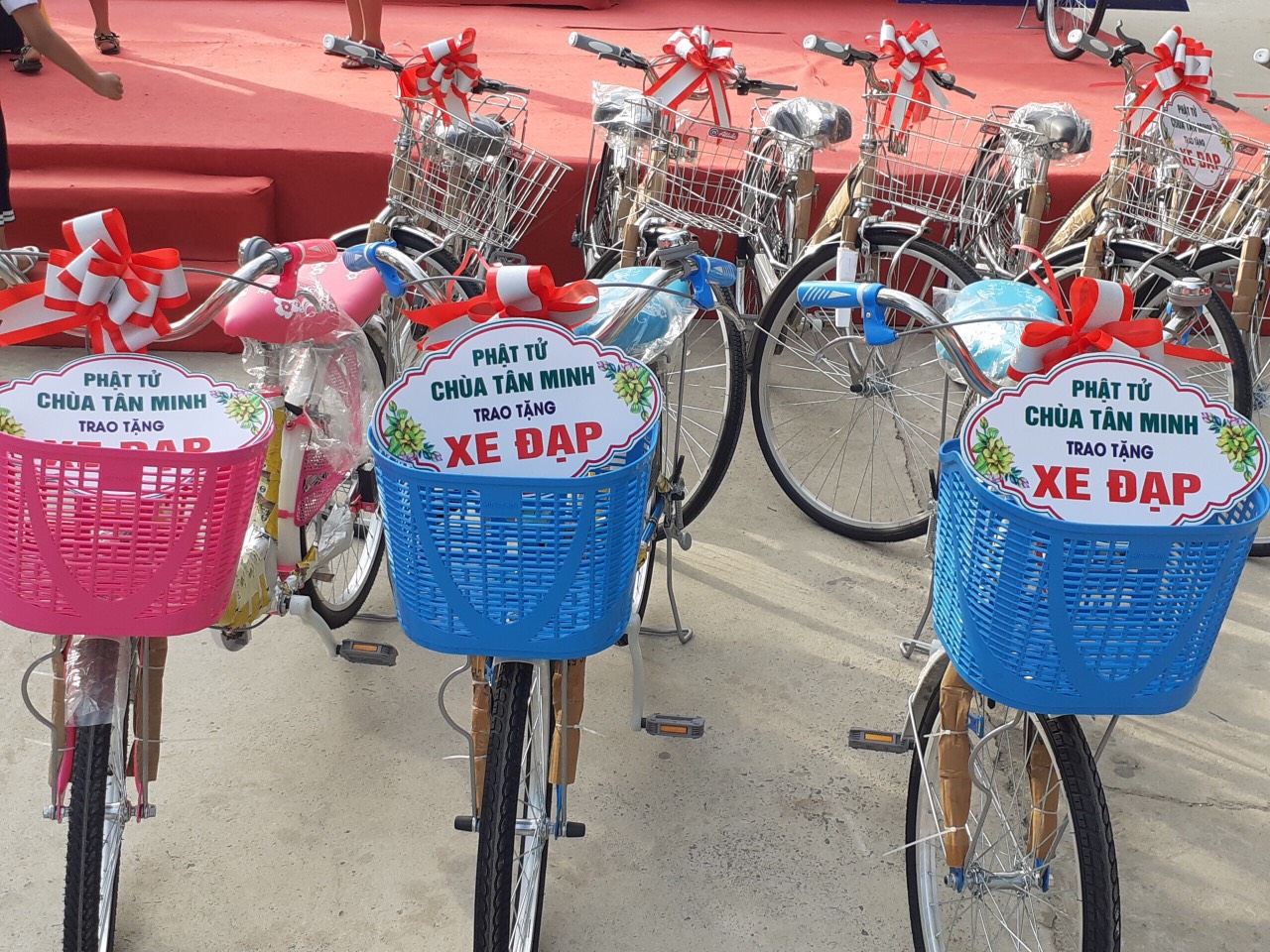 Trước đó, vào chiều 30/01/2021, chùa Tân Minh cùng các mạnh thường quân cũng đã trao 20 chiếc xe đạp cho các em học sinh nghèo hiếu học.